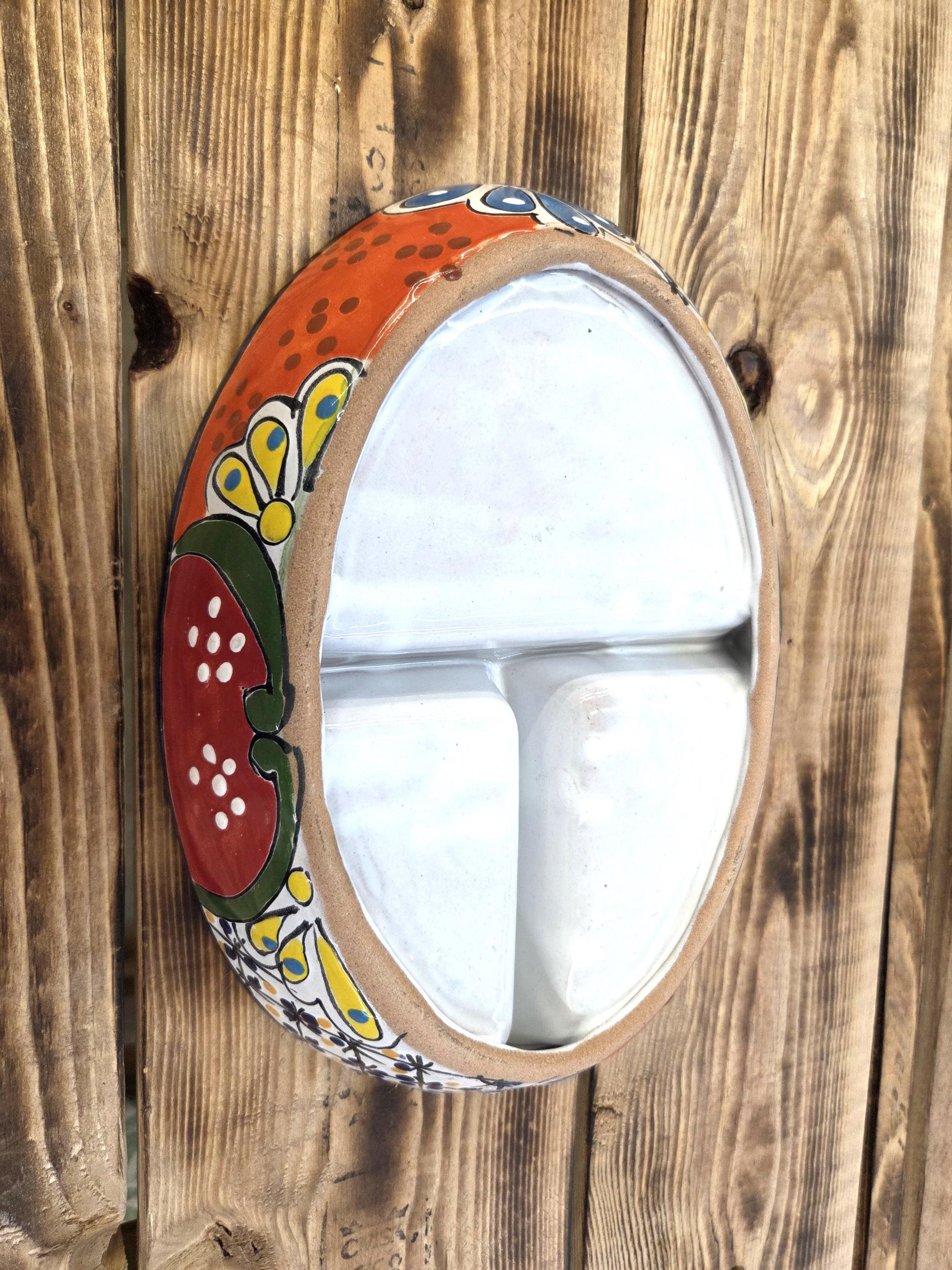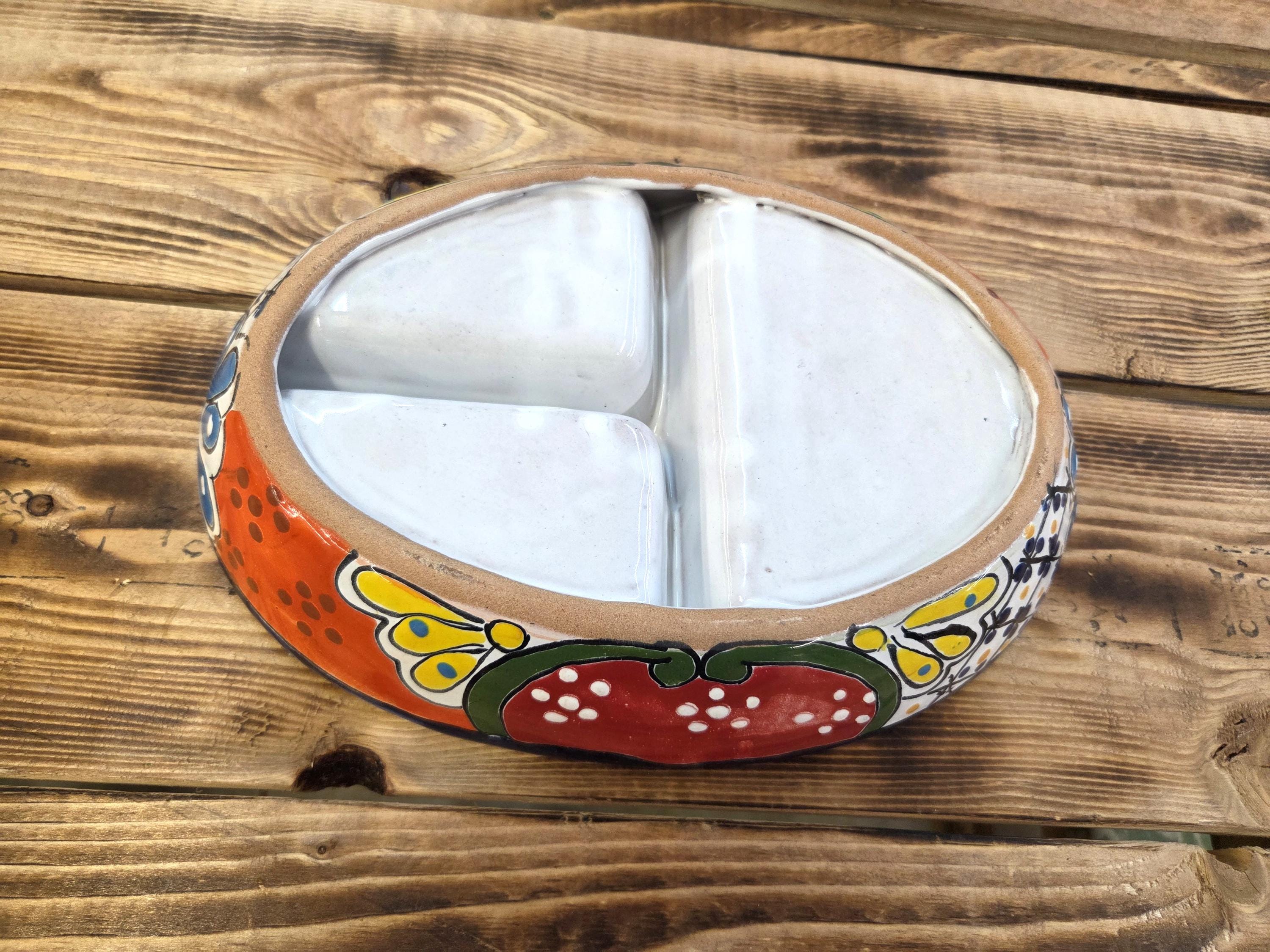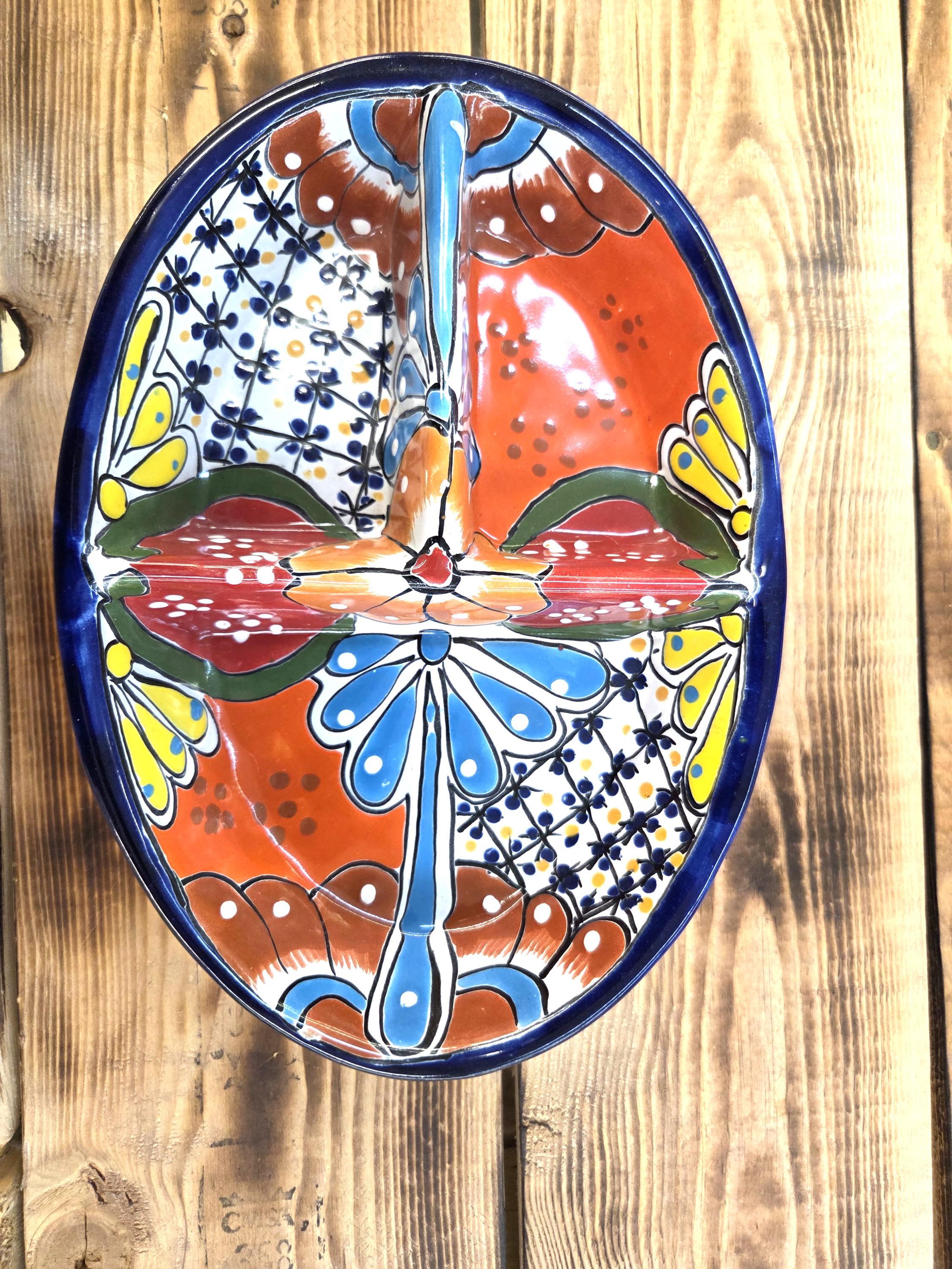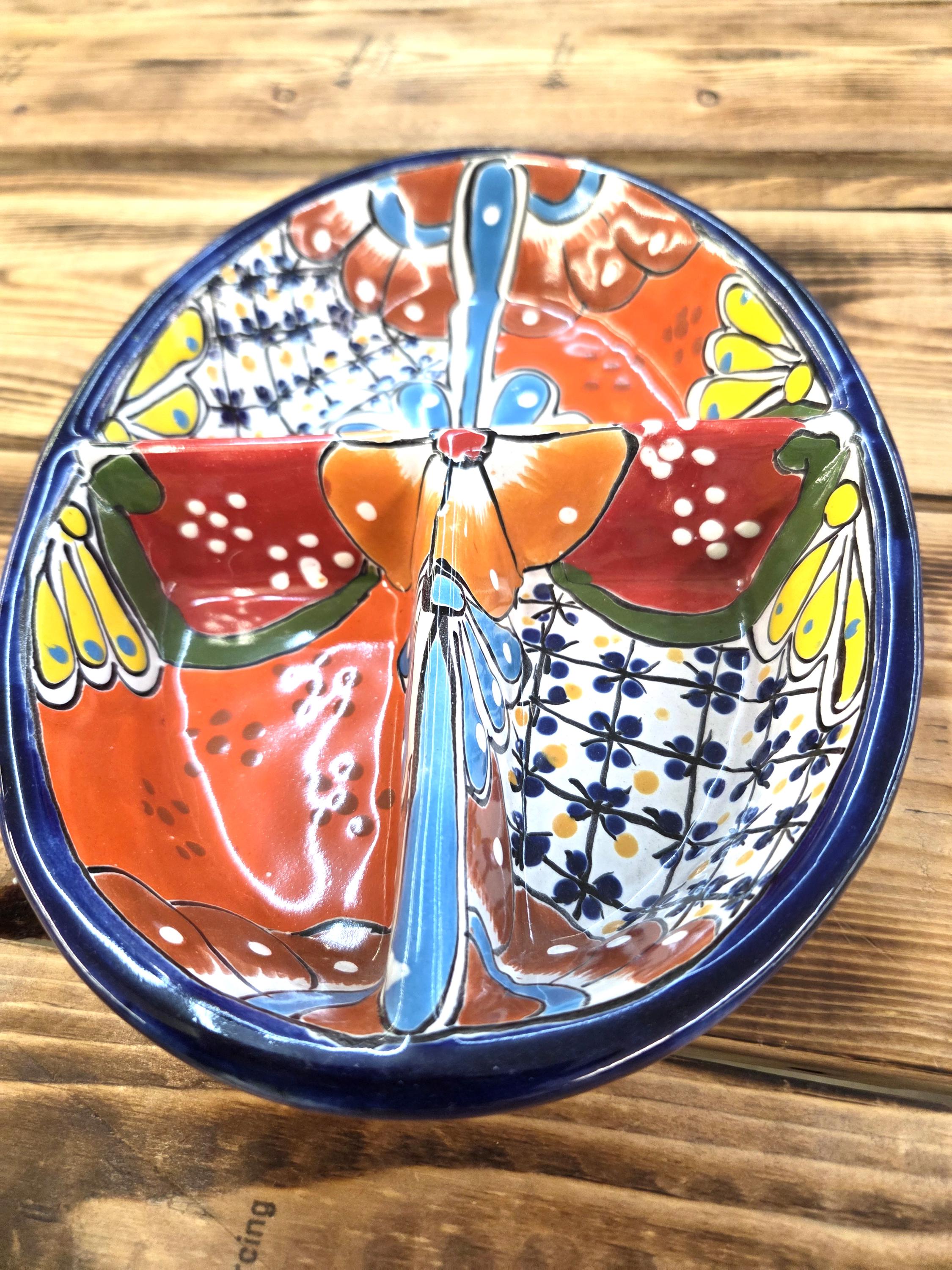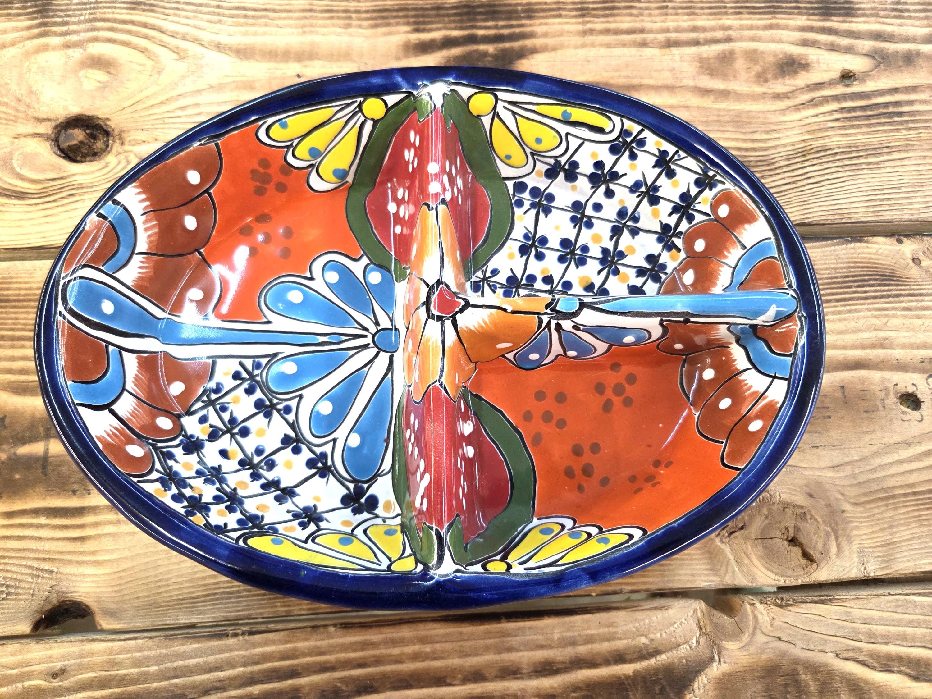 Bring vibrant Mexican artistry straight to your table with this Beautiful Talavera Ceramic 3‑Section Serving Tray. Each piece is hand‑painted by highly skilled Mexican artisans, showcasing the bold colors, intricate patterns, and joyful spirit that make authentic Talavera pottery so beloved.