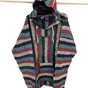 Beautiful Baja Classic Hoodie Pullover Surfer Drug Rug from Mexico! This poncho would look wonderful on guys and even much better on our lovely lady friends. You will be getting the poncho that is actually shown above in the pictures above, not some poncho that looks kinda looks like it or is kinda the same color. We will soon have many different styles & colors of ponchos to pick from in many different sizes. You may also want to check out our awesome zippered ponchos.