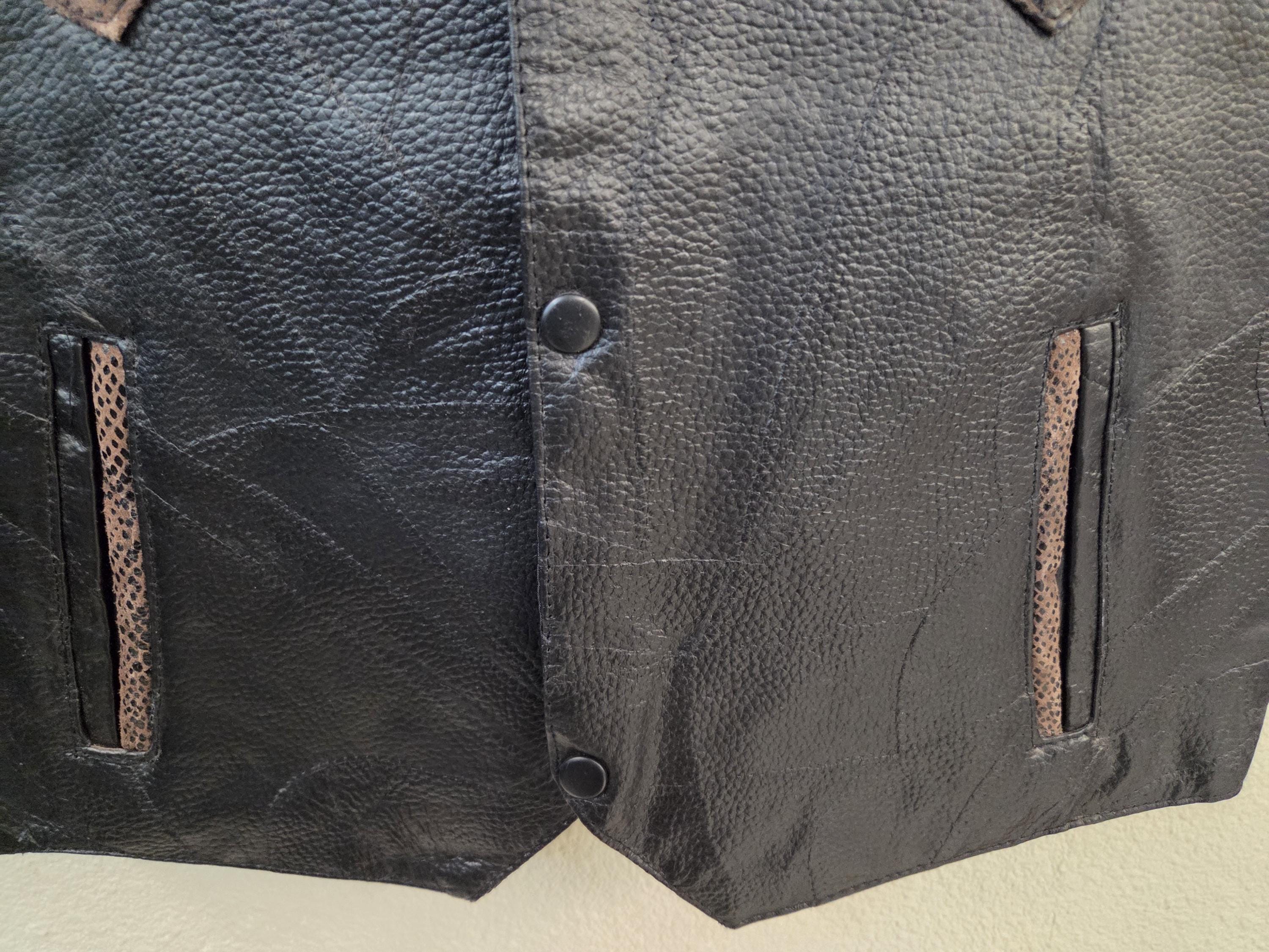Cowboy Western Style Medium Leather Vest. Last One In This Size. FREE SHIPPING. My pictures may not be the greatest, but my prices certainly are. And you can still add patches, conchos, vest extenders, or pins if you want even more bling. Have a look at our own Bikers, Hippies, Outlaws, & Lovers patched vests too. We also sell a lot of bikers accessories, patches, conchos and much more. WHY PAY MORE?