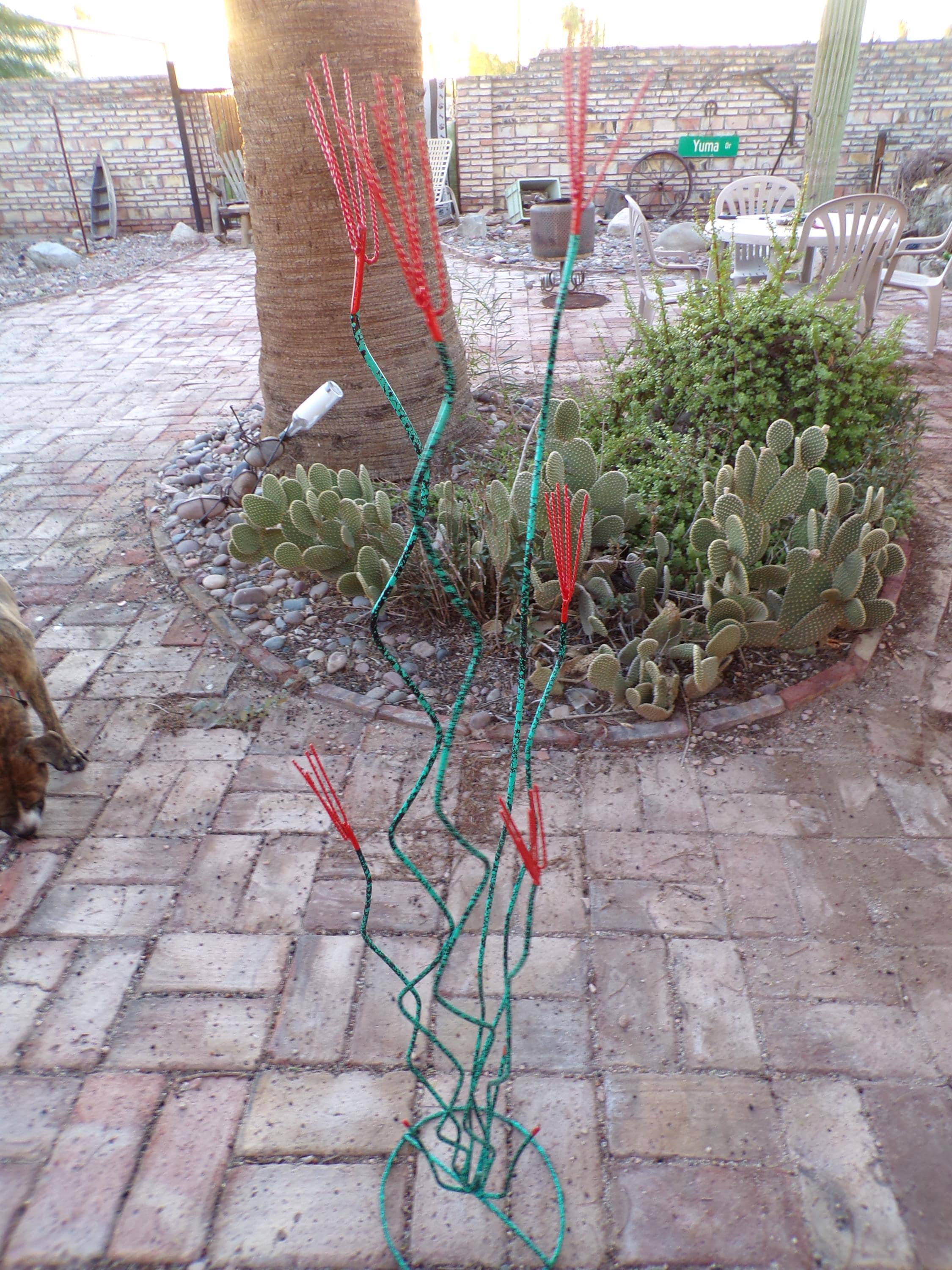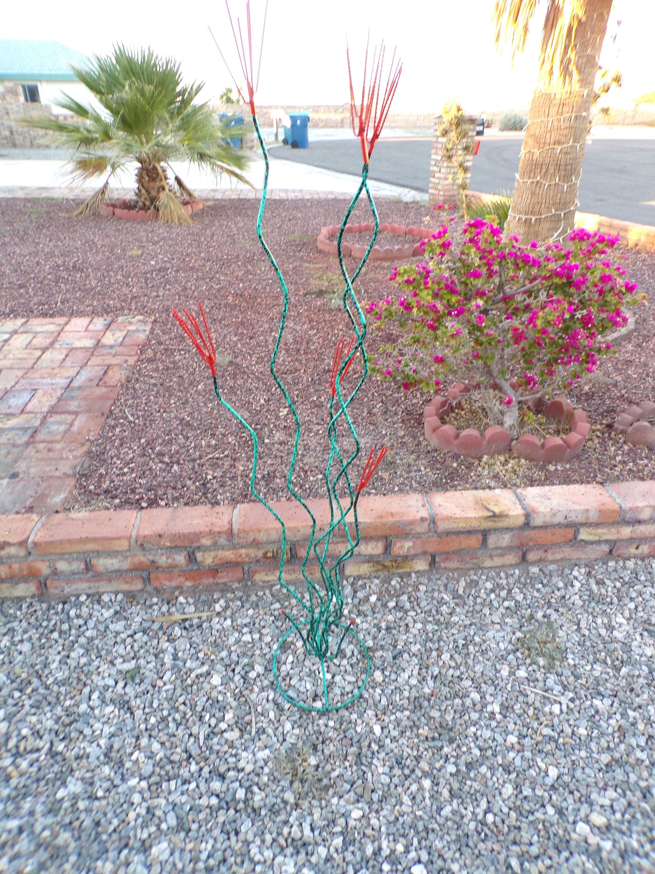 Handmade and hand-painted by a trusted artisan friend in Mexico, each metal ocotillo sculpture stands at least 53" tall and 9–11" wide. Slight variations make every piece one-of-a-kind. We offer four sizes at different price levels, and have sold hundreds online and in our Yuma, Arizona store. These striking ocotillos make unforgettable gifts—why settle for ordinary? Favorite our shop and check back often for new arrivals: Mexico Metal Art, Original Artwork, Leather Goods, Navajo Jewelry, and more. Many pieces are truly one of a kind. Photos may not be perfect—but our prices are. Why ever pay more?