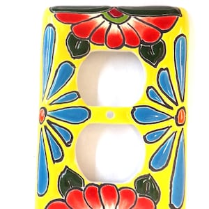 Handmade, Hand Painted Mexican Artisan Authentic Talavera Electric 2 Gang Electric Outlet Plate. These are authentic handmade talavera pottery ceramic covers rather than a stick on or plastic Chinese product. You will be getting the item actually shown in the pictures rather than an item kinda like this one. Each one is handmade and hand-painted, rather than machine made, so sometimes there can be minor flaws, but the overall look is always very beautiful and impressive. Be careful not to tighten your screws from your old plate so hard that you actually break your new cover plate. Slightly larger screws are available at any hardware store if need be. I am not the world's greatest photographer so I may not have the best pictures out there, but my prices certainly are the greatest so WHY PAY MORE?