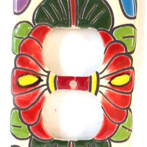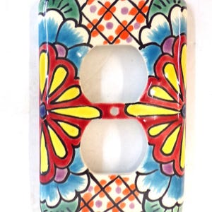 Handmade, Hand Painted Mexican Artisan Authentic Talavera Electric 2 Gang Electric Outlet Plate. These are authentic handmade talavera pottery ceramic covers rather than a stick on or plastic Chinese product. You will be getting the item actually shown in the pictures rather than an item kinda like this one. Each one is handmade and hand-painted, rather than machine made, so sometimes there can be minor flaws, but the overall look is always very beautiful and impressive. Be careful not to tighten your screws from your old plate so hard that you actually break your new cover plate. Slightly larger screws are available at any hardware store if need be. I am not the world's greatest photographer so I may not have the best pictures out there, but my prices certainly are the greatest so WHY PAY MORE?