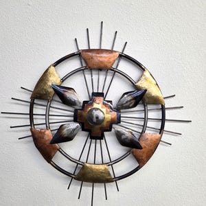 Smaller 11" Multicolored Fish Metal Wall Art, Handcrafted by Mexico Artisan Friends of Mine. Has Minor Flaw but overall looks very nice. Easy to hang with eyelet on the back for screw or nail. In our Yuma store these item sells quite fast. This artisan metal wall art would look so great on the wall in your patio, garden, yard, office, or business. We have lots of wall art items in our Etsy shop. This item measures roughly 11" wide by 3" tall irregular. Shop where so many home decorators' shop for unique items. This beautiful item would also make a wonderful and unusual gift for a friend or a loved one. You will actually be getting the item that is shown in the pictures rather than something kinda similar as you often see elsewhere. This would also make a great gift for a friend or a loved one. So, why ever just gift something ordinary? FAVORITE US now and then keep on checking back with us to see all the new items that we'll be adding. I am not the world's greatest photographer so I may not have the best pictures out there, but my prices certainly are the greatest so WHY EVER PAY MORE?