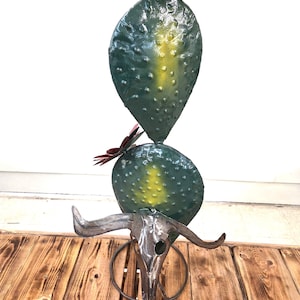 Large 27" Tall Blooming Rustic Saguaro Cactus with Cowboy Hat & Steer Skull Metal Yard Art, Handmade, Free Shipping. Handmade & crafted by a good artisan friend of mine. Roughly 27" tall by 20" wide irregular. Handmade items may sometimes have minor flaws, but the overall look is usually quite awesome. This would look so awesome in your yard, house, restaurant, bar, or business. And this would also make an awesome gift for a friend or a loved one. So, why ever gift something just ordinary? Favorite us now and then keep on checking back with us to see all the beautiful & many unusual new items that we will be adding on a regular basis. Many of our items are just one of a kind artistic pieces. I am not the world's greatest photographer so I may not have the best pictures, but my prices certainly are the greatest so Why Pay More?