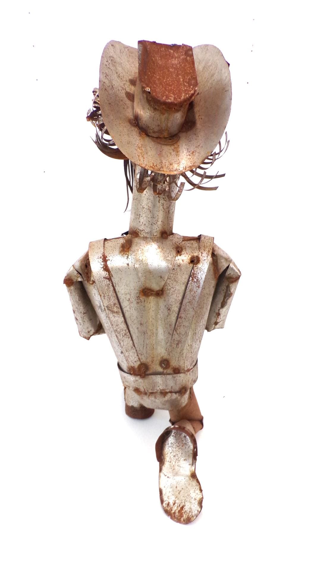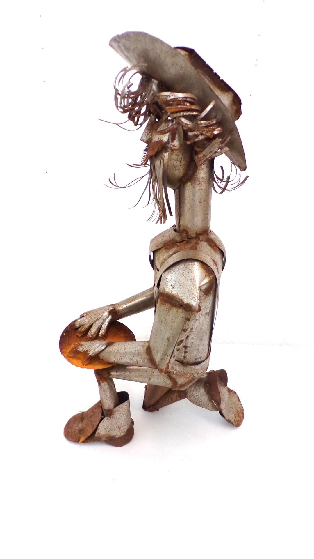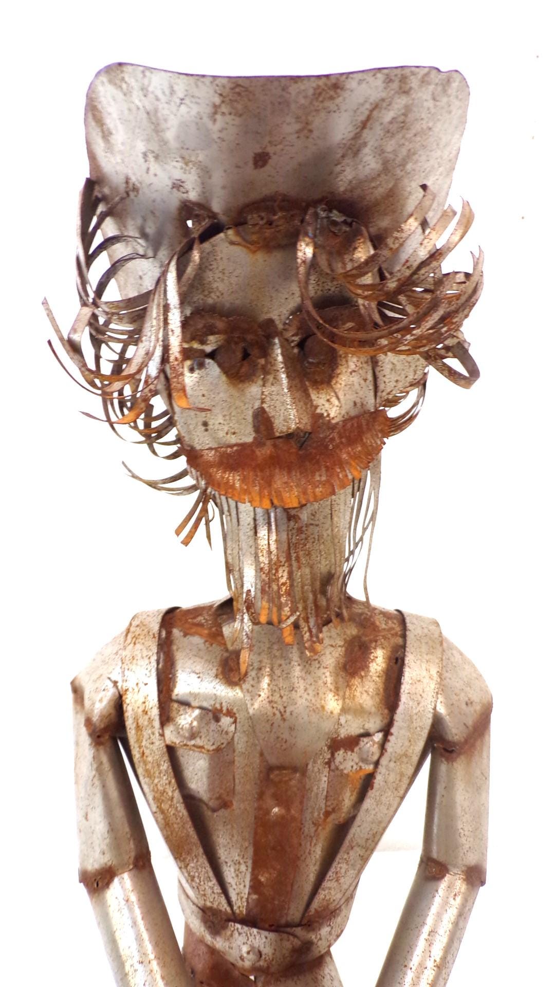 Handmade Rustic Large 32" Tall Desert Rat Miner Scrap Metal Slightly Rusted Yard Art Decor by Mexico Metal Artisan Friend. One of a kind. There may be a rustic miner's burro if still available in our shop too. Won't last long between our online sales and our Yuma store customers. Free Shipping. Quite a conversation piece and kids luv' him. A customer favorite here in our Yuma store. This would look so great in your bar area or patio. This item is roughly 32" tall by 16" wide irregular. You will be getting the item actually shown in the pictures. Each of these are items are handmade by artisans so there can at times be minor imperfections, but the overall look is quite beautiful. This item would make a great & unusual gift for a friend or a loved one too. Why just gift something ordinary? I am not the world's greatest photographer so I may not have the best pictures out there, but my prices certainly are the greatest so WHY EVER PAY MORE?