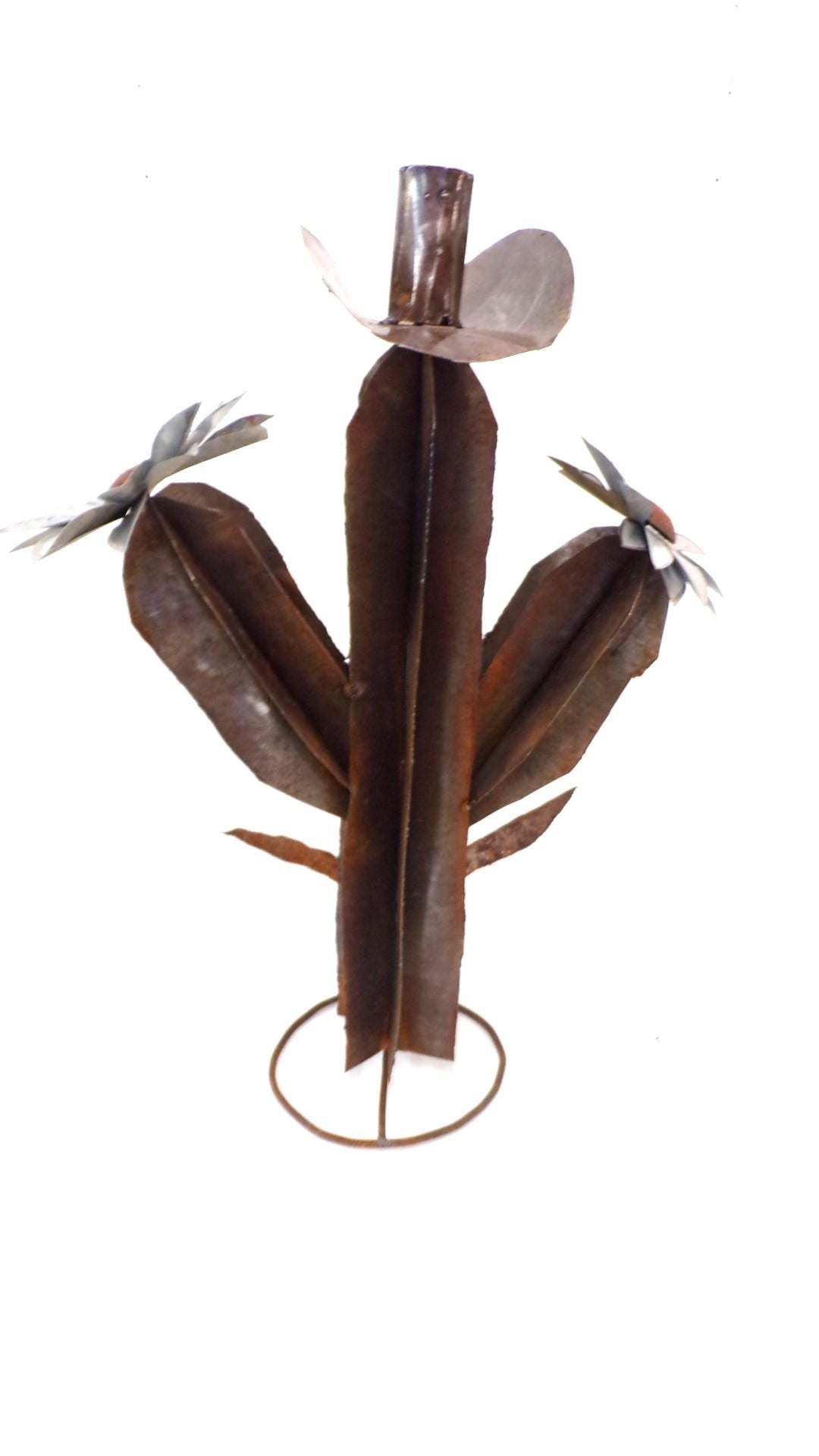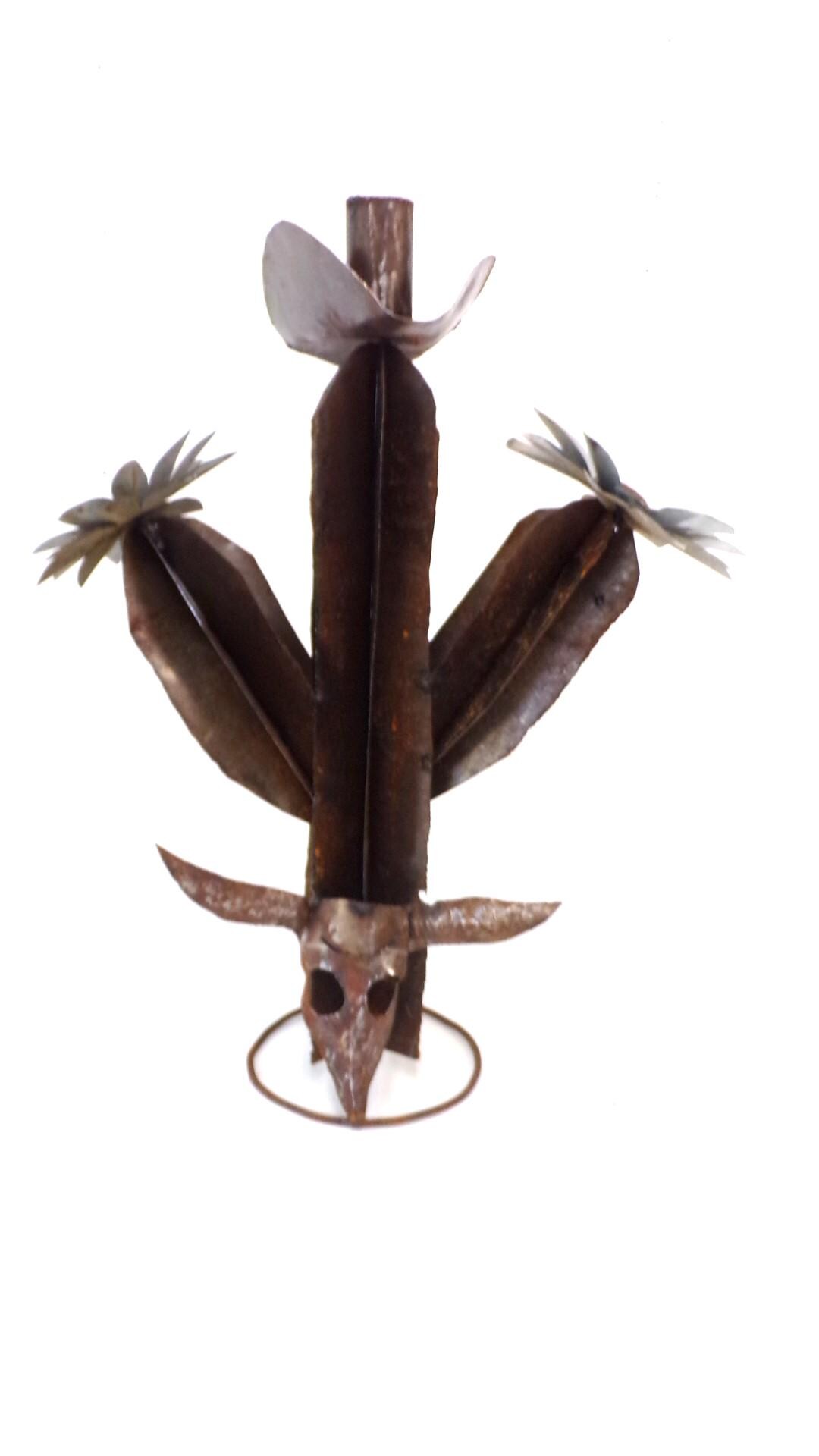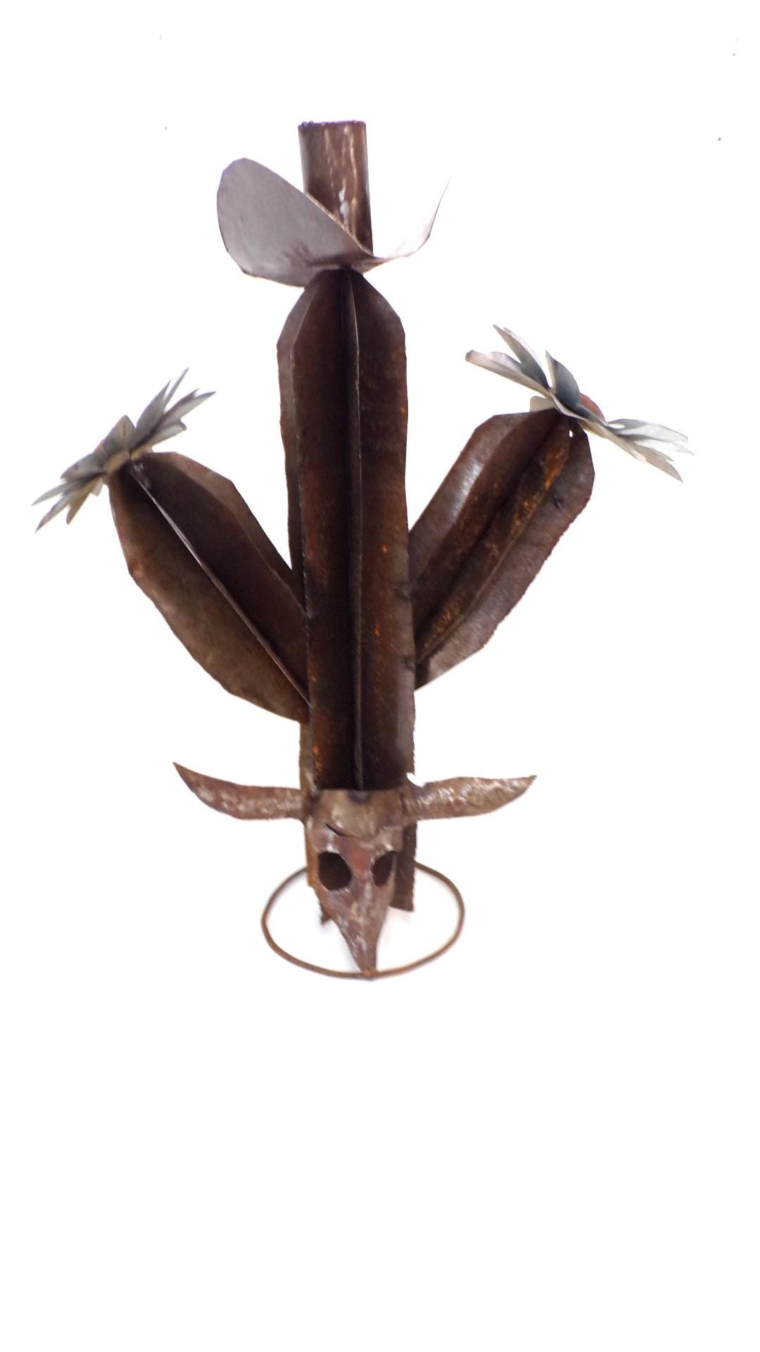 Large 27 1/2" Tall Blooming Rustic Saguaro Cactus with Cowboy Hat & Steer Skull Metal Yard Art, Handmade, Free Shipping. Handmade & crafted by a good artisan friend of mine. Roughly 27 1/2" tall by 21" wide irregular. Handmade items may sometimes have minor flaws, but the overall look is usually quite awesome. This would look so awesome in your yard, house, restaurant, bar, or business. And this would also make an awesome gift for a friend or a loved one. So, why ever gift something just ordinary? Favorite us now and then keep on checking back with us to see all the beautiful & many unusual new items that we will be adding on a regular basis. Many of our items are just one of a kind artistic pieces. I am not the world's greatest photographer so I may not have the best pictures, but my prices certainly are the greatest so Why Pay More?