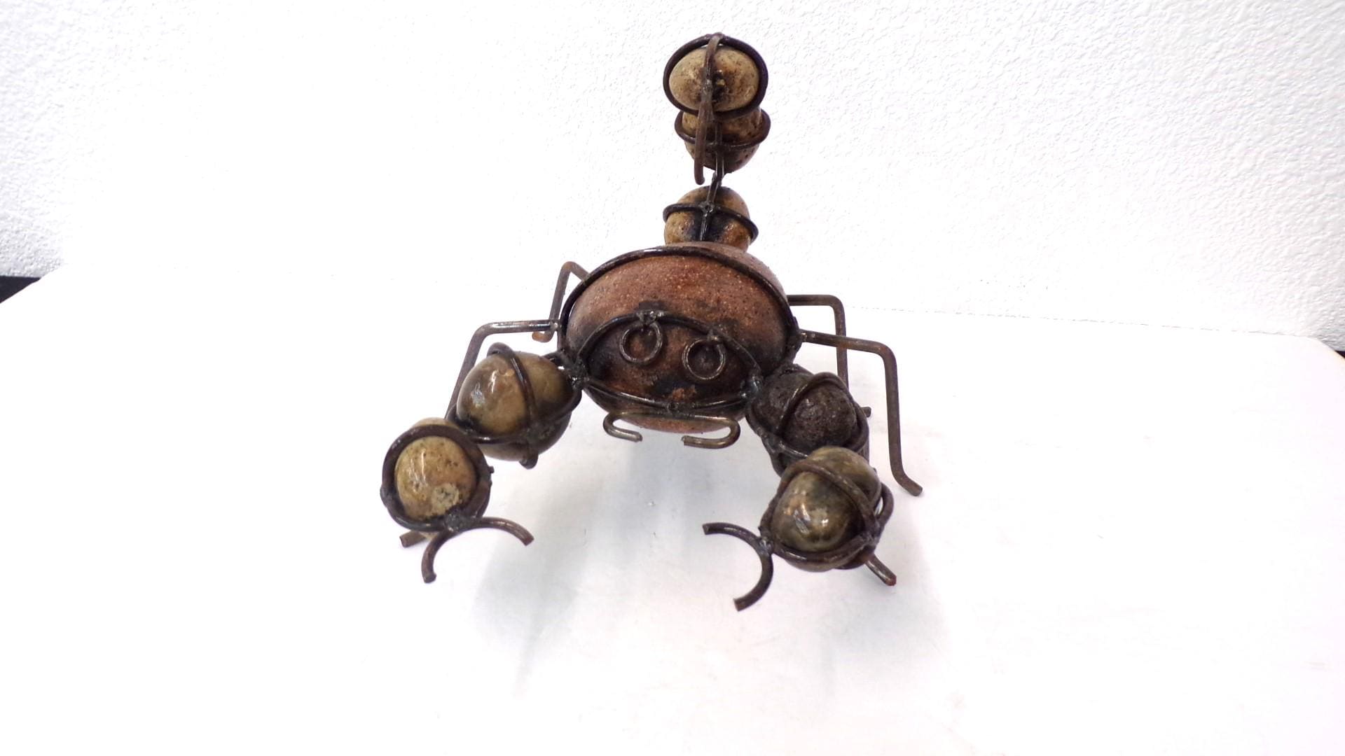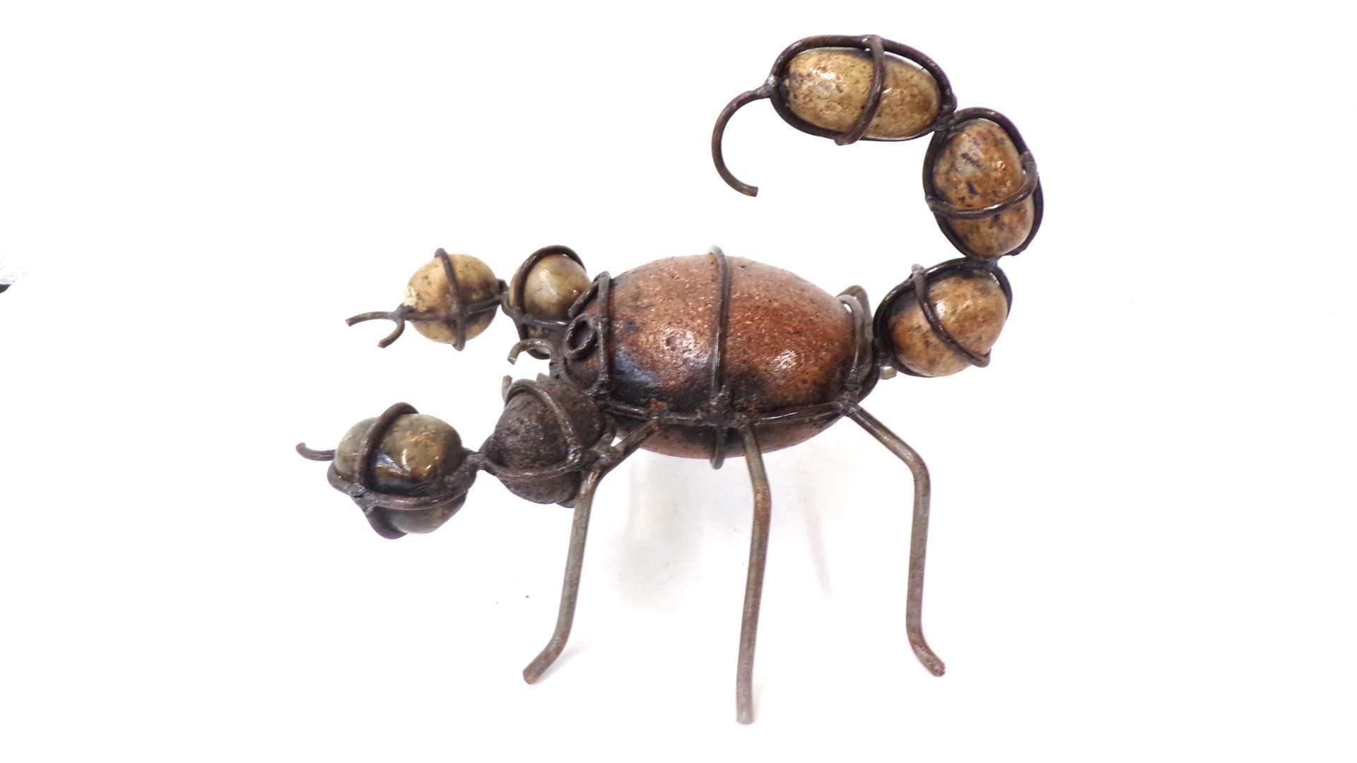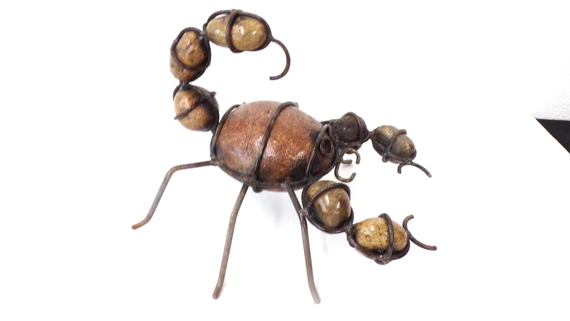 Rock & Metal 9" Long Scorpion Handmade by Mexican Metal Artisans. This very unique guy would look so great or on a shelf in your home, bar, or office. It would also make a great gift for a friend or a loved one. So, why just ever gift something ordinary? This item measures roughly 9" long by 8" wide irregular shaped. We will be adding many beautiful handmade artistic items here in my Etsy shop on a regular basis. FAVORITE US now and then keep on checking back with us to see all the new items that we'll be adding. I am not the world's greatest photographer so I may not have the best pictures out there, but my prices certainly are the greatest so WHY EVER PAY MORE?