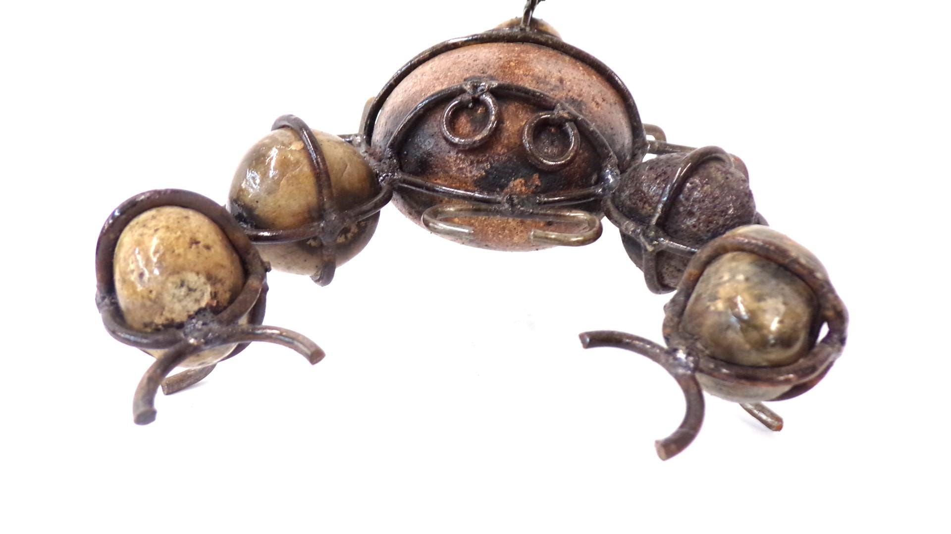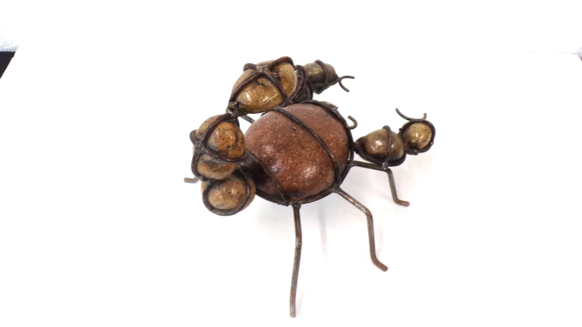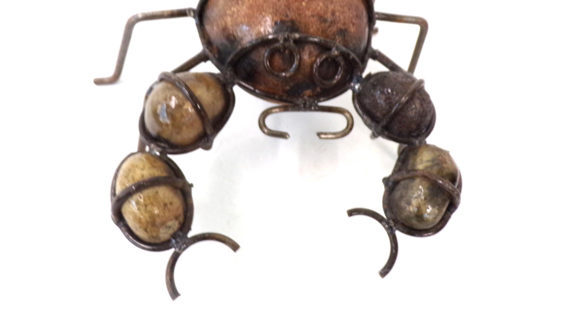Rock & Metal 9" Long Scorpion Handmade by Mexican Metal Artisans. This very unique guy would look so great or on a shelf in your home, bar, or office. It would also make a great gift for a friend or a loved one. So, why just ever gift something ordinary? This item measures roughly 9" long by 8" wide irregular shaped. We will be adding many beautiful handmade artistic items here in my Etsy shop on a regular basis. FAVORITE US now and then keep on checking back with us to see all the new items that we'll be adding. I am not the world's greatest photographer so I may not have the best pictures out there, but my prices certainly are the greatest so WHY EVER PAY MORE?