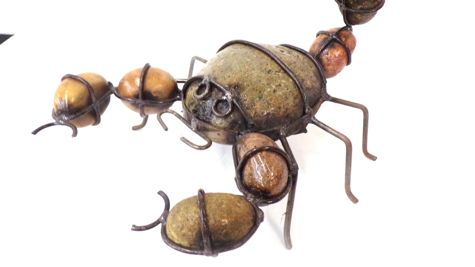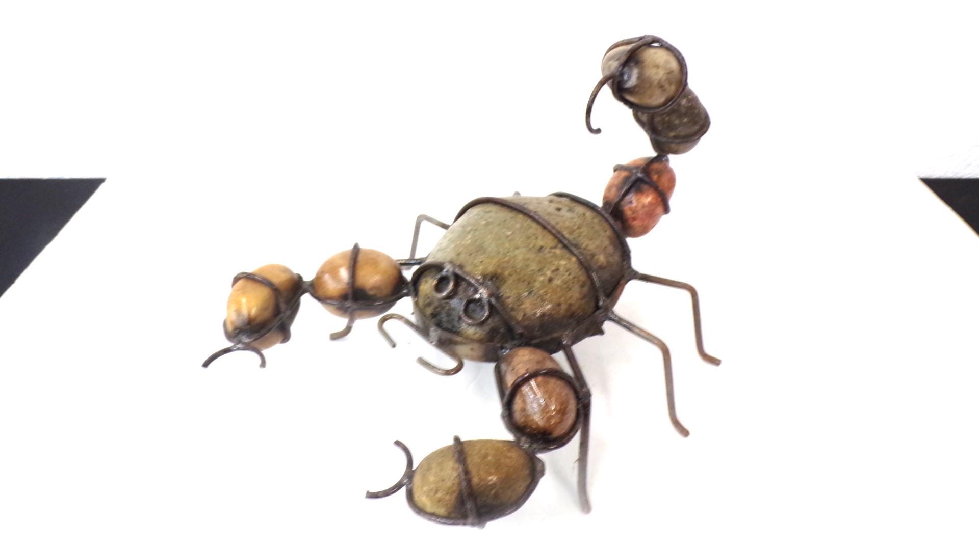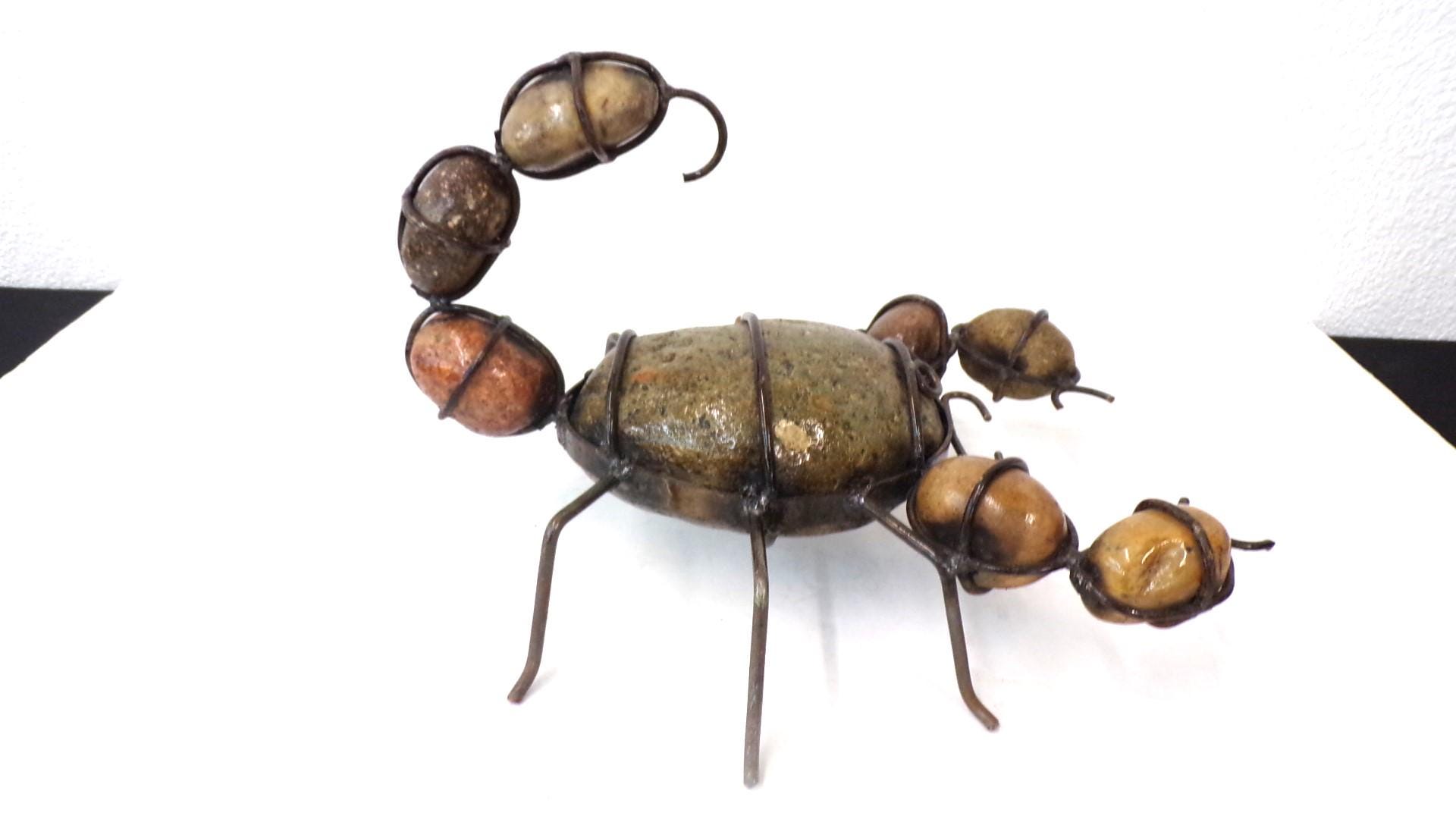 Rock & Metal 12" Long Scorpion Handmade by Mexican Metal Artisans. This very unique guy would look so great or on a shelf in your home, bar, or office. It would also make a great gift for a friend or a loved one. So, why just ever gift something ordinary? This item measures roughly 12" long by 9 1/4" wide irregular shaped. We will be adding many beautiful handmade artistic items here in my Etsy shop on a regular basis. FAVORITE US now and then keep on checking back with us to see all the new items that we'll be adding. I am not the world's greatest photographer so I may not have the best pictures out there, but my prices certainly are the greatest so WHY EVER PAY MORE?