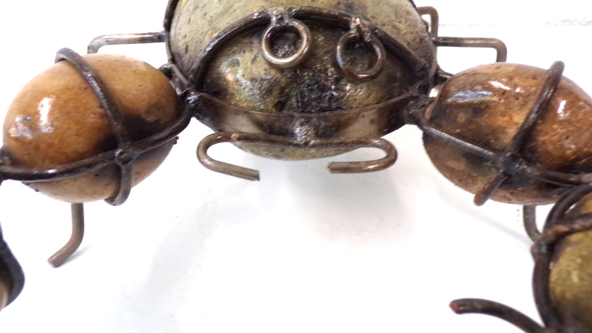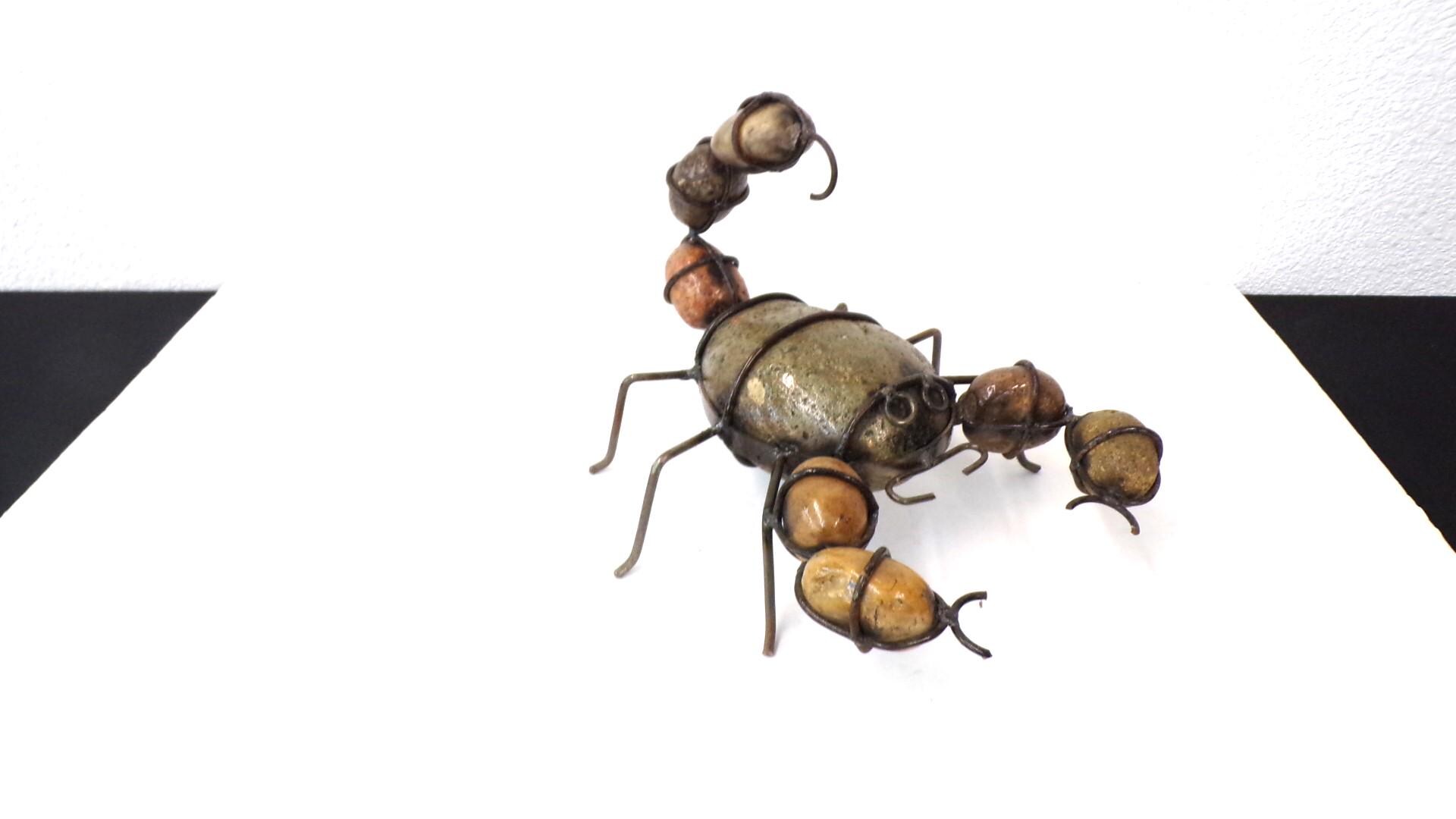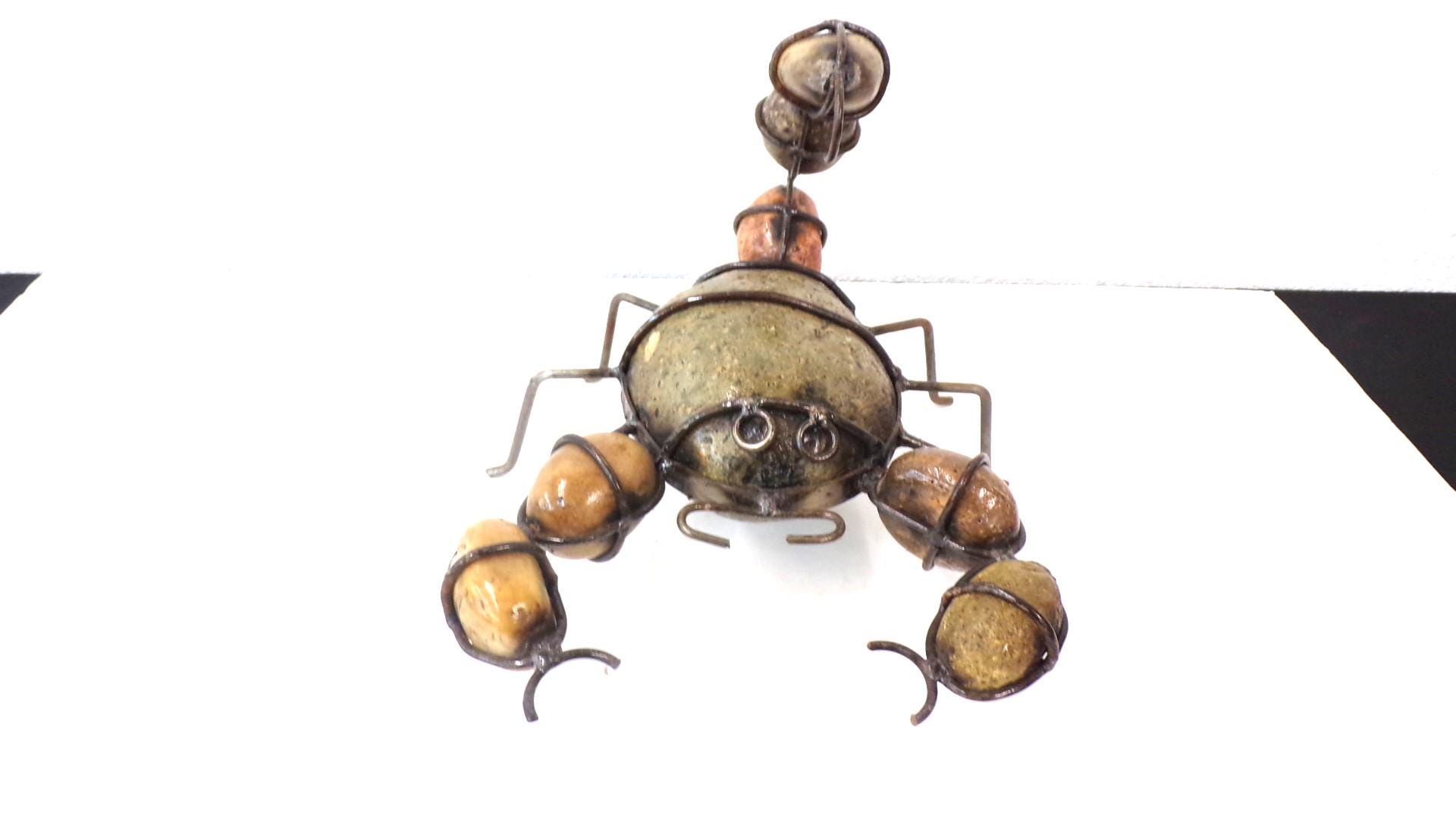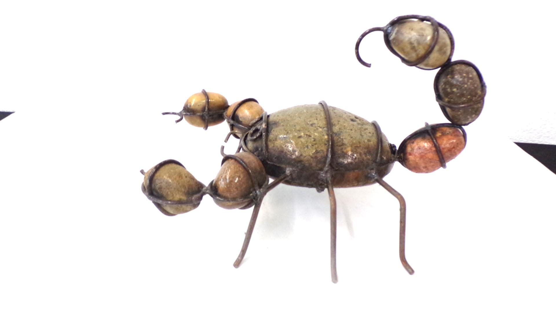 Rock & Metal 12" Long Scorpion Handmade by Mexican Metal Artisans. This very unique guy would look so great or on a shelf in your home, bar, or office. It would also make a great gift for a friend or a loved one. So, why just ever gift something ordinary? This item measures roughly 12" long by 9 1/4" wide irregular shaped. We will be adding many beautiful handmade artistic items here in my Etsy shop on a regular basis. FAVORITE US now and then keep on checking back with us to see all the new items that we'll be adding. I am not the world's greatest photographer so I may not have the best pictures out there, but my prices certainly are the greatest so WHY EVER PAY MORE?