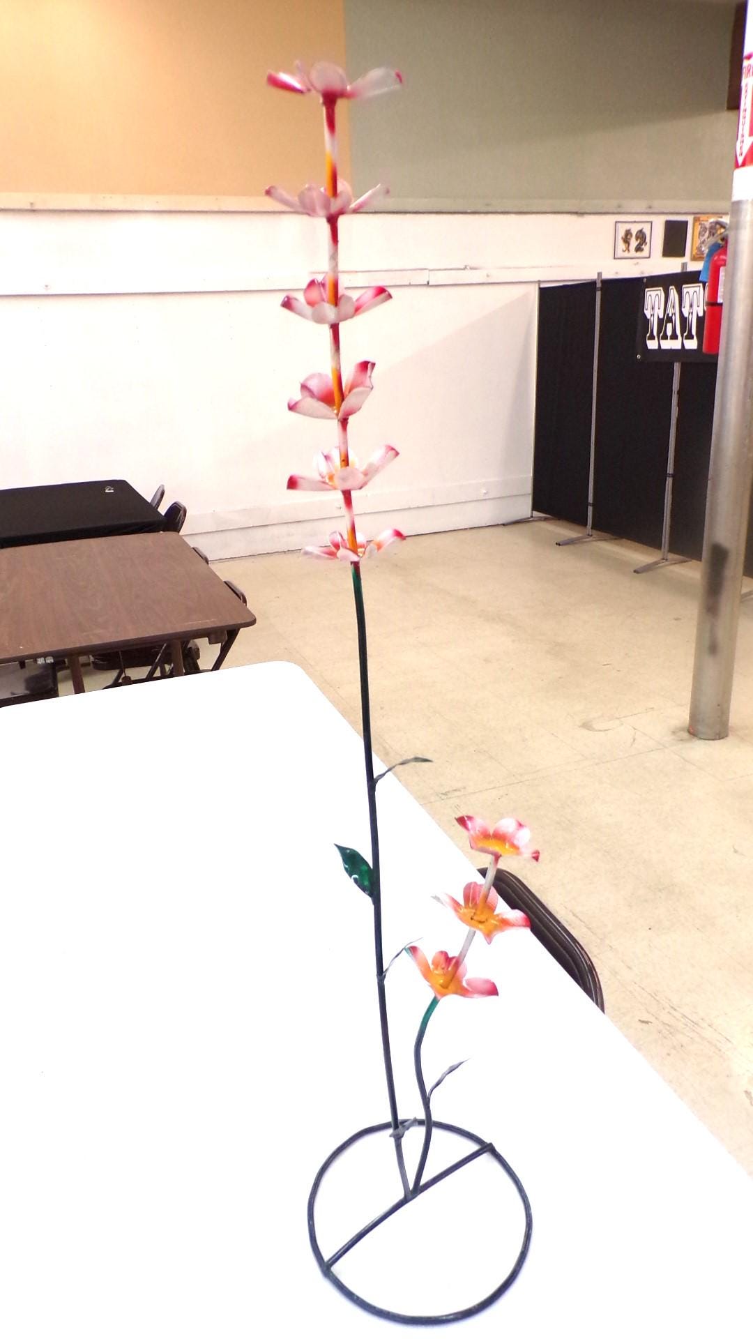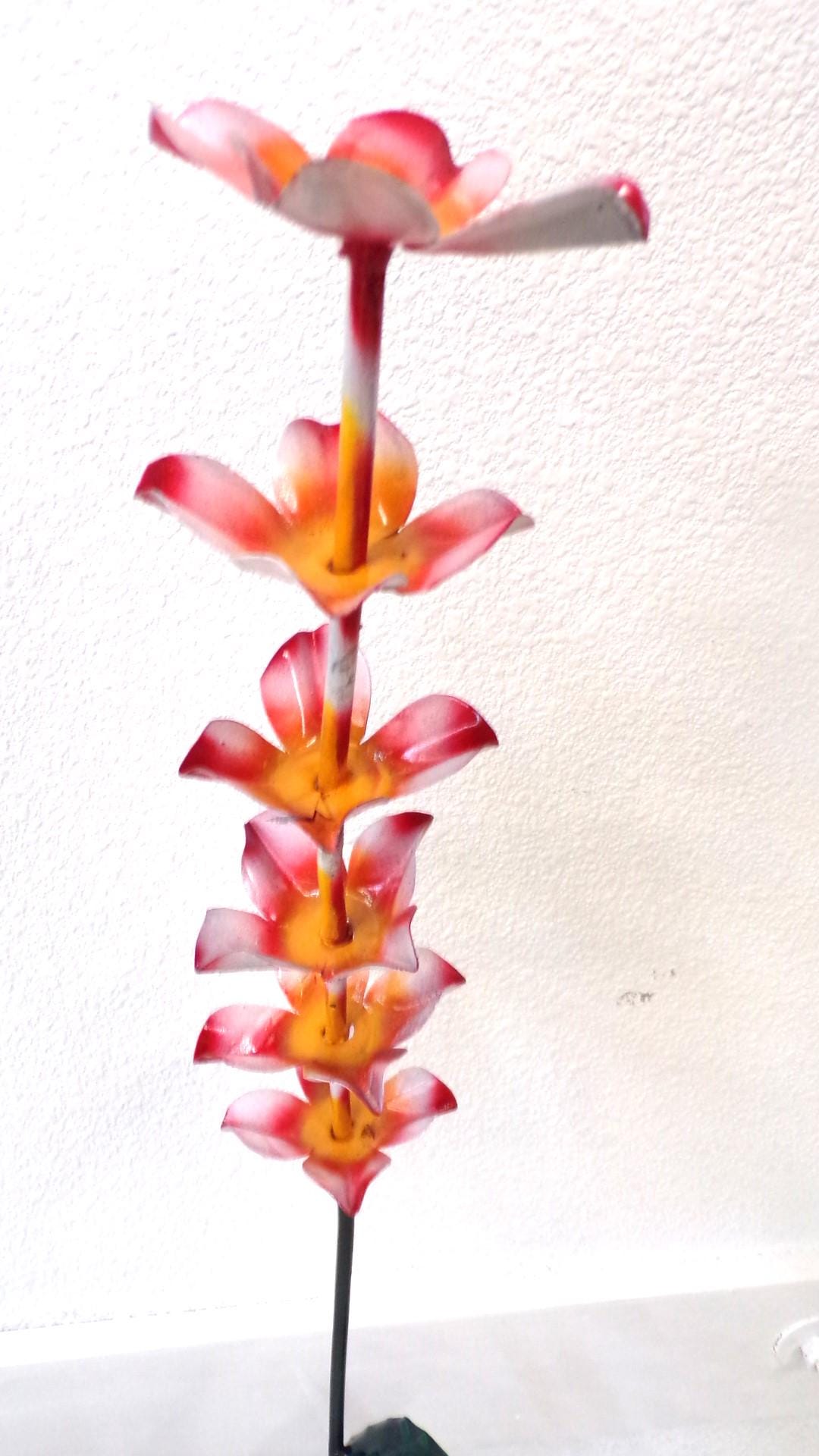 Awesome Large 37" Tall Metal Artisan Yard Art Flowers with Short & Long Stems. Handmade, Handcrafted. Won't Wilt. Doesn't Need Water. Handcrafted by a good artisan friend of mine. Roughly 37" tall by 9" wide irregular. Handmade items may sometimes have minor flaws, but the overall look is usually quite awesome. This would look so awesome in your yard, house, restaurant, bar, or business. Shop where so many home decorators do. And this would also make an awesome gift for a friend or a loved one. So, why gift something just ordinary? Favorite us now and then keep on checking back with us to see all the beautiful & many unusual new items that we will be adding on a regular basis. Many of our items are just one of a kind artistic pieces. I am not the world's greatest photographer so I may not have the best pictures, but my prices certainly are the greatest so Why Pay More?