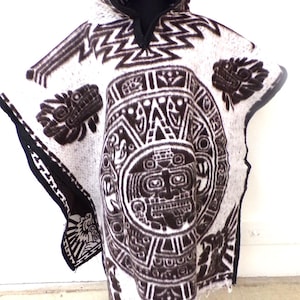New, Traditional Authentic Handmade Beautiful Aztec Indian Hooded Mexico Long Poncho as Pictured Here. Free Shipping.