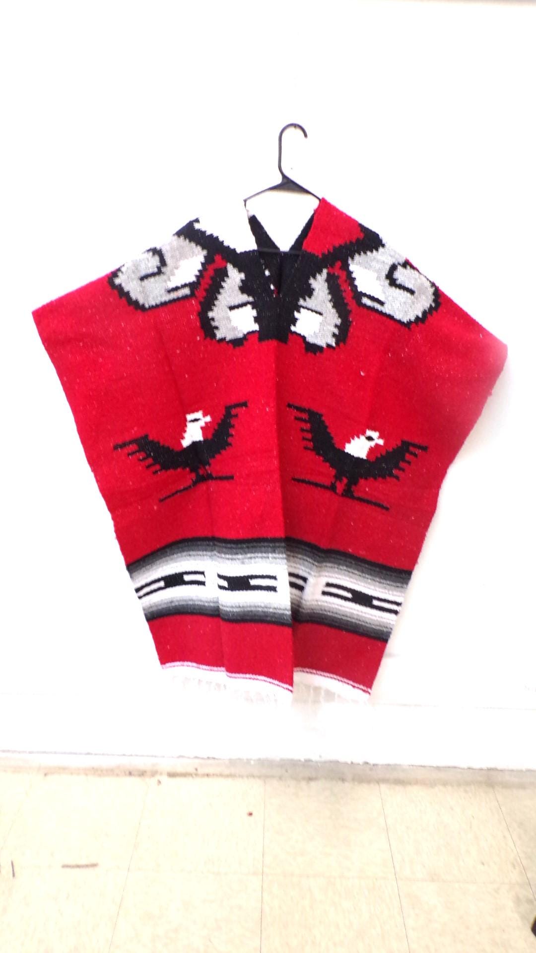 New, Traditional Authentic Handmade Beautiful Aztec Indian Hooded Mexico Long Poncho as Pictured Here. Free Shipping. This one is a one size fits most people. It would look great on the guys but even nicer on our lady friends. You will be getting the poncho that is actually shown above in the pictures above, not some poncho that looks kinda looks like it or is kinda the same color as you might sometimes see elsewhere. We have many different styles & colors of ponchos to pick from in many different sizes. You may also want to check out our awesome zippered ponchos. Anything hand done can have minor imperfections, but the overall look is always quite beautiful. This would also make a great gift for a friend or a loved one. So, why ever gift something just ordinary? Favorite us now and then keep on checking back with us to see all the new items that we'll be adding. I am not the world's greatest photographer so I may not have the best pictures out there, but my prices certainly are the greatest so WHY PAY MORE?
