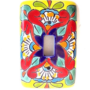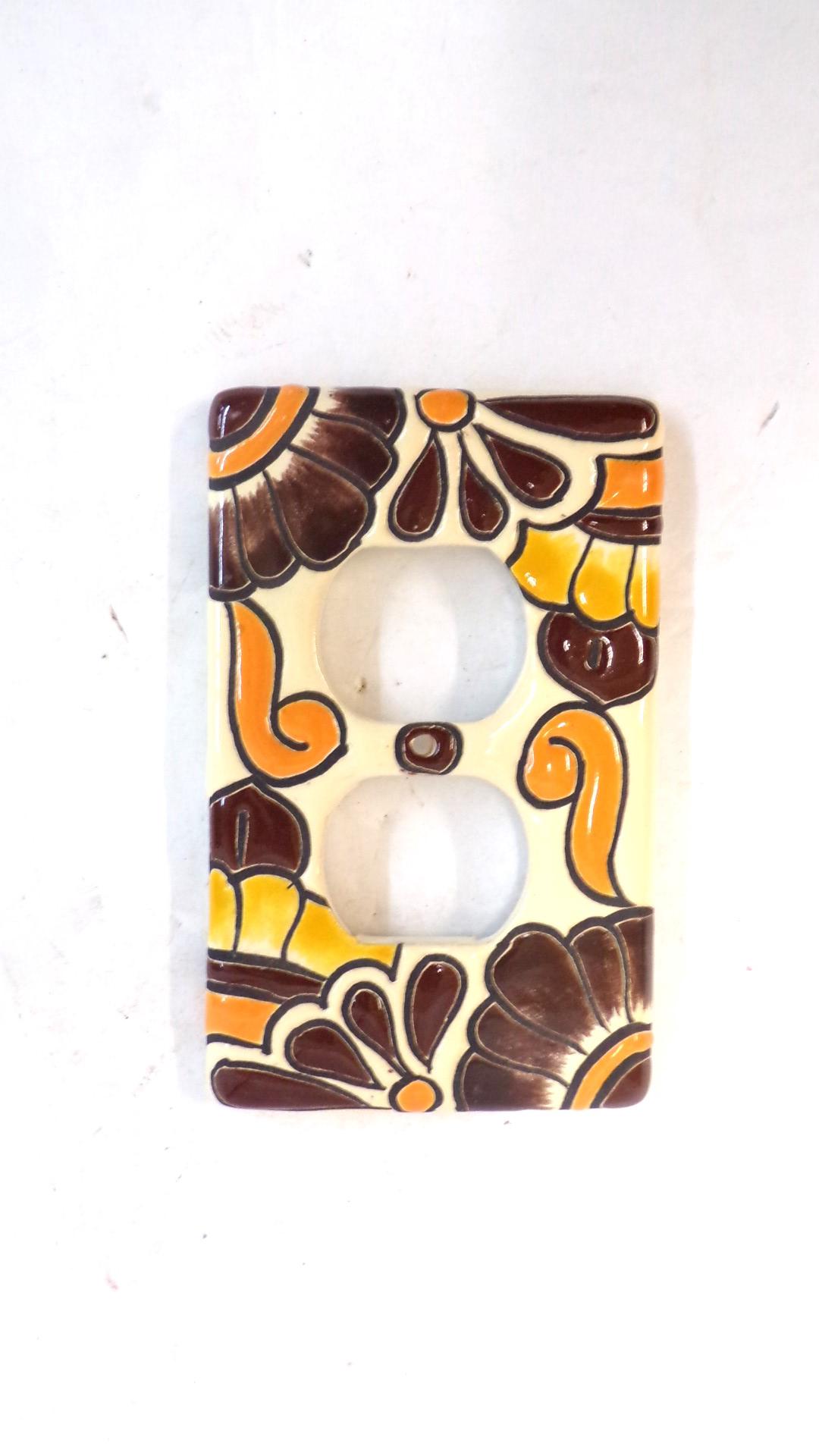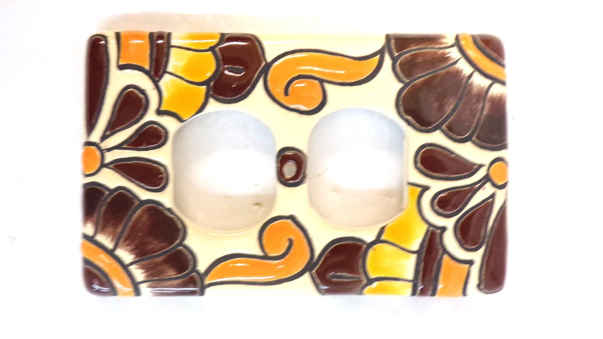 Handmade, Hand Painted Mexican Artisan Authentic Talavera Electric 2 Gang Electric Outlet Plate. These are authentic handmade talavera pottery ceramic covers rather than a stick on or plastic Chinese product. You will be getting the item actually shown in the pictures rather than an item kinda like this one. Each one is handmade and hand-painted, rather than machine made, so sometimes there can be minor flaws, but the overall look is always very beautiful and impressive. Be careful not to tighten your screws from your old plate so hard that you actually break your new cover plate. Slightly larger screws are available at any hardware store if need be. I am not the world's greatest photographer so I may not have the best pictures out there, but my prices certainly are the greatest so WHY PAY MORE?