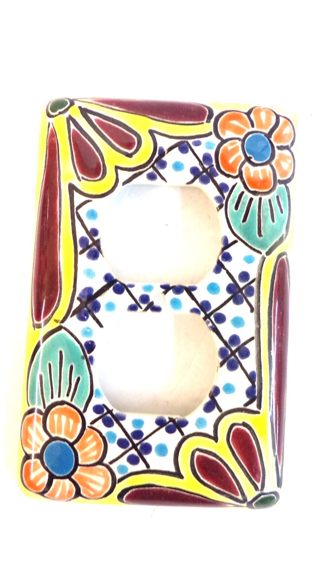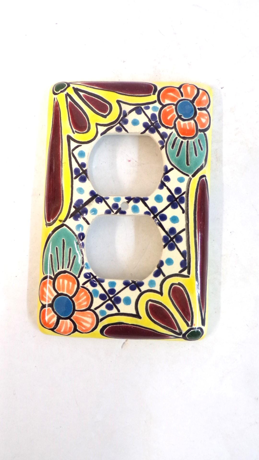 Handmade, Hand Painted Mexican Artisan Authentic Talavera Electric 2 Gang Electric Outlet Plate. These are authentic handmade talavera pottery ceramic covers rather than a stick on or plastic Chinese product. You will be getting the item actually shown in the pictures rather than an item kinda like this one. Each one is handmade and hand-painted, rather than machine made, so sometimes there can be minor flaws, but the overall look is always very beautiful and impressive. Be careful not to tighten your screws from your old plate so hard that you actually break your new cover plate. Slightly larger screws are available at any hardware store if need be. I am not the world's greatest photographer so I may not have the best pictures out there, but my prices certainly are the greatest so WHY PAY MORE?