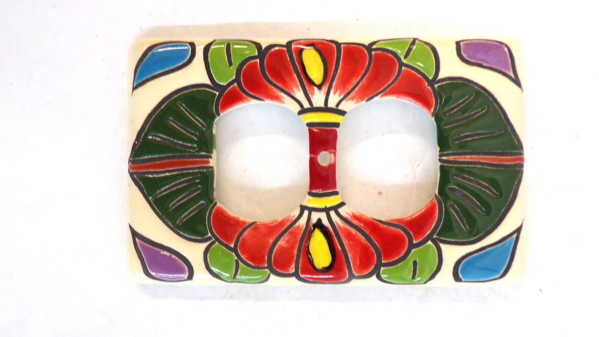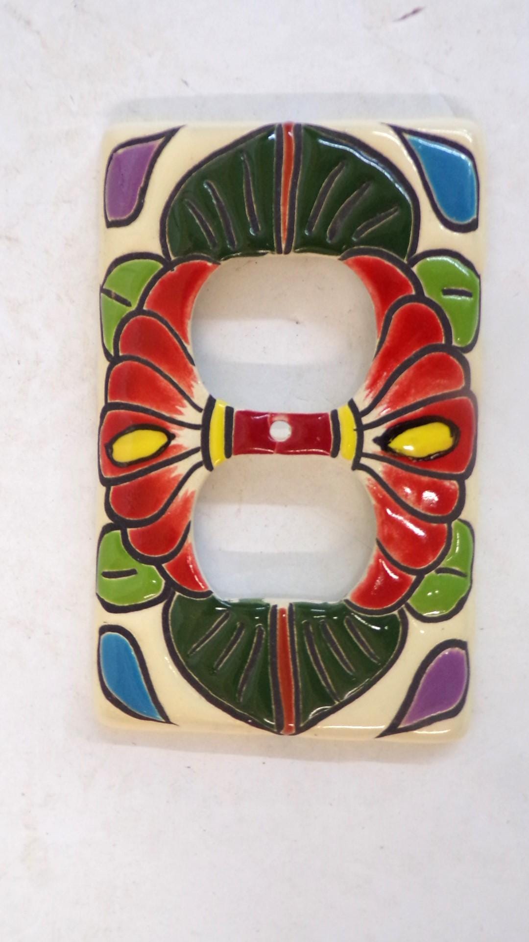 Handmade, Hand Painted Mexican Artisan Authentic Talavera Electric 2 Gang Electric Outlet Plate Cover