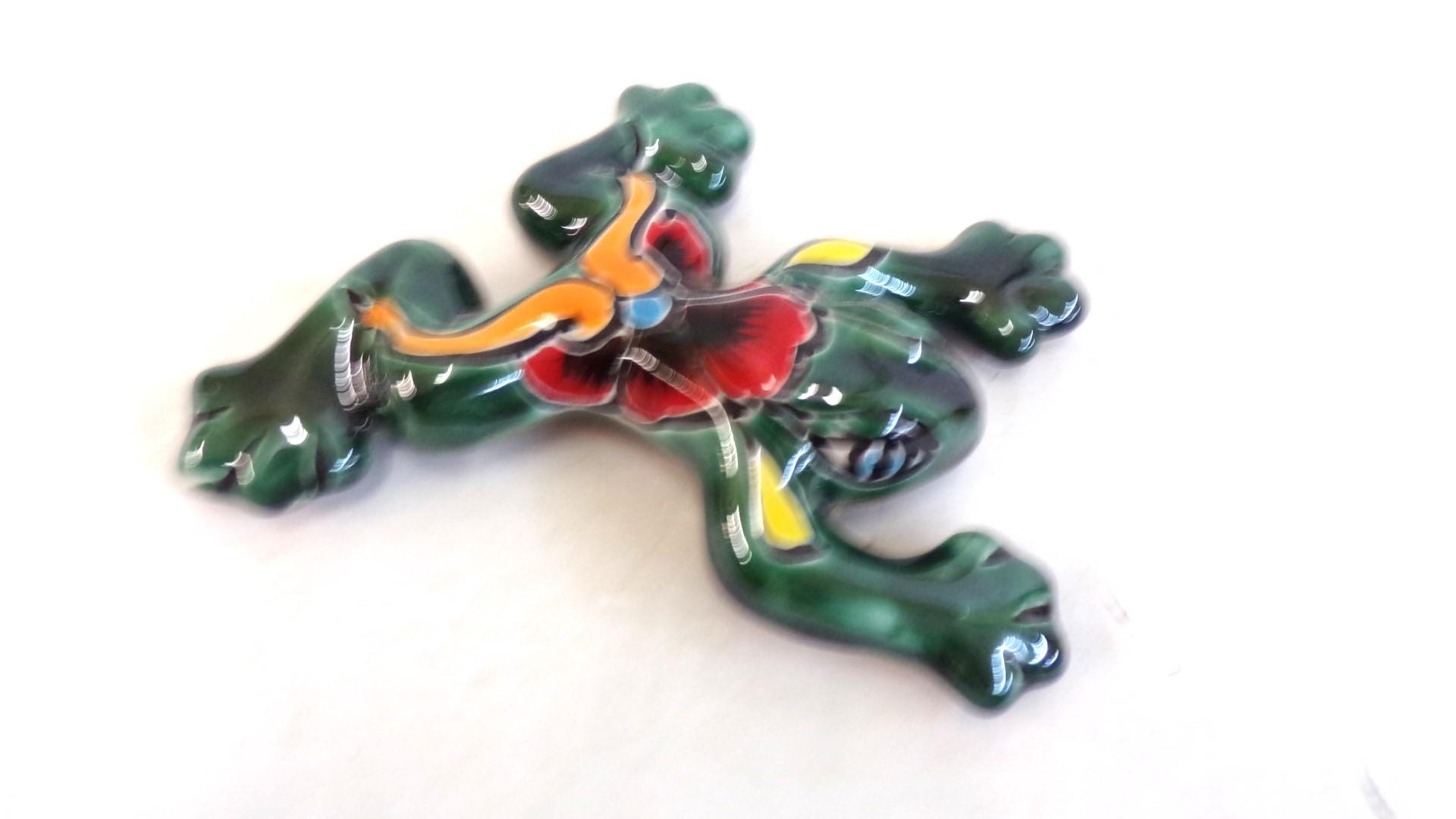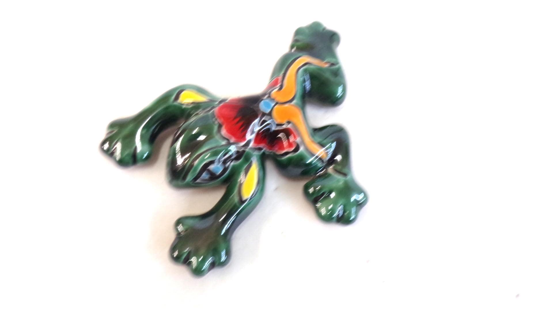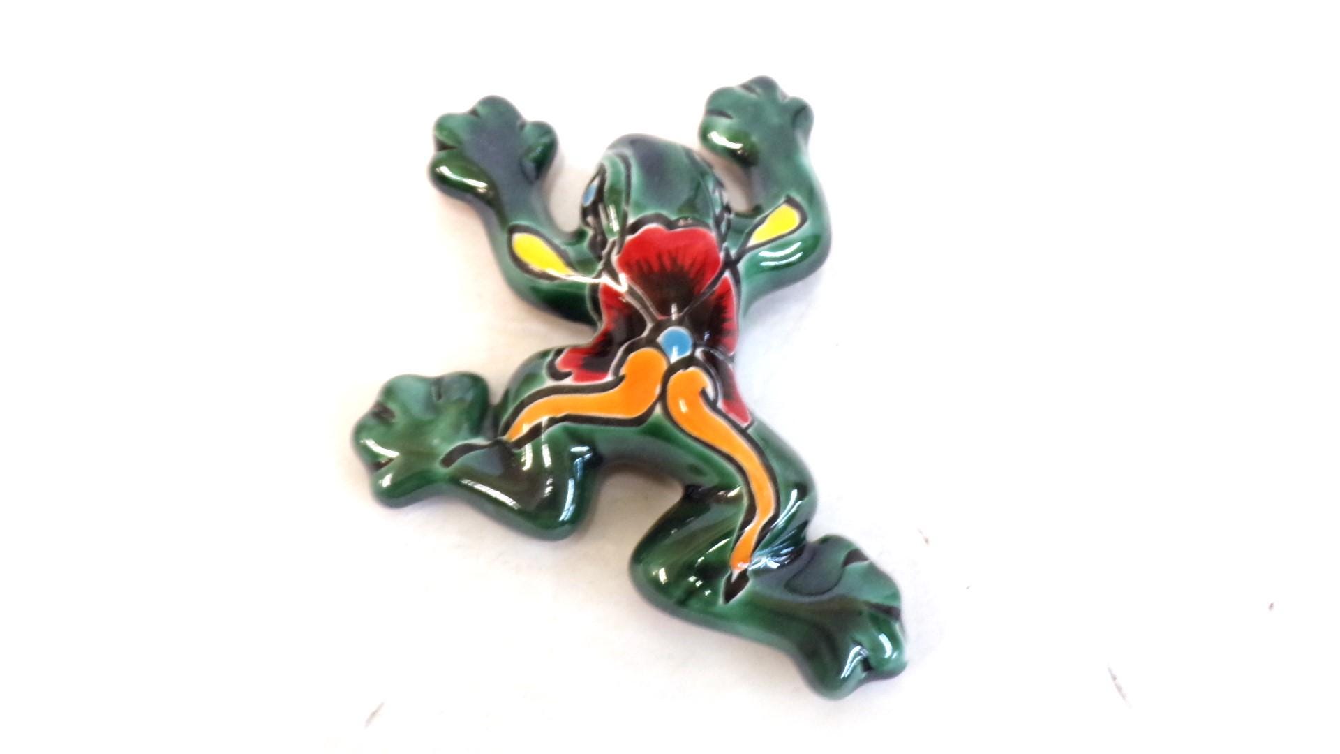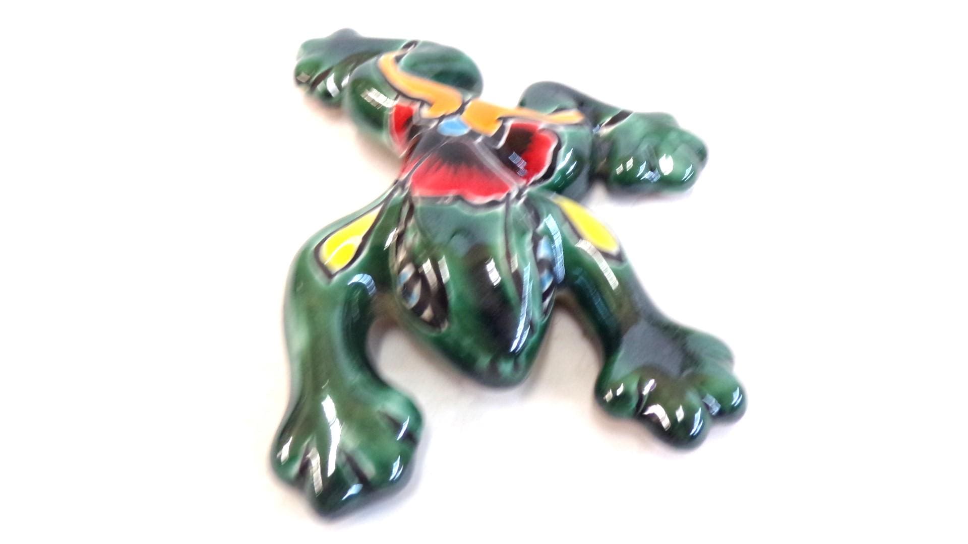Delightful Hand Painted 6" Frog, Handmade by a Mexico Artisan Family, Easy to Hang if Desired. Free Shipping You will be getting the frog that is actually shown in the pictures above. This item measures roughly 6" by 4 1/2" irregular. This would also make a great gift for a friend or a loved one. So, why ever just gift something ordinary? We will soon have many other and very unique hand painted wall art items to choose from. Shop where so many home and business decorators' shop, right here in our shop. Favorite us now and then keep on checking back with us to see all the new items that we'll be adding. I am not the world's greatest photographer so I may not have the best pictures out there, but my prices certainly are the greatest so WHY EVER PAY MORE?