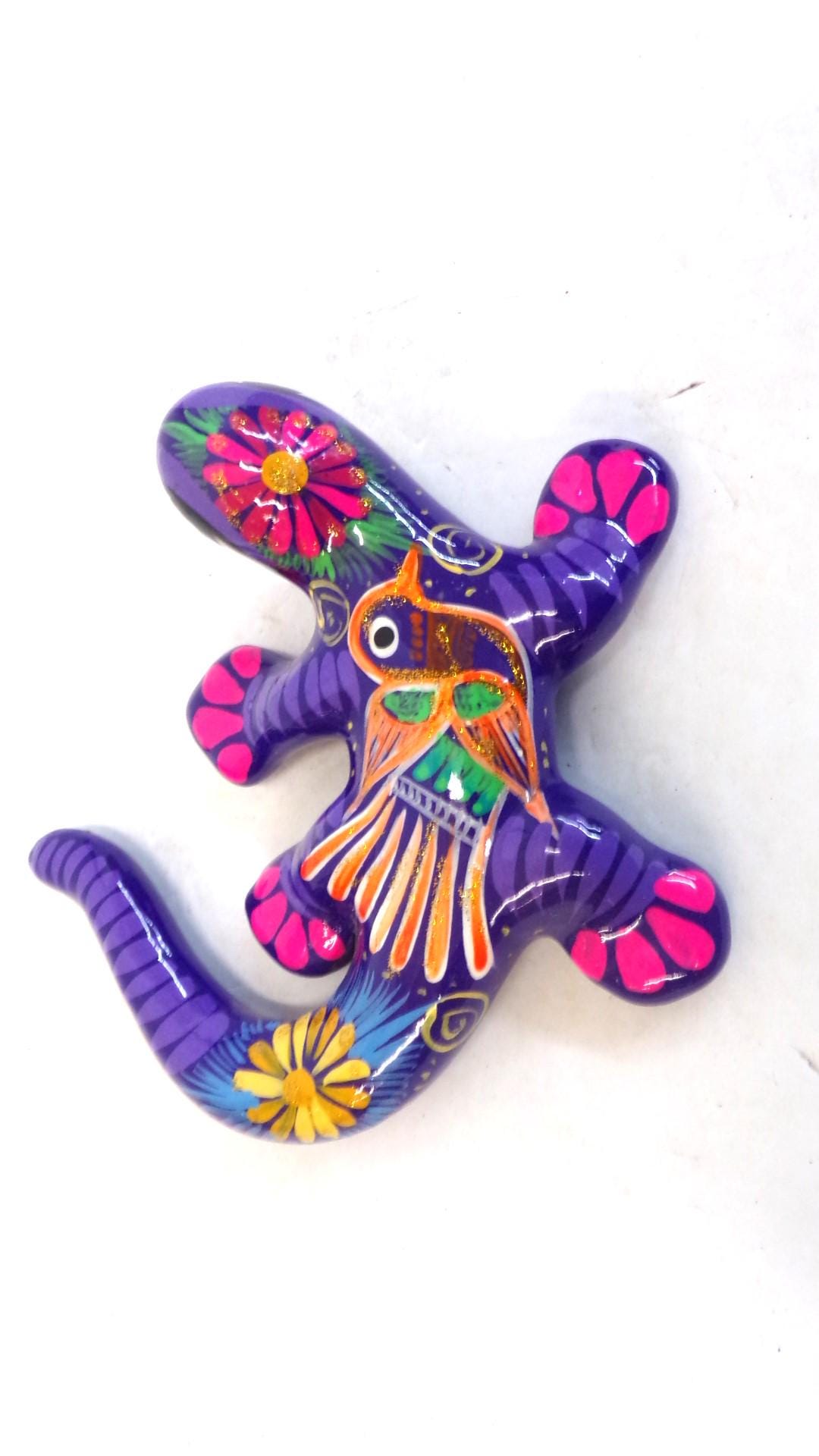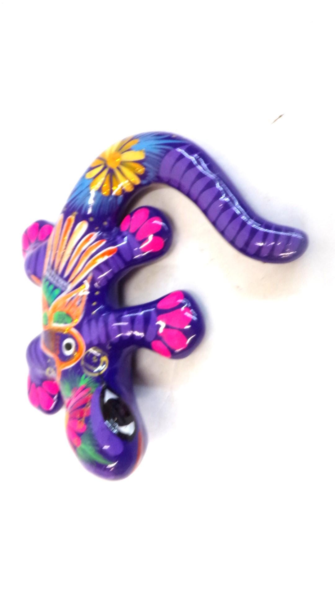 Delightful Hand Painted 6" Gecko Lizard, Handmade by a Mexico Artisan Family, Easy to Hang if Desired. Free Shipping. You will be getting the lizard that is actually shown in the pictures above. This item measures roughly 6" by 5 1/2" irregular. This would also make a great gift for a friend or a loved one. So, why ever just gift something ordinary? We will soon have many other and very unique hand painted wall art items to choose from. Shop where so many home and business decorators' shop, right here in our shop. Favorite us now and then keep on checking back with us to see all the new items that we'll be adding. I am not the world's greatest photographer so I may not have the best pictures out there, but my prices certainly are the greatest so WHY EVER PAY MORE?