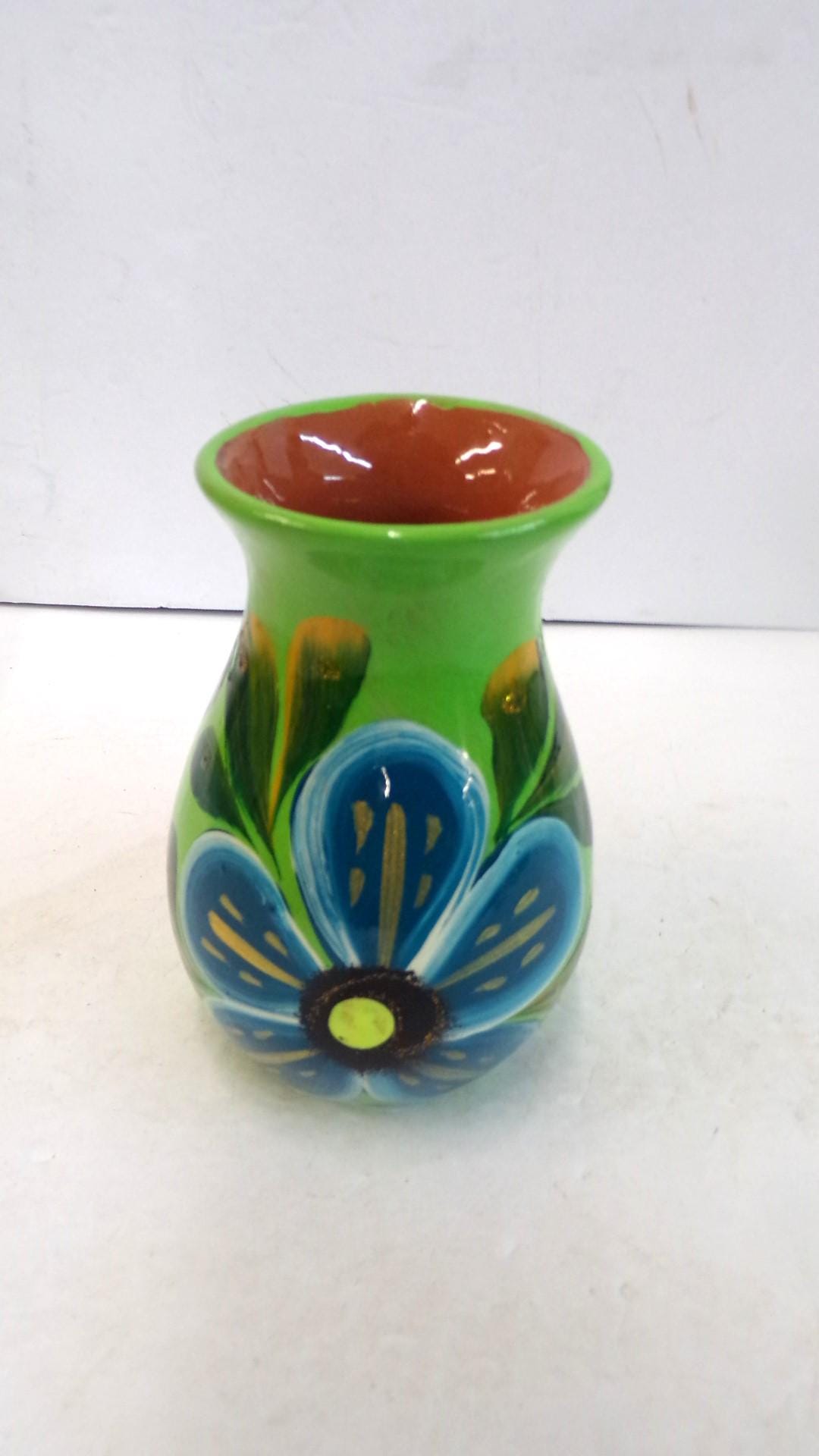 Beautiful Vase Authentic Mexico Artisan 5 1/2" Freehand Hand Painted with Traditional Motifs in Age-Old Techniques, Ceramic, Pottery. One of a kind. Even looks good as a standalone decorative item. Free Shipping. Made by Very Skilled Mexican Artisans! Handmade items may at times have minor flaws, but the overall look is always quite beautiful. Awesome Looking! Roughly 5 1/2" tall by 4" wide irregular. Favorite us now and then keep on checking back with us to see all the new items that we'll be adding. Shop where so many home decorators' shop, right here in our store. This would also make a great gift for a friend or a loved one. So, why ever just gift something ordinary? I am not the world's greatest photographer so I may not have the best pictures out there, but my prices certainly are the greatest. ?WHY PAY MORE?