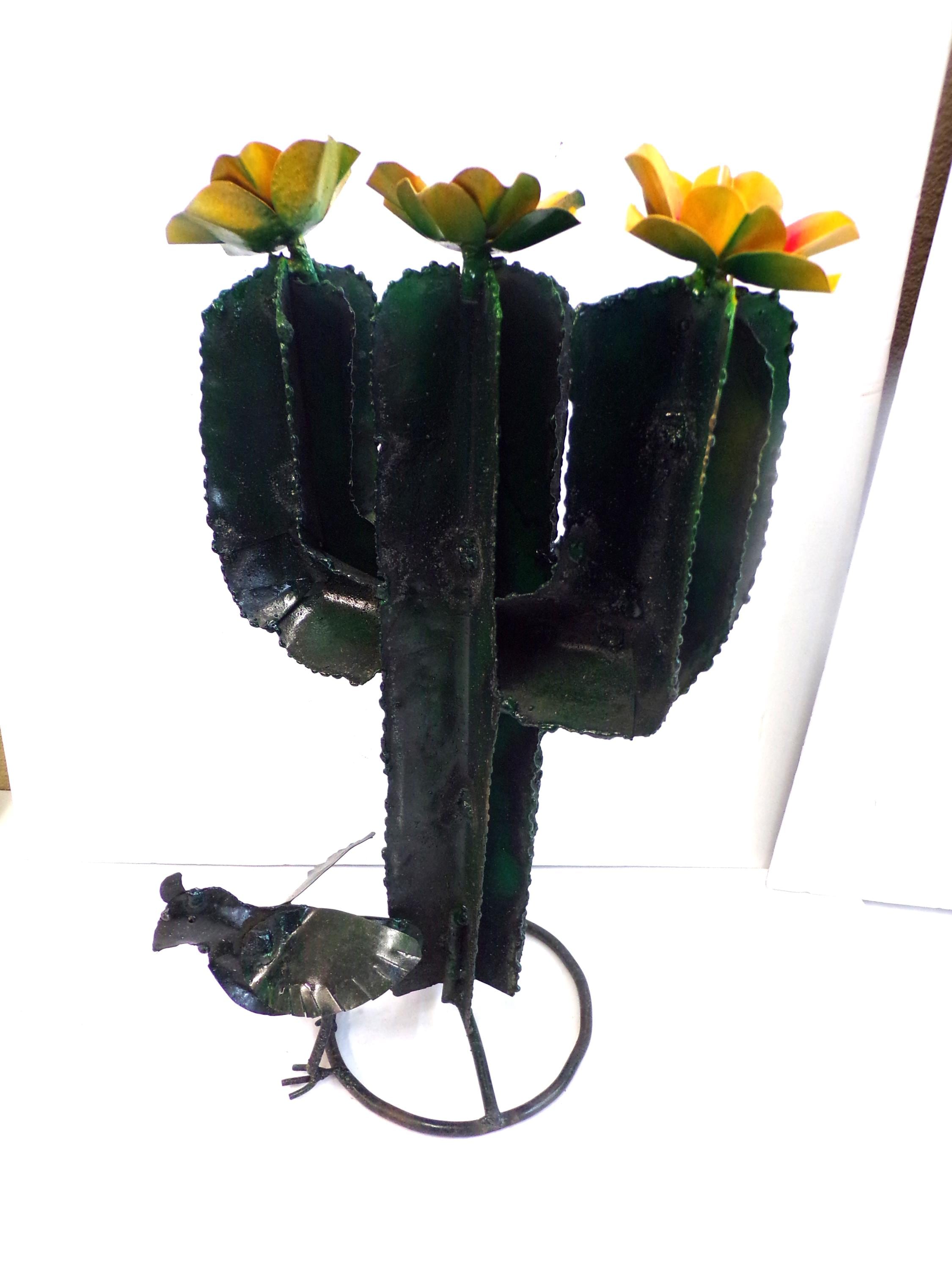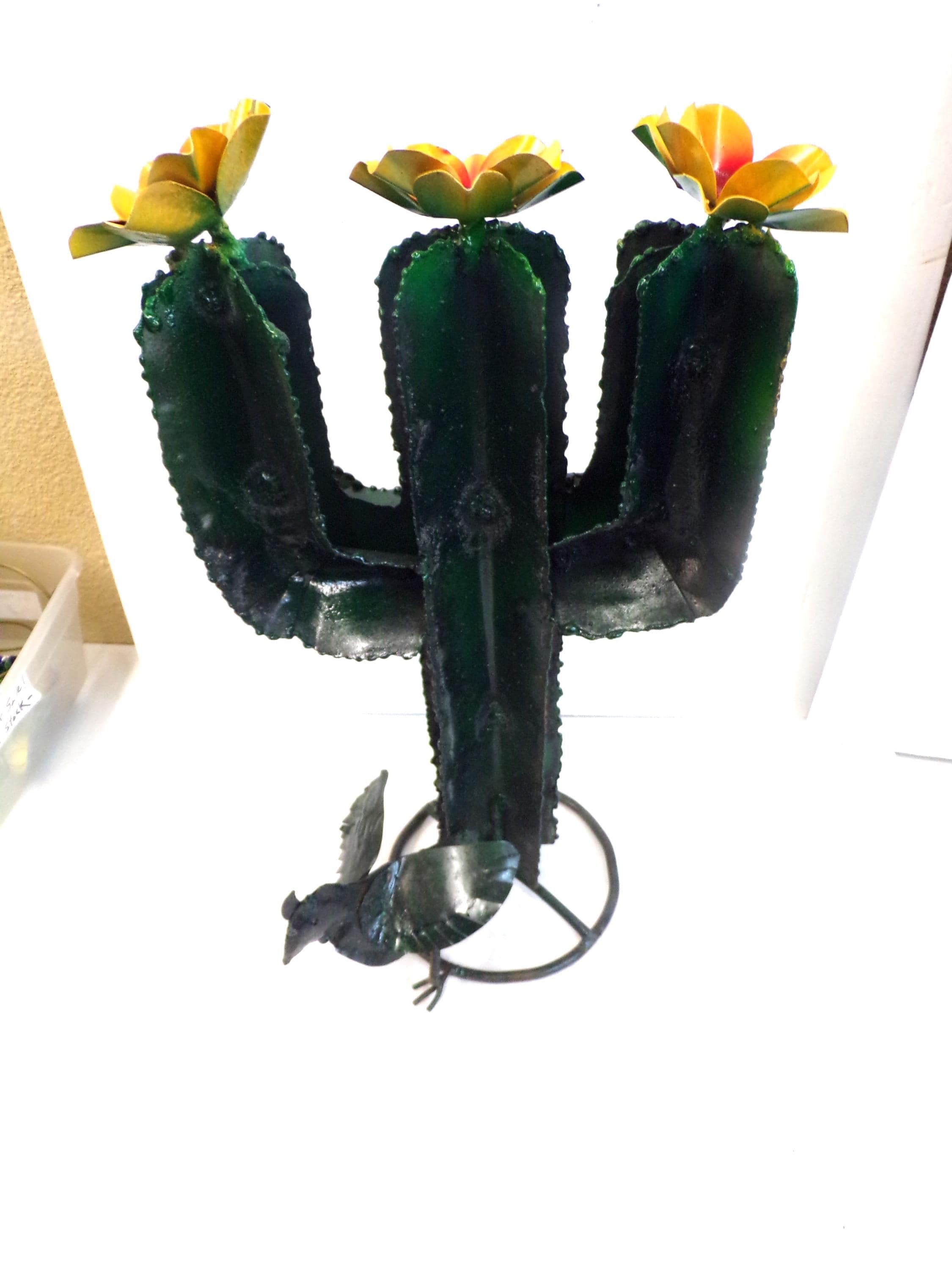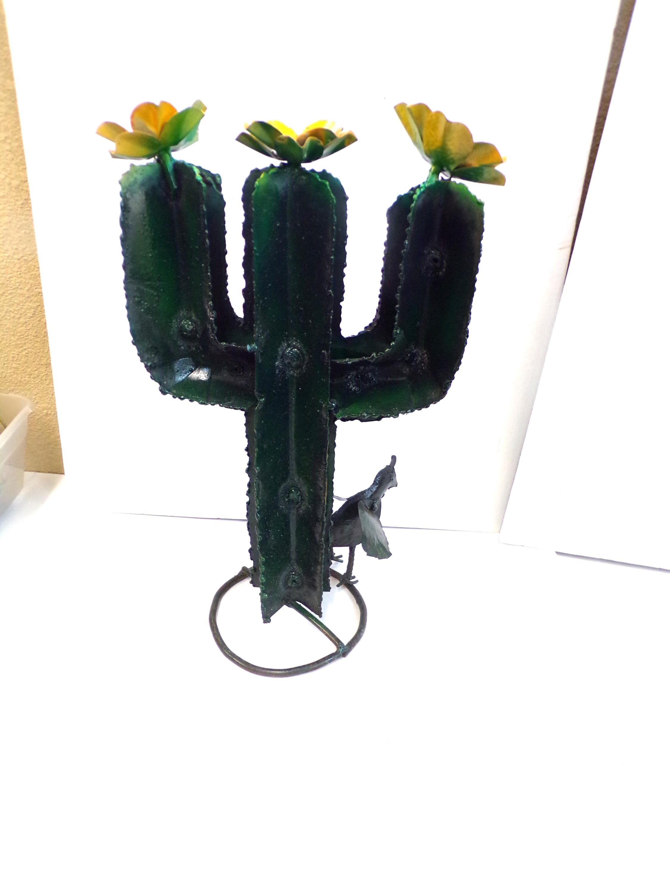 Handmade Hand Painted 16" Saguaro Cactus With 3 Flowers & a Dove. One-of-a-Kind Metal Yard Art Made by a Friend in Mexico. Free Shipping. One-of-a-Kind Metal Yard Art. Because they are handmade there can be minor flaws, but the overall look is quite impressive. This one measures roughly 16" tall by 10" wide very irregular. We'll be adding many more beautiful metal art one-of-a-kind cactuses in many sizes so keep on coming back to see what we have. This Metal Yard Art Cactus is made by a good artisan friend of mine in Mexico. Shop where so many home decorators do. This cactus would look so nice in your home, patio, or place of business. They would also make wonderful gifts for your loved ones. So, why ever buy something just ordinary? FAVORITE US NOW and then keep on checking back with us to see all the new items that we'll be adding. I am not the world's greatest photographer so I may not have the best pictures out there, but my prices certainly are the greatest so WHY EVER PAY MORE?