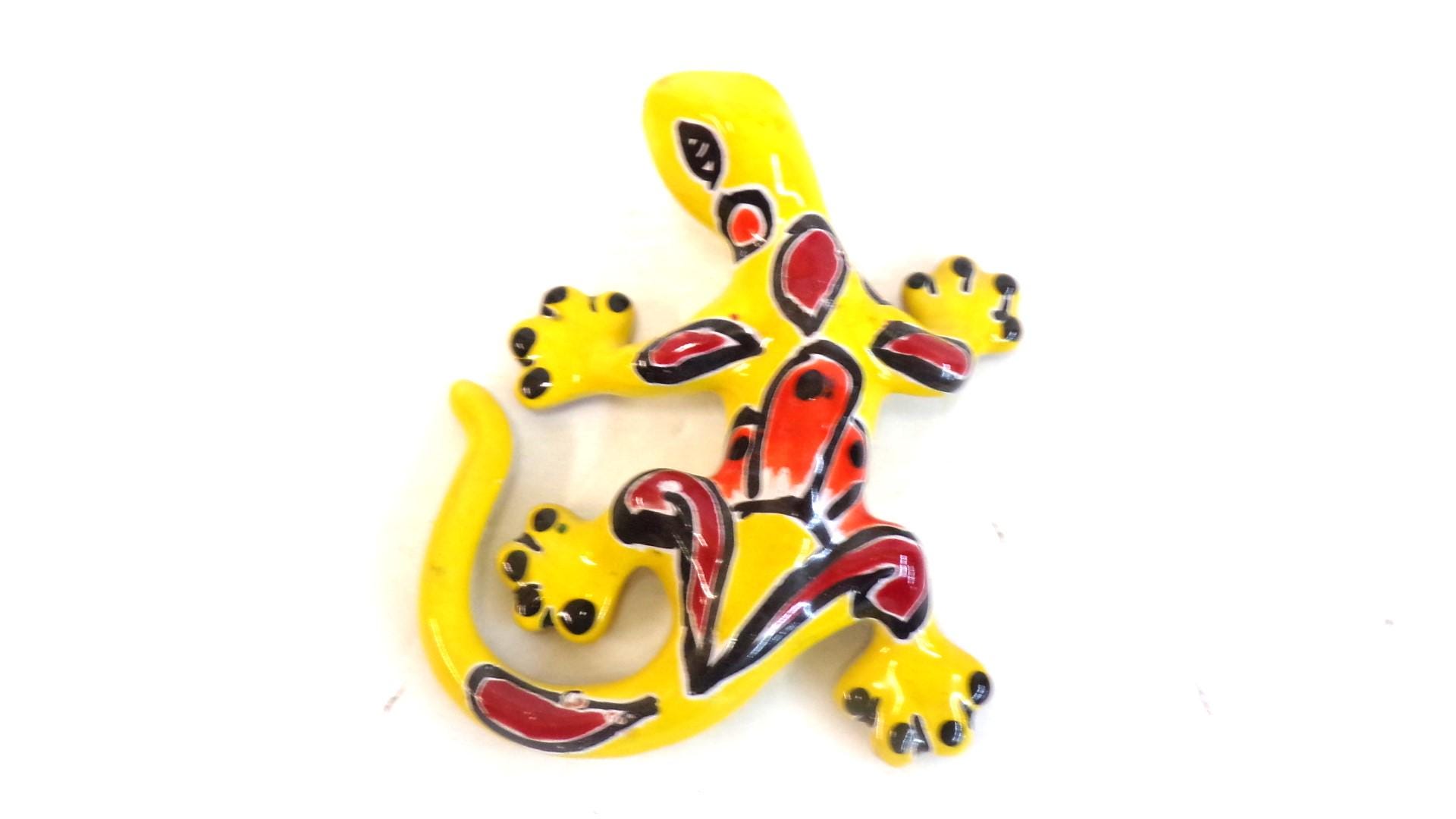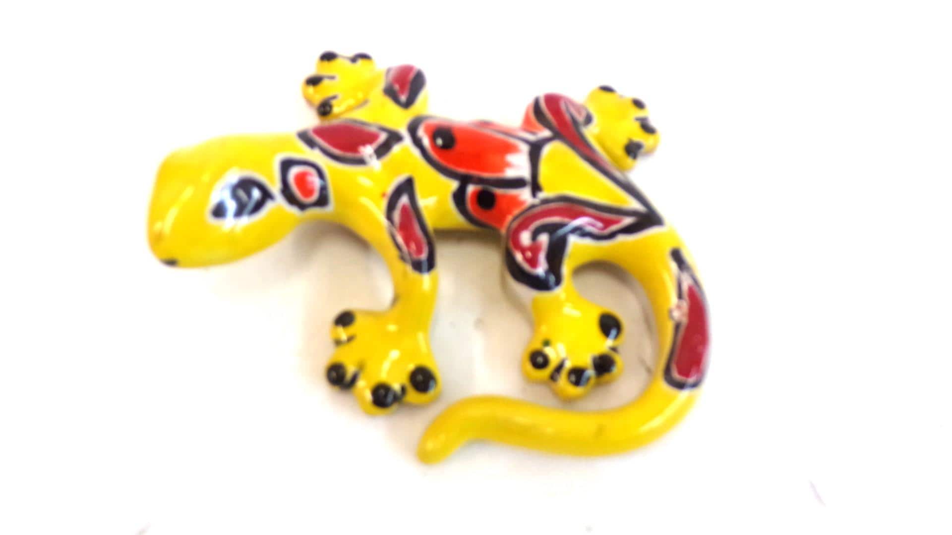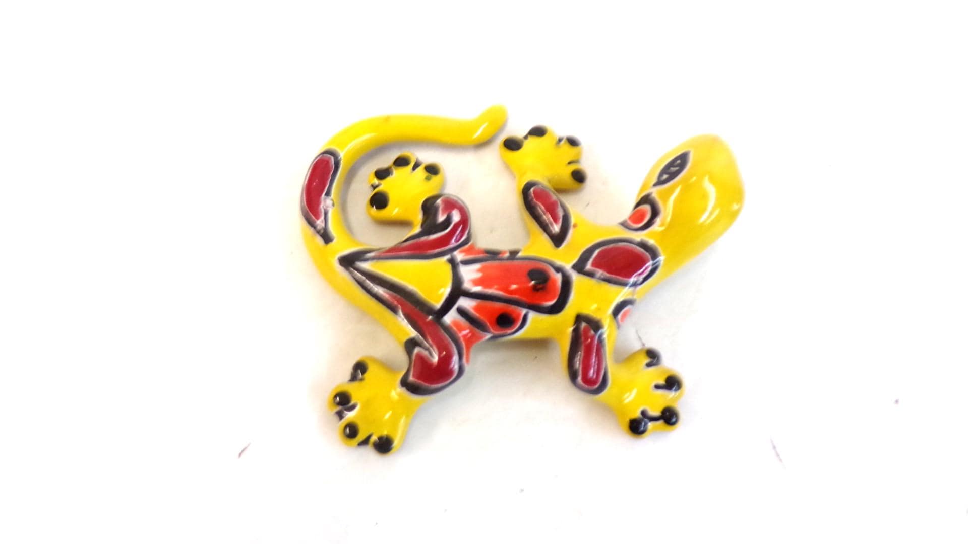 Very Beautiful Hand Painted 5 1/2" Lizard, Gecko, Iguana by an excellent Artisan in Mexico. Has a hole on the back side so it would be very easy to hang up on your wall if so desired. You will be getting the lizard that is actually shown in the pictures above. This item measures roughly 5 1/2" long by 2 1/2" wide irregular. This would also make a great gift for a friend or a loved one. So, why ever just gift something ordinary? We will soon have many other and very unique hand painted wall art items to choose from. Favorite us now and then keep on checking back with us to see all the new items that we'll be adding. I am not the world's greatest photographer so I may not have the best pictures out there, but my prices certainly are the greatest so WHY EVER PAY MORE?