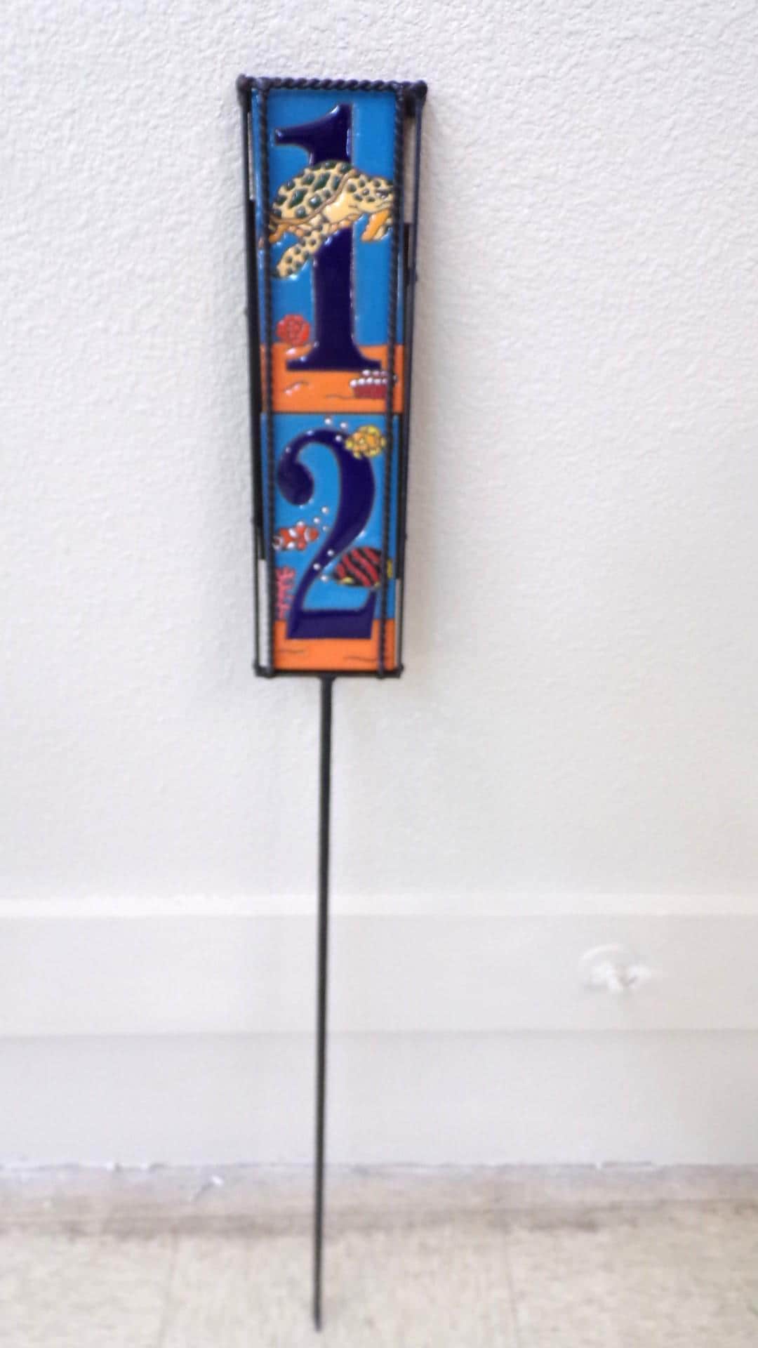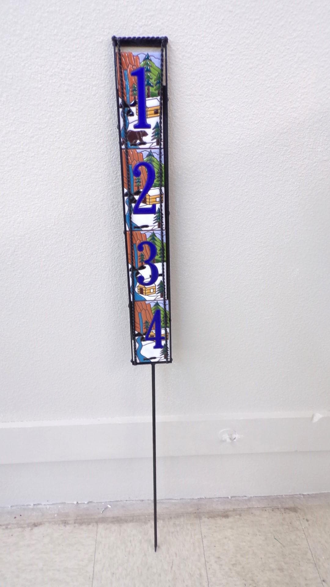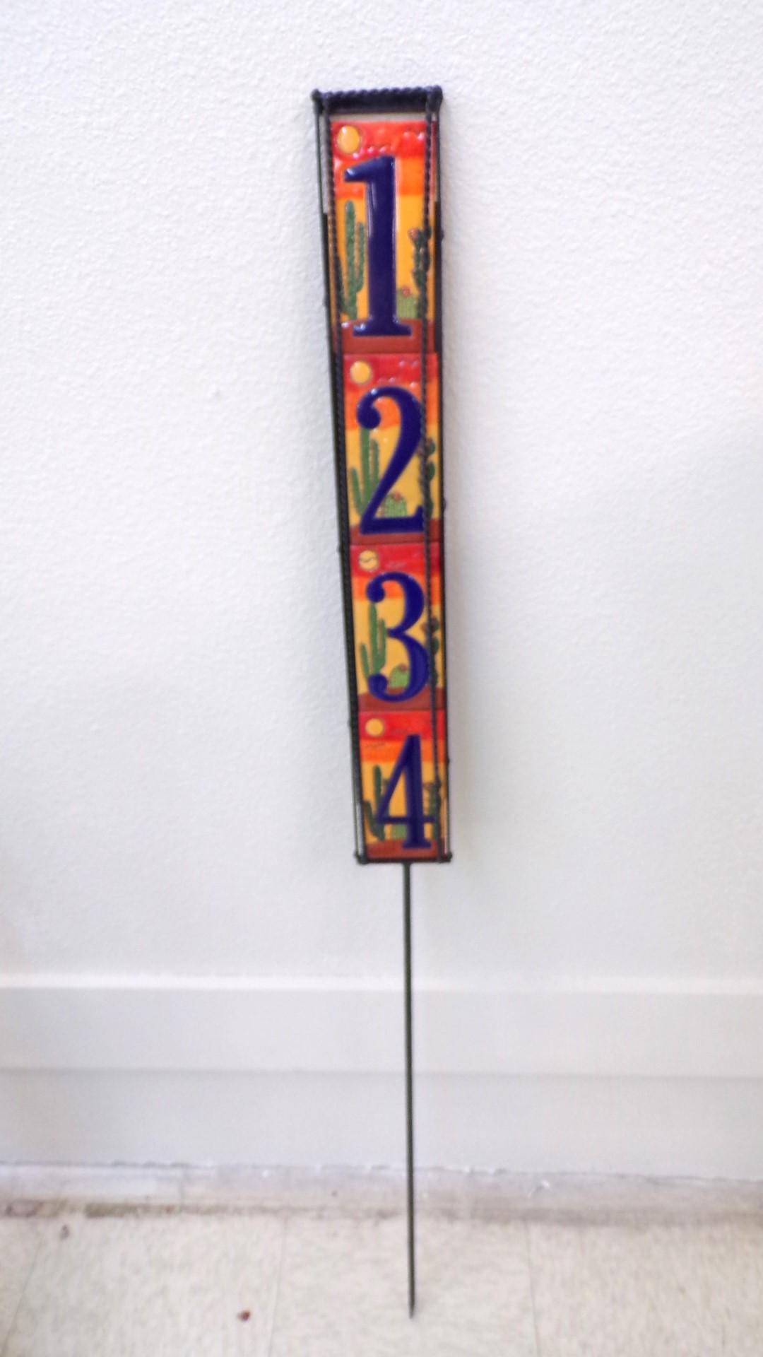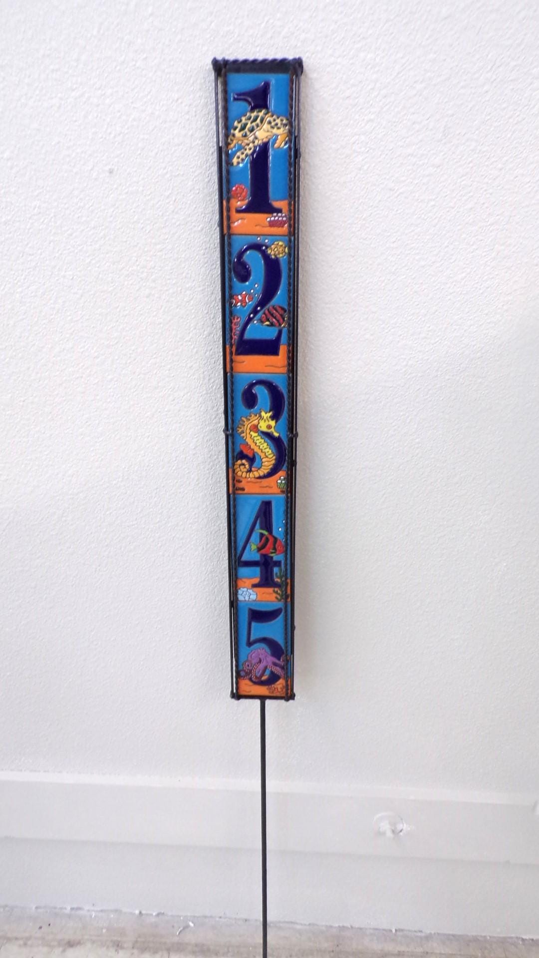 These stick in the ground welded iron frames are designed only for our 6" by 3" Talavera address tiles—please measure yours before ordering. Many tile makers use different dimensions, and these frames won’t fit other sizes. The in-ground stem is 31-33" long. TILES shown for display purposes ARE NOT included but are available in our shop. We also offer vertical ground frames & hang up frames in our shop.