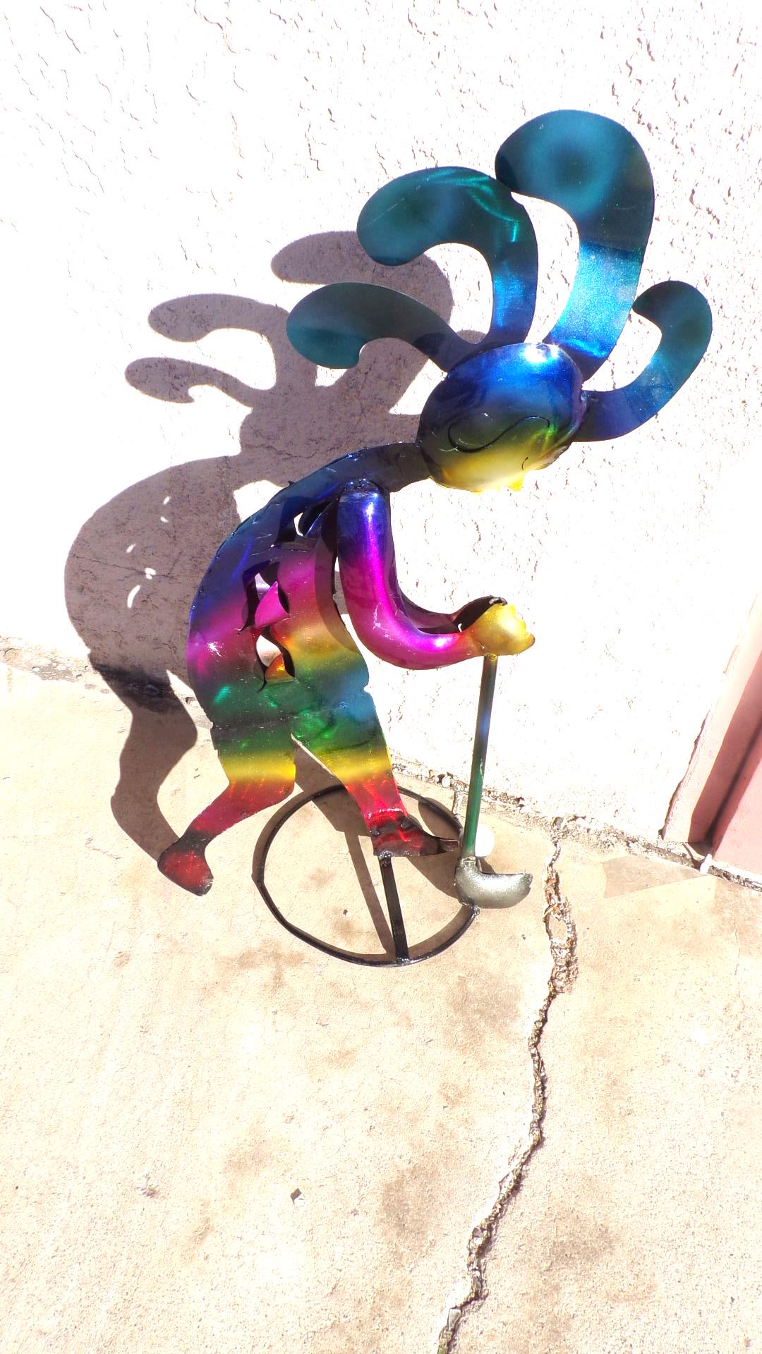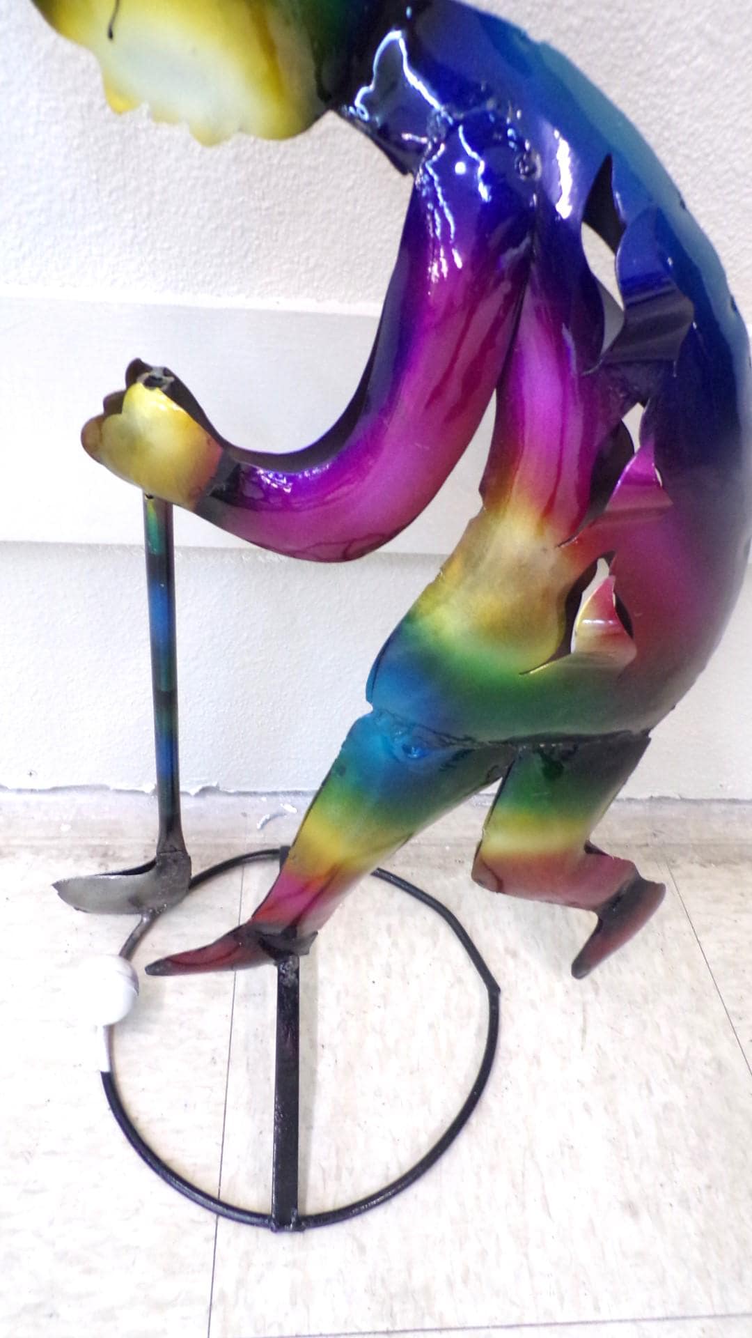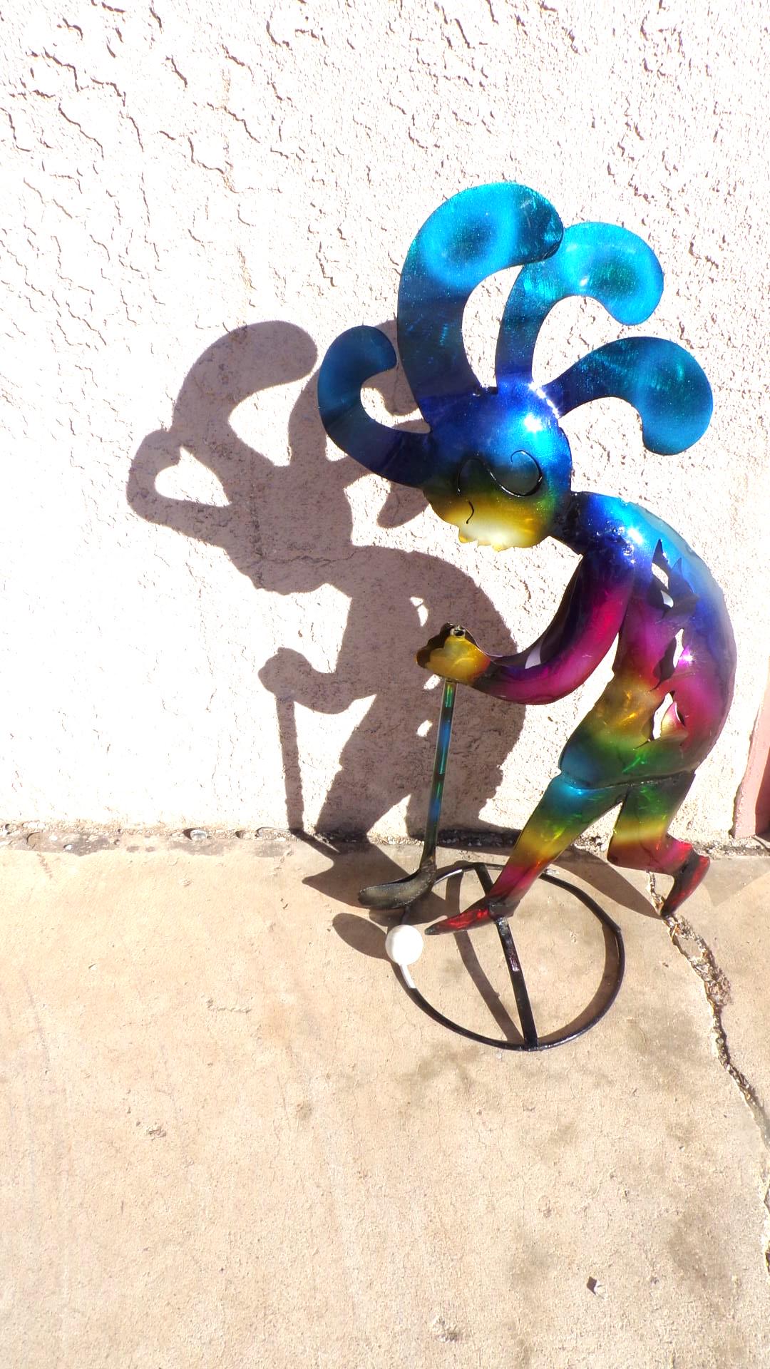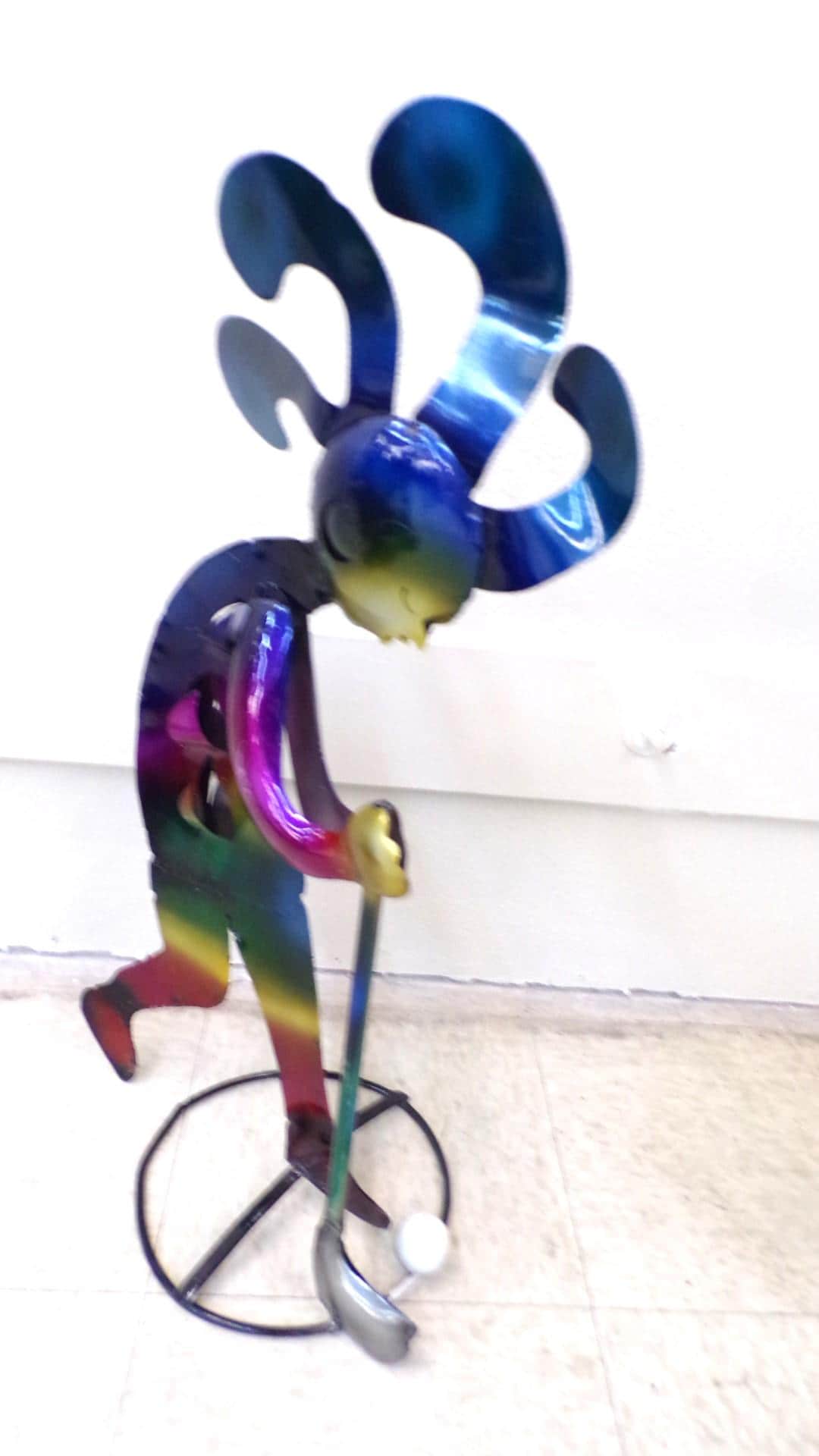 Kokopelli Playing Golf • Handmade 27" Tall Metal Folk Art• Free Shipping. This would look so great in your bar area or patio. This item is roughly 27 1/2" tall by 14" wide irregular. And he's got friends that may be in our Etsy shop if still available. You will be getting the item actually shown in the pictures. Each of these are items are handmade by artisans so there can at times be minor imperfections, but the overall look is quite beautiful. This item would make a great & unusual gift for a friend or a loved one too. Why just gift something ordinary? I am not the world's greatest photographer so I may not have the best pictures out there, but my prices certainly are the greatest so WHY EVER PAY MORE?