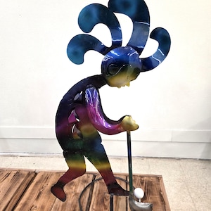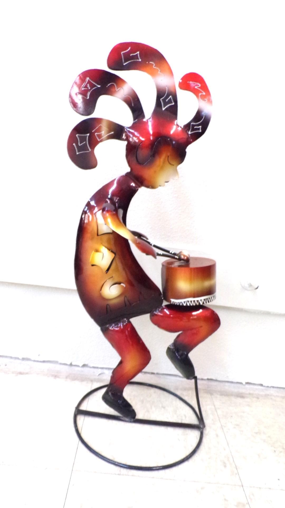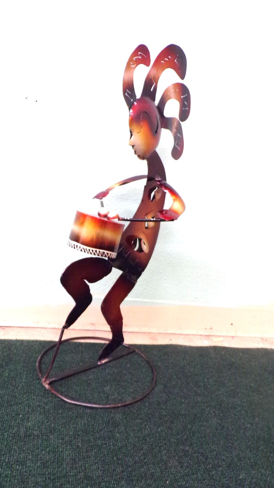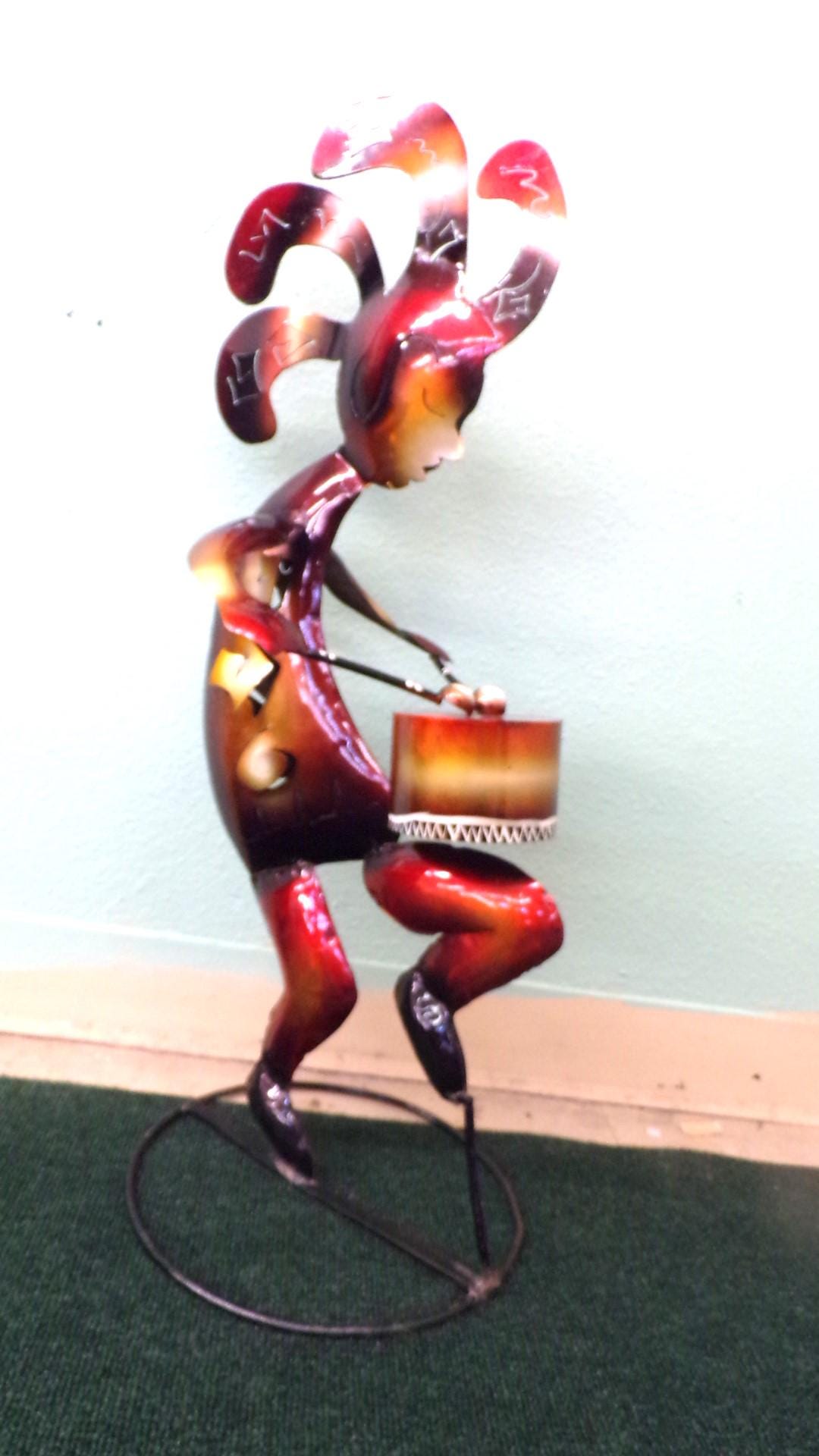 Kokopelli Playing Drum • Handmade 29" Tall Metal Folk Art• Free Shipping. This would look so great in your bar area or patio. This item is roughly 2" tall by 14" wide irregular. And he's got friends that may be in our Etsy shop if still available. You will be getting the item actually shown in the pictures. Each of these are items are handmade by artisans so there can at times be minor imperfections, but the overall look is quite beautiful. This item would make a great & unusual gift for a friend or a loved one too. Why just gift something ordinary? I am not the world's greatest photographer so I may not have the best pictures out there, but my prices certainly are the greatest so WHY EVER PAY MORE?