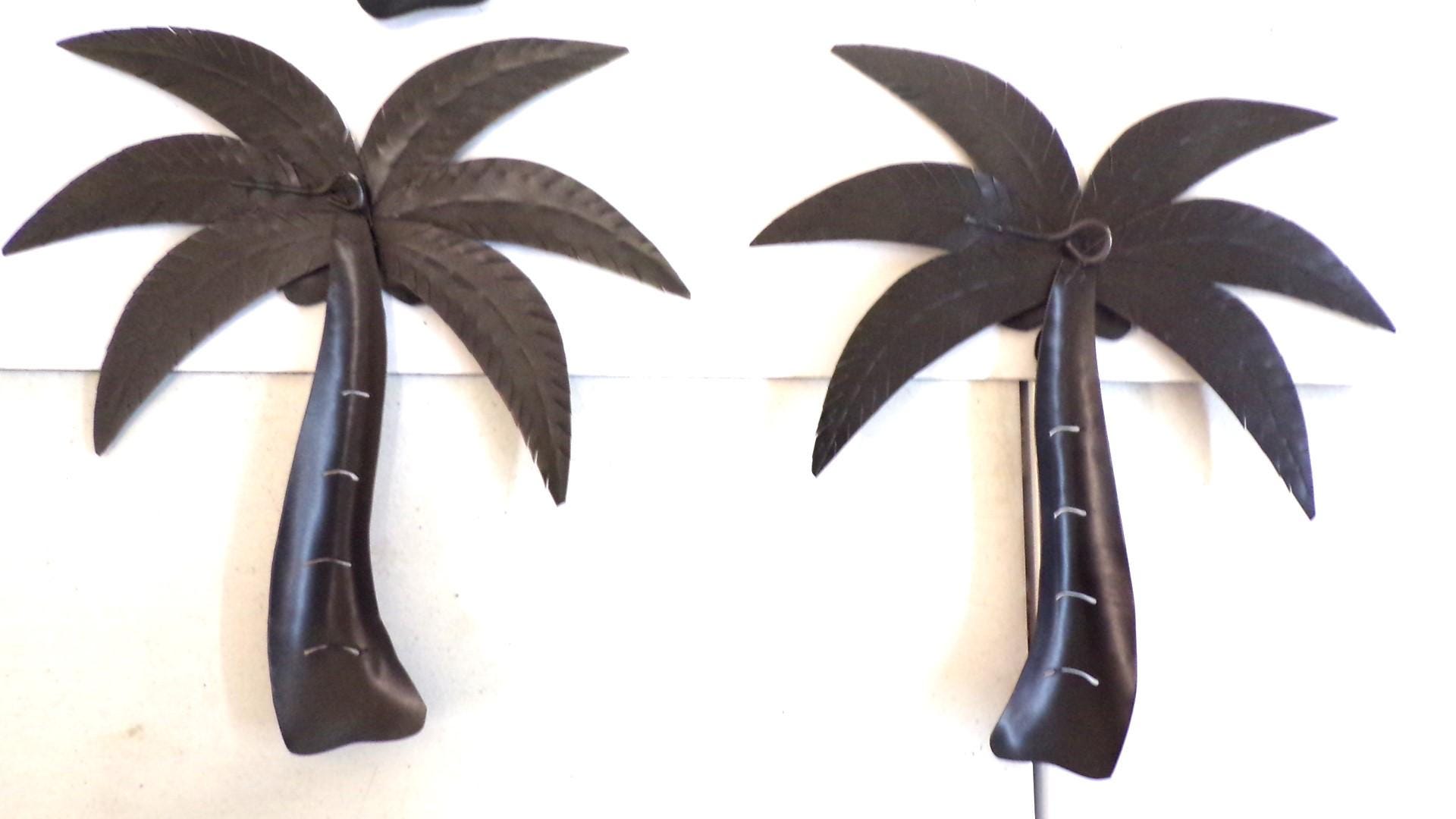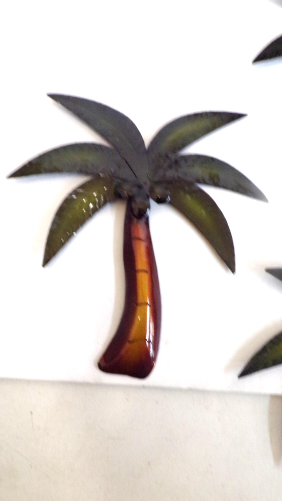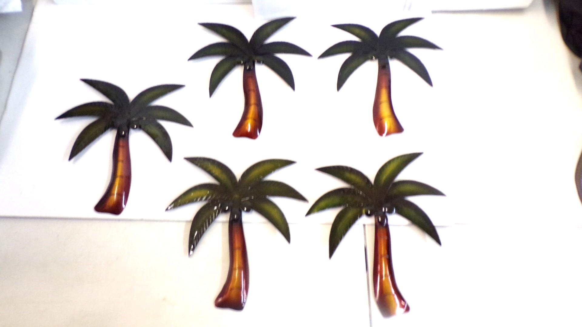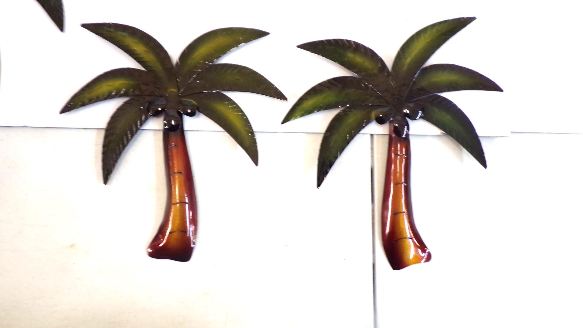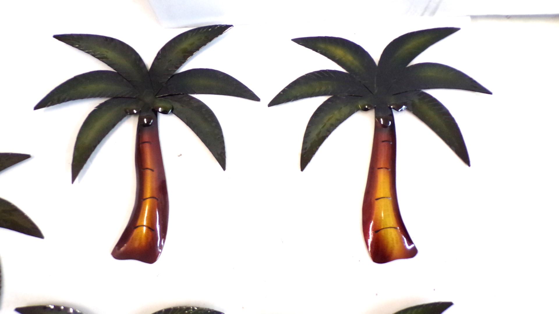 Wholesale 5pc Metal Wall Art Palm Trees with Coconuts– Handmade in Mexico. Handcrafted by artisan friends. Each piece features vibrant detail and an eyelet on the back for easy hanging with a screw or nail. No color substitutions, each lot is different, all colors sell well.