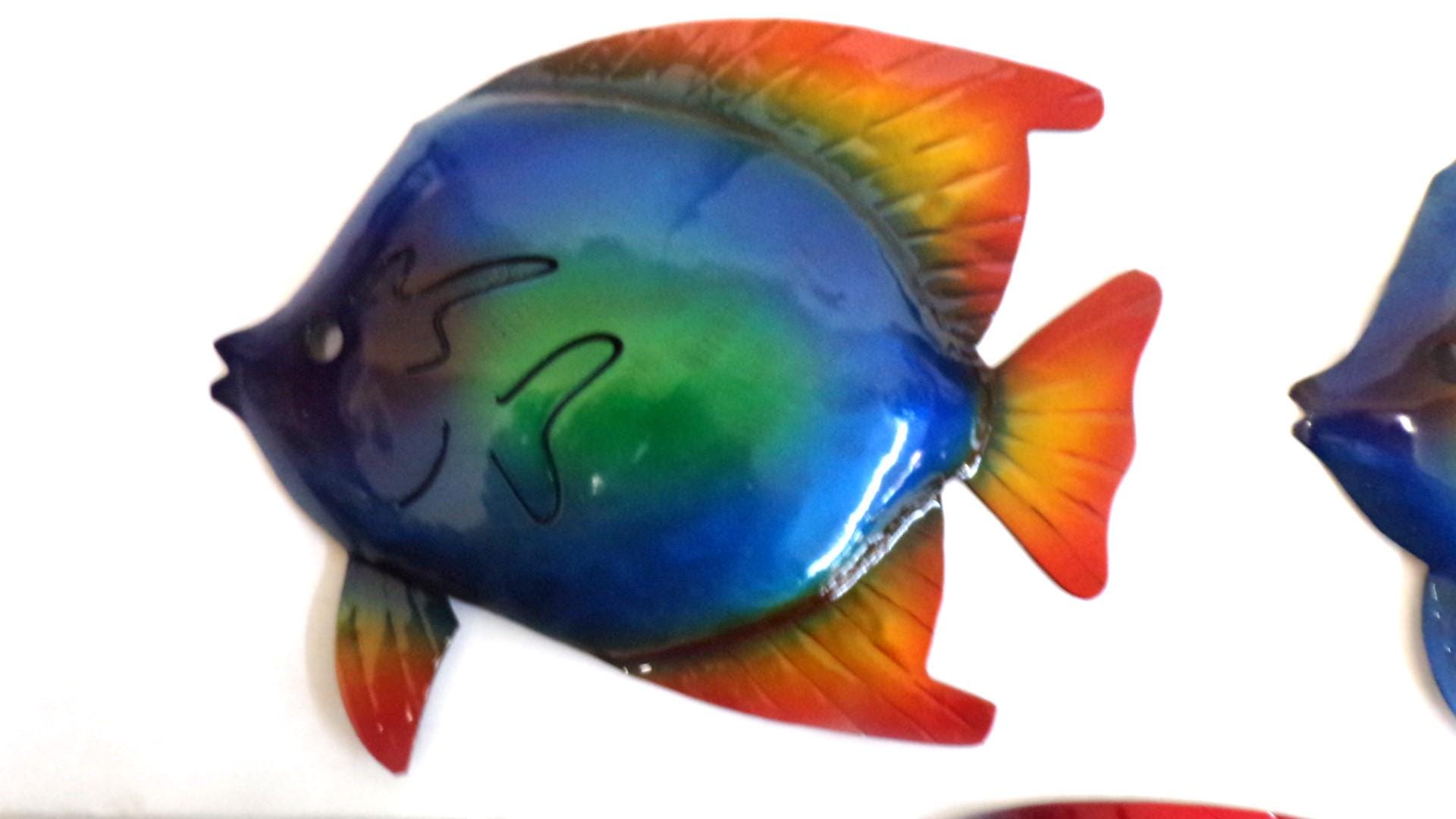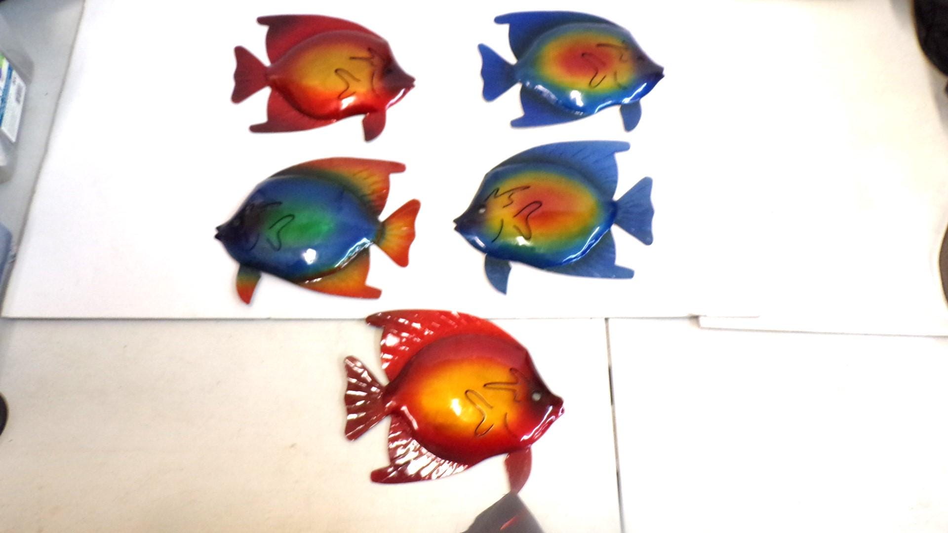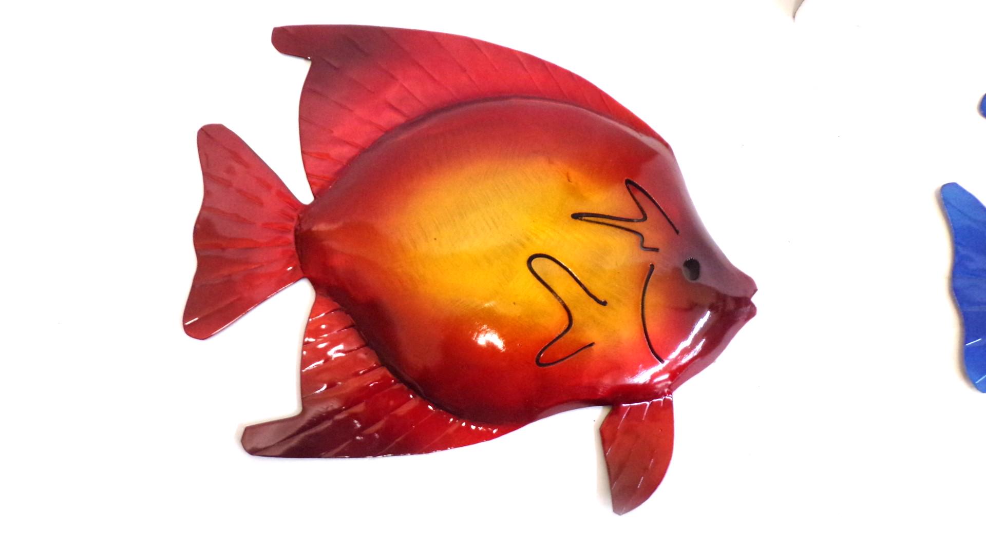 Wholesale 5pc Metal Wall Art Fish– Handmade in Mexico. Handcrafted by artisan friends. Each piece features vibrant detail and an eyelet on the back for easy hanging with a screw or nail. No color substitutions, each lot is different, all colors sell well.