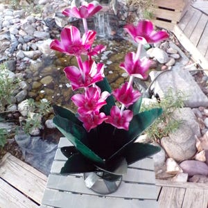 Handcrafted 24" Metal Flower Sculpture – Rustic Yard Art – Free Shipping Metal Artisan Yard Art. Handmade, Handcrafted. Handcrafted by a good artisan friend of mine. Roughly 24" tall by 10" wide irregular. This would look so awesome in your yard, house, restaurant, bar, or business. Shop where so many home decorators do. And this would also make an awesome gift for a friend or a loved one. So, why gift something just ordinary? Favorite us now and then keep on checking back with us to see all the beautiful & many unusual new items that we will be adding on a regular basis. Many of our items are just one of a kind artistic pieces. I am not the world's greatest photographer so I may not have the best pictures, but my prices certainly are the greatest so Why Pay More?