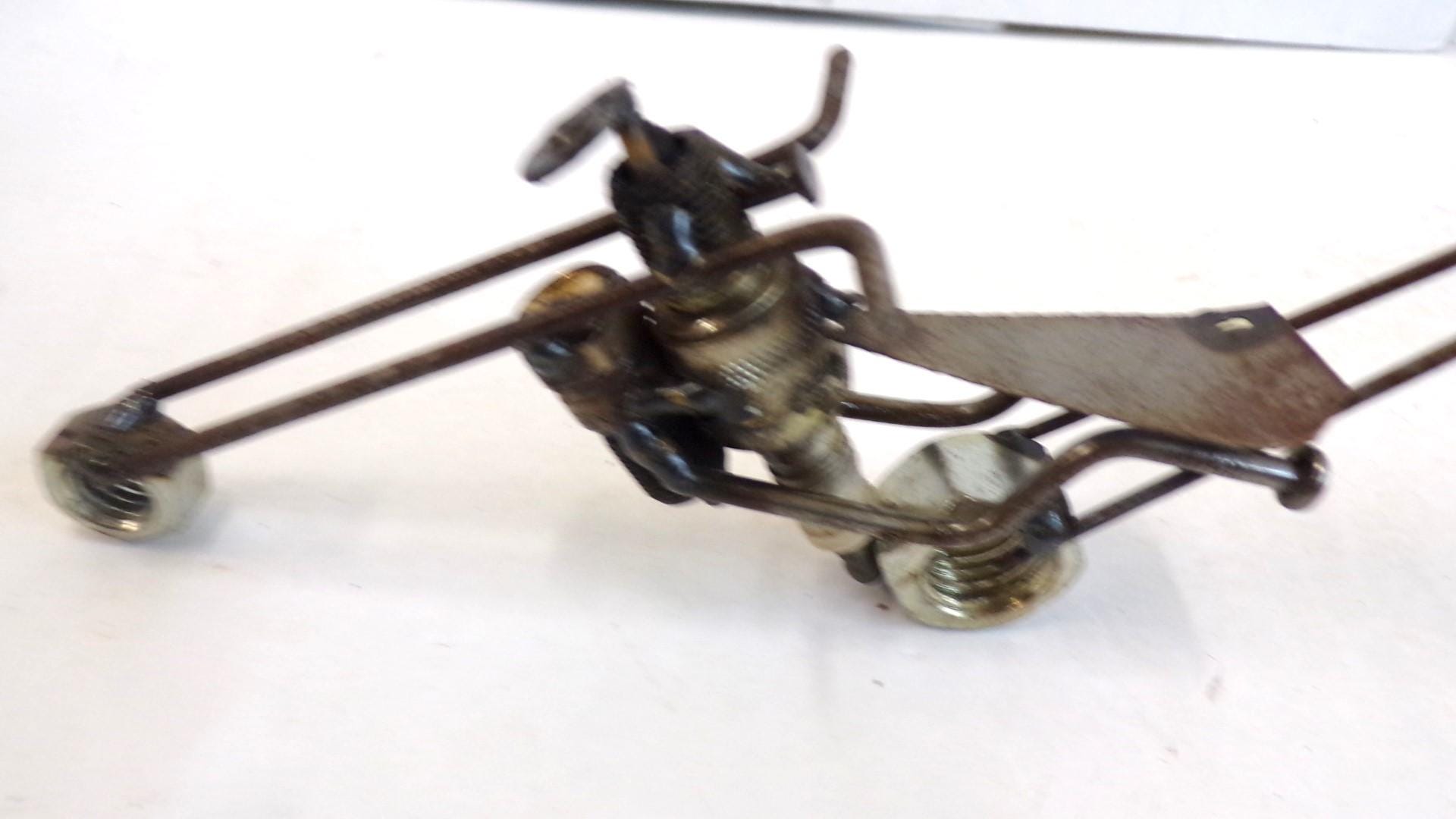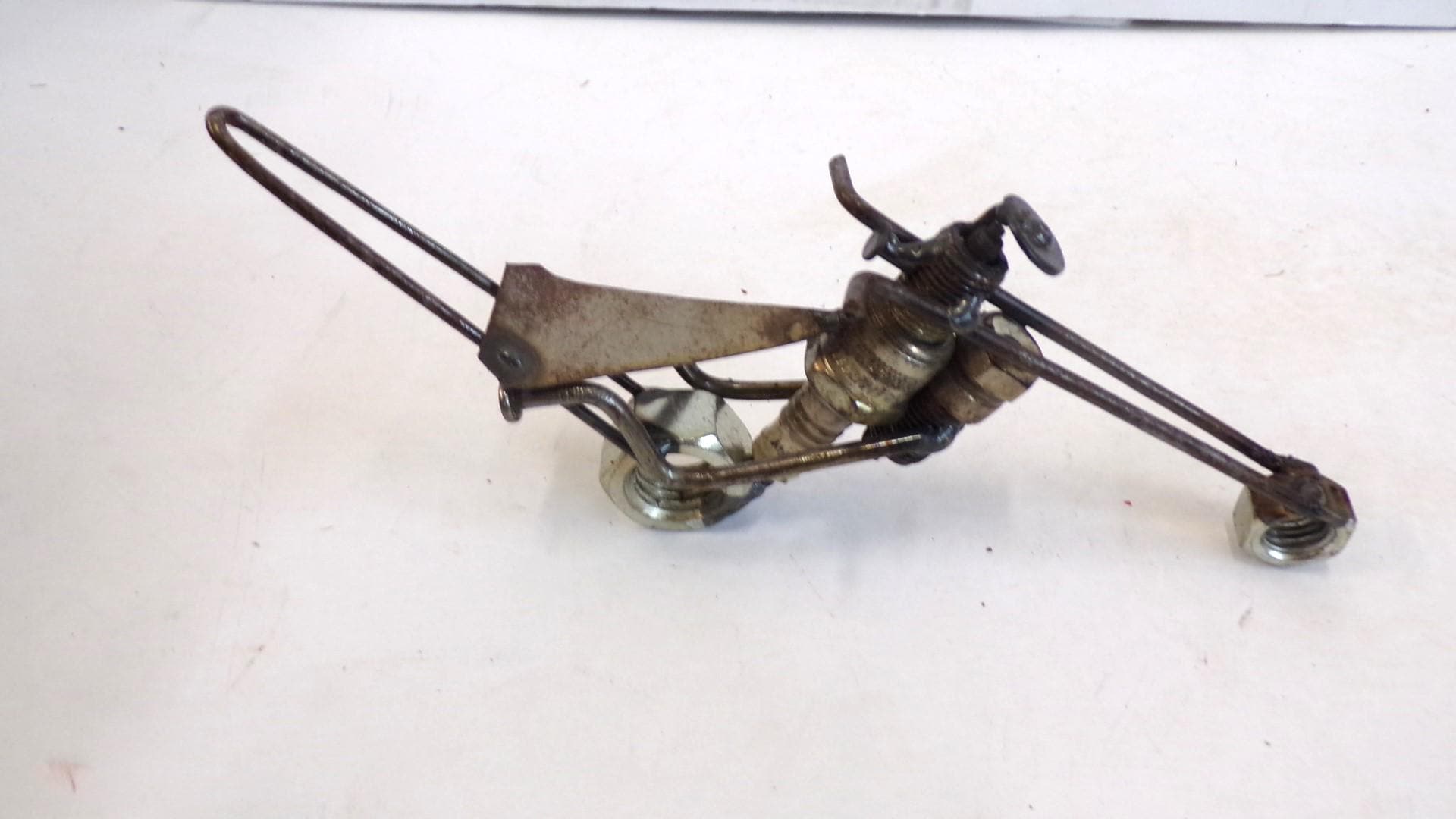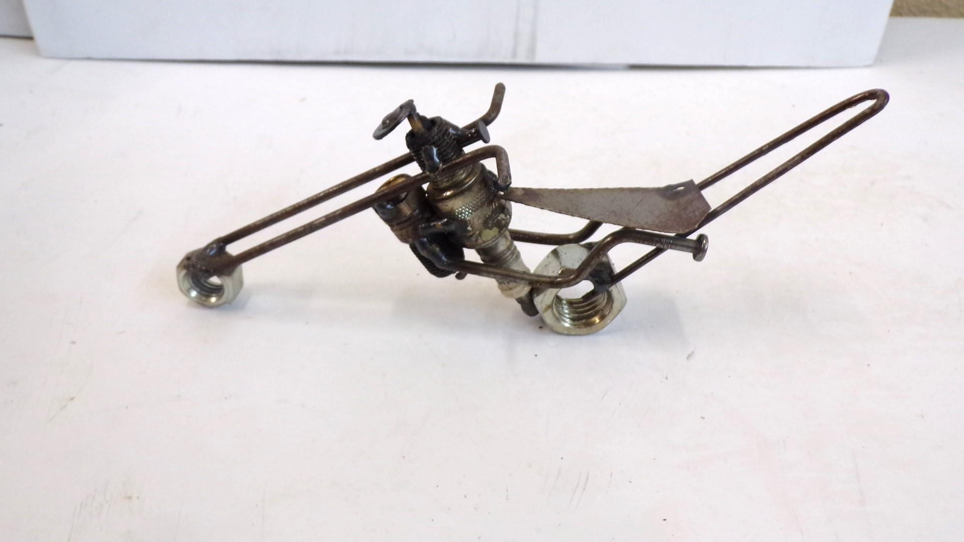 Motorcycle Sparkplug Metal Art – Handmade– 8" Long – Ships Free This very unique piece would look so great or on a shelf in your home, bar, or office. It would also make a great gift for a friend or a loved one. So, why just ever gift something ordinary? This item measures roughly 8 1/2" long by 3 1/2" tall irregular shaped. We will be adding many beautiful handmade artistic items here in my Etsy shop on a regular basis. FAVORITE US now and then keep on checking back with us to see all the new items that we'll be adding. I am not the world's greatest photographer so I may not have the best pictures out there, but my prices certainly are the greatest so WHY EVER PAY MORE?