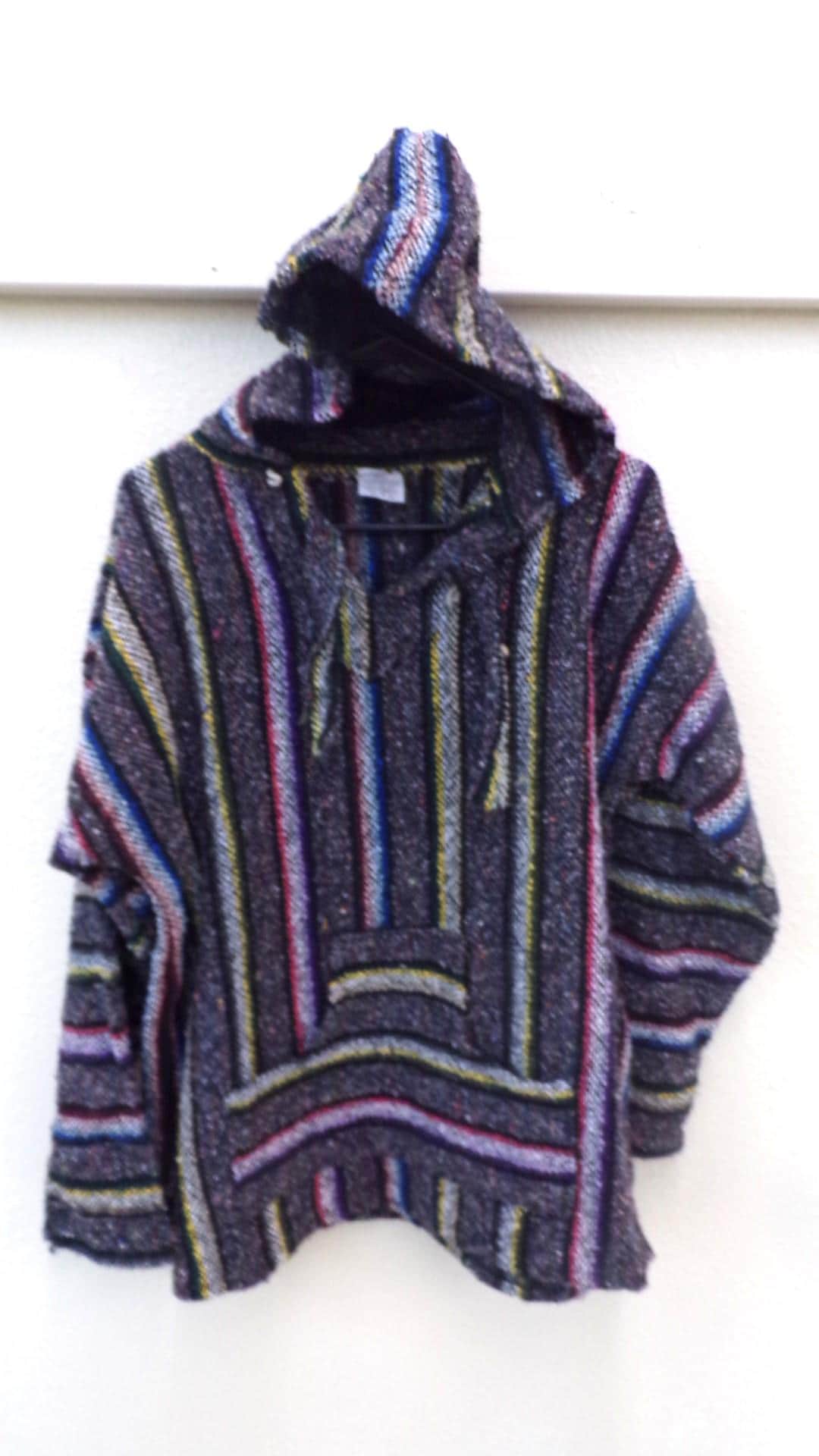 Beautiful Baja Classic Hoodie Pullover Surfer Drug Rug from Mexico! This poncho would look wonderful on guys and even much better on our lovely lady friends. You will be getting the poncho that is actually shown above in the pictures above, not some poncho that looks kinda looks like it or is kinda the same color. We will soon have many different styles & colors of ponchos to pick from in many different sizes. You may also want to check out our awesome zippered ponchos.