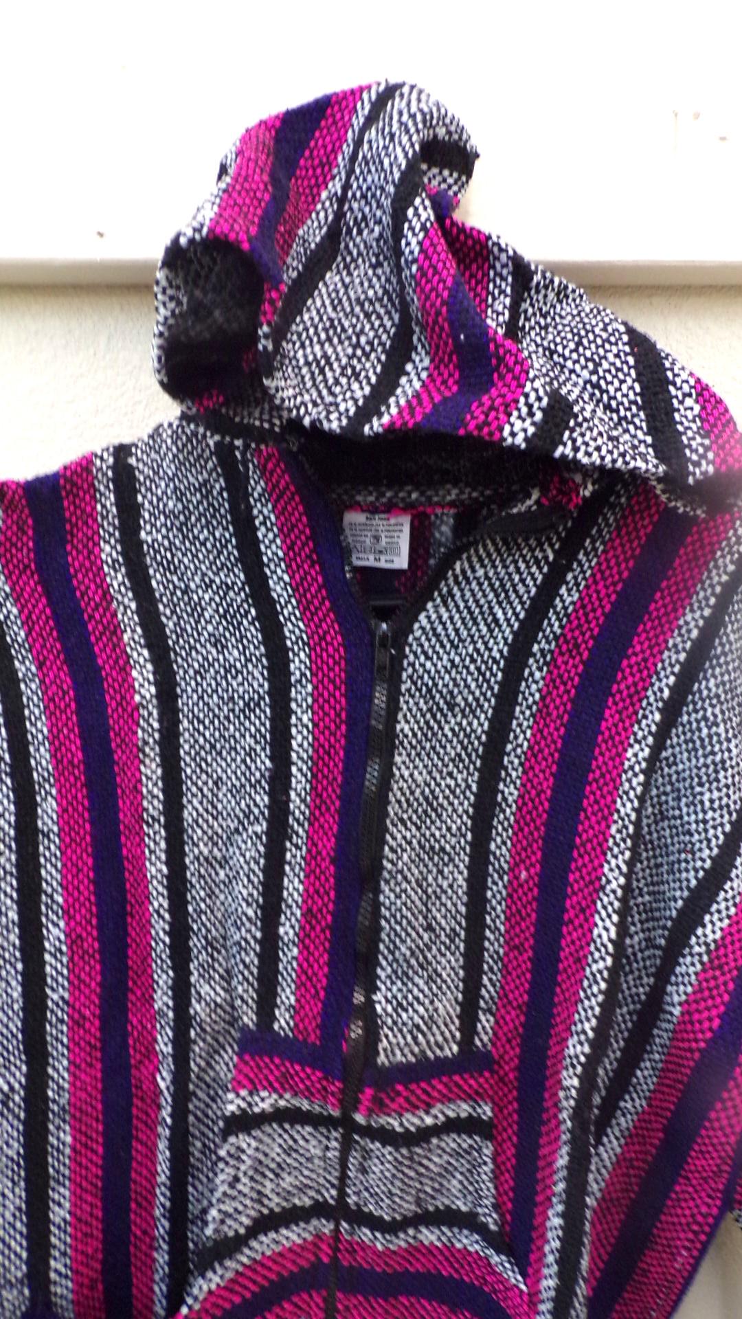 Beautiful Baja Classic Hoodie Zipper Surfer Drug Rug from Mexico! This poncho would look wonderful on guys and even much better on our lovely lady friends. You will be getting the poncho that is actually shown above in the pictures above, not some poncho that looks kinda looks like it or is kinda the same color. We will soon have many different styles & colors of ponchos to pick from in many different sizes. You may also want to check out our awesome zippered ponchos.