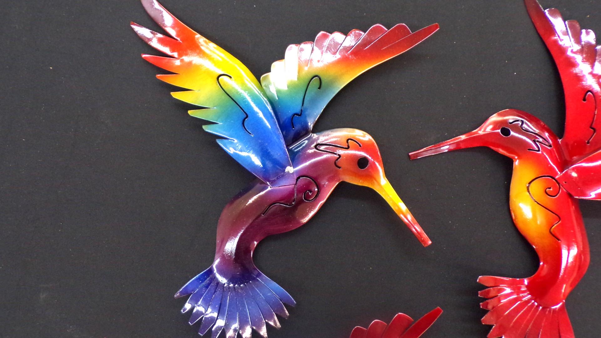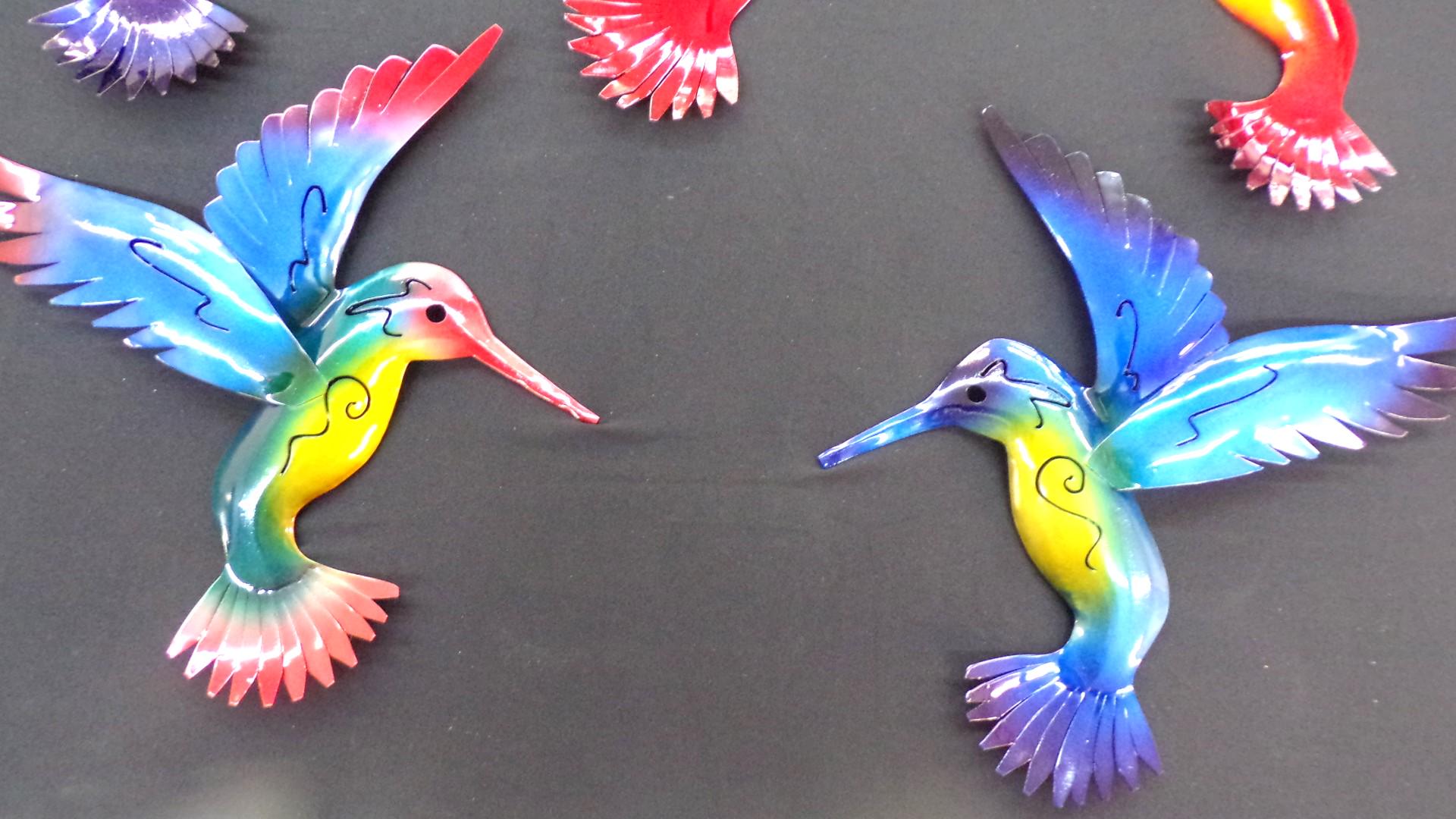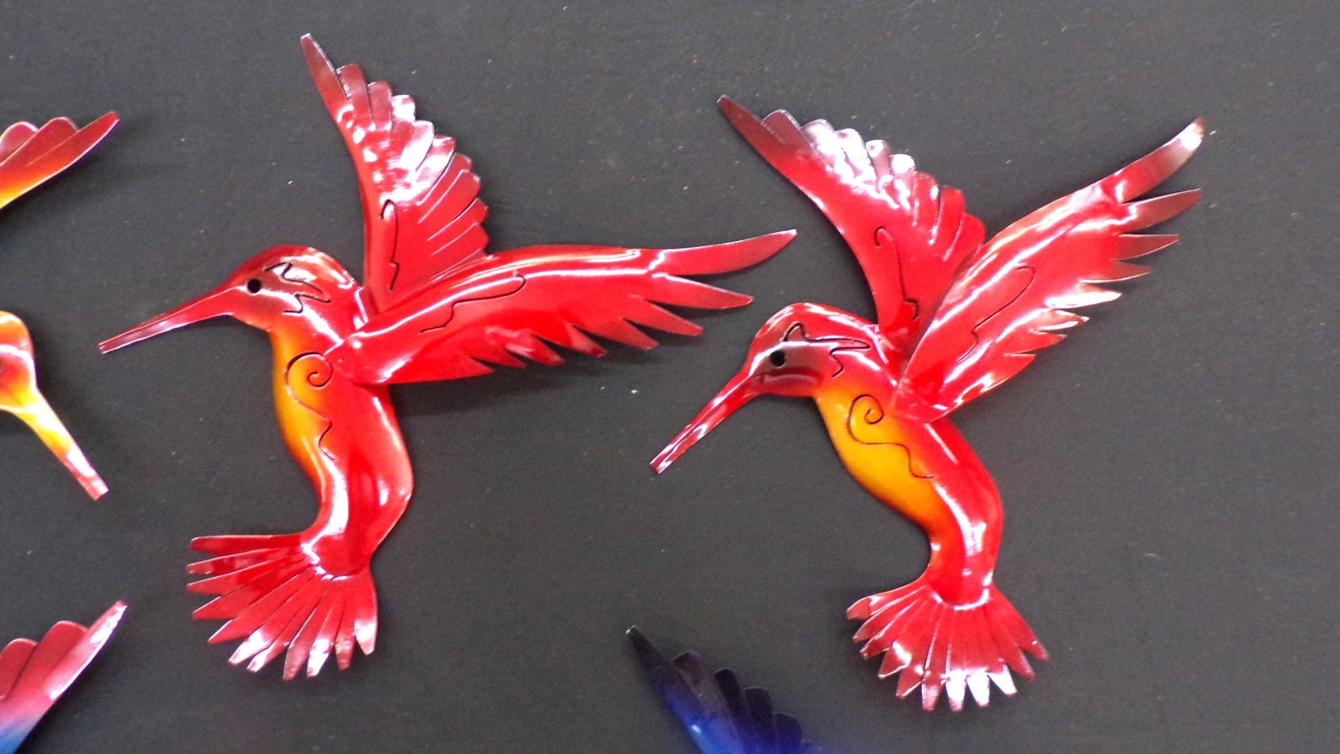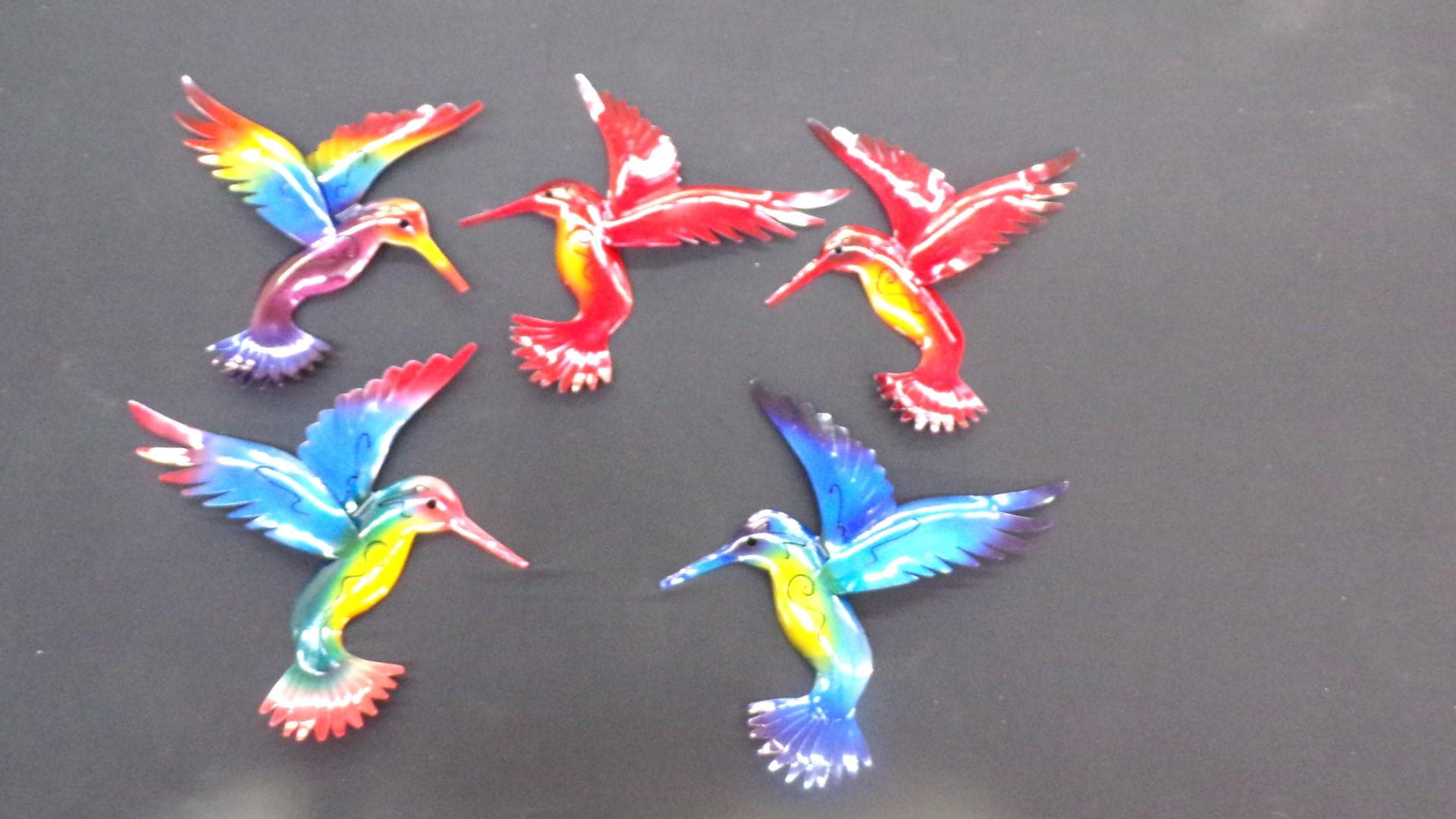Wholesale 5pc Metal Wall Art Hummingbirds – Handmade in Mexico. Handcrafted by artisan friends. Each piece features vibrant detail and an eyelet on the back for easy hanging with a screw or nail. No color substitutions, each lot is different, all colors sell well.