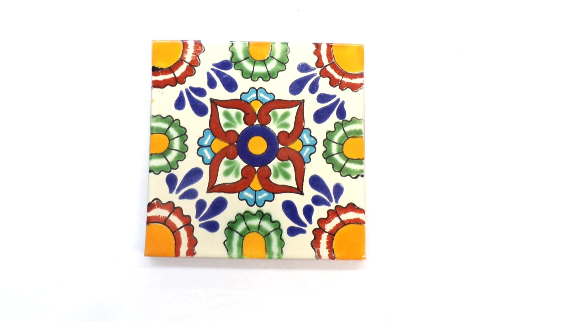 Bring vibrant Mexican artistry to your space with this 6x6 high-relief Talavera tile. Hand-painted in bold colors, it’s crafted to withstand heat, moisture, and cold—perfect for indoor or outdoor use.