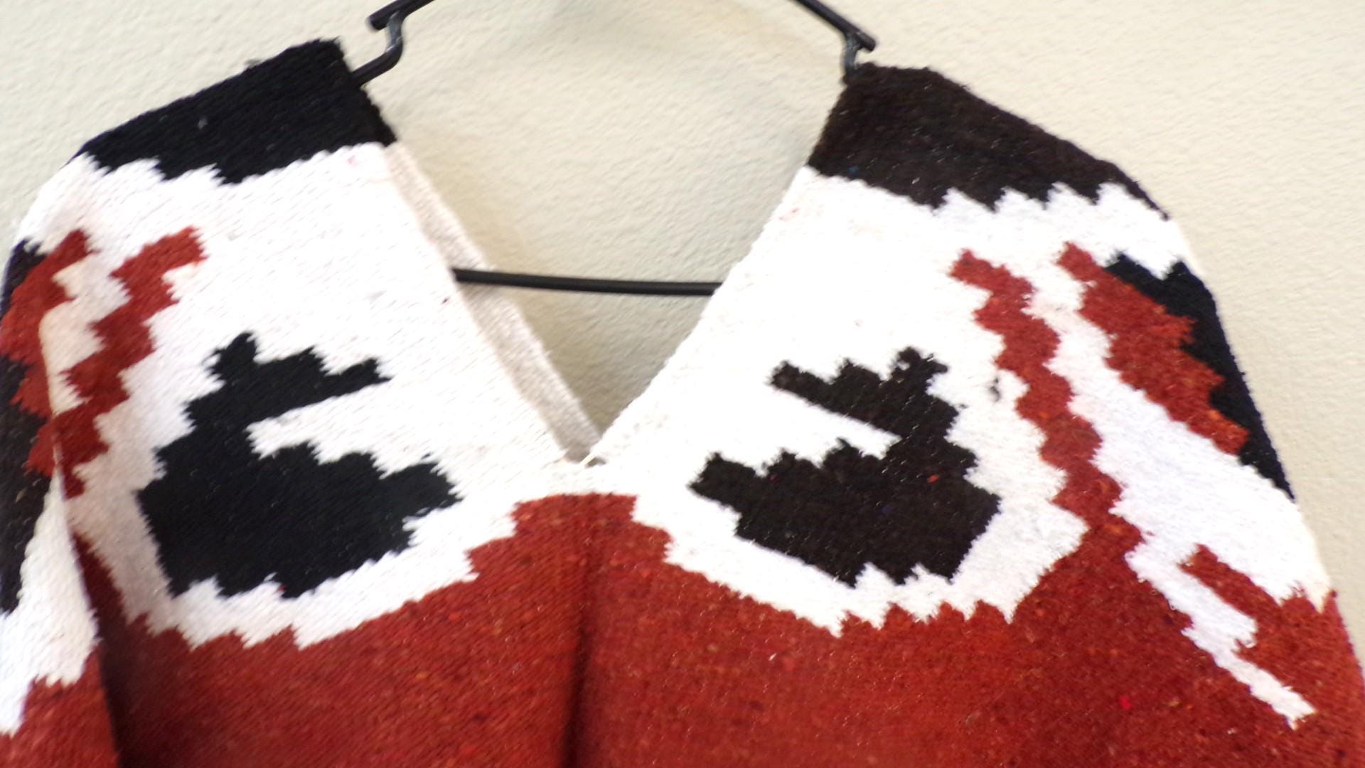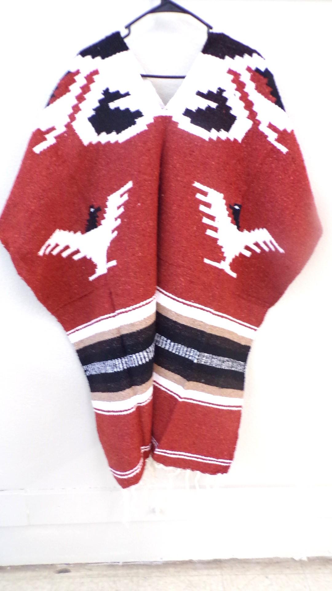New, Traditional Authentic Handmade Beautiful Aztec Indian Hooded Mexico Long Poncho as Pictured Here. Free Shipping. This one is a one size fits most people. It would look great on the guys but even nicer on our lady friends. You will be getting the poncho that is actually shown above in the pictures above, not some poncho that looks kinda looks like it or is kinda the same color as you might sometimes see elsewhere. We have many different styles & colors of ponchos to pick from in many different sizes. You may also want to check out our awesome zippered ponchos. Anything hand done can have minor imperfections, but the overall look is always quite beautiful. This would also make a great gift for a friend or a loved one. So, why ever gift something just ordinary? Favorite us now and then keep on checking back with us to see all the new items that we'll be adding. I am not the world's greatest photographer so I may not have the best pictures out there, but my prices certainly are the greatest so WHY PAY MORE?
