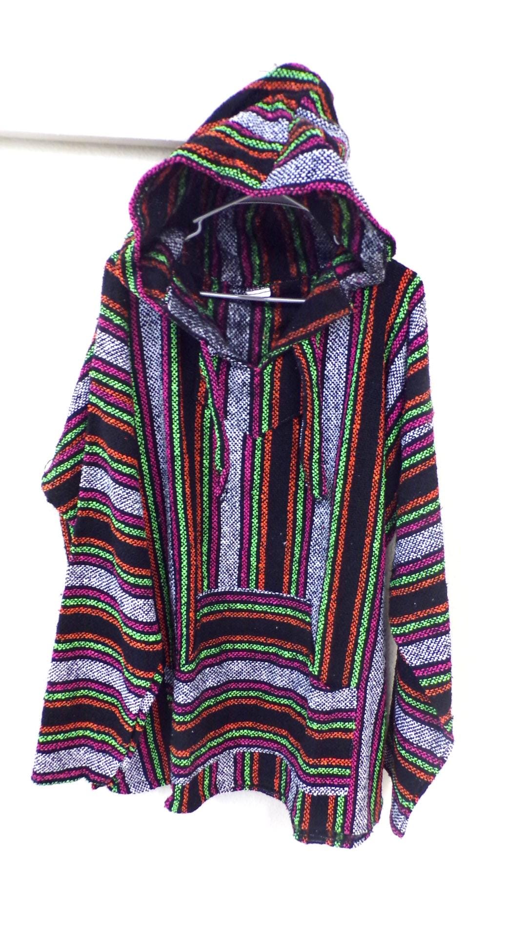 Beautiful Baja Classic Hoodie Pullover Surfer Drug Rug from Mexico! This poncho would look wonderful on guys and even much better on our lovely lady friends. You will be getting the poncho that is actually shown above in the pictures above, not some poncho that looks kinda looks like it or is kinda the same color. We will soon have many different styles & colors of ponchos to pick from in many different sizes. You may also want to check out our awesome zippered ponchos.