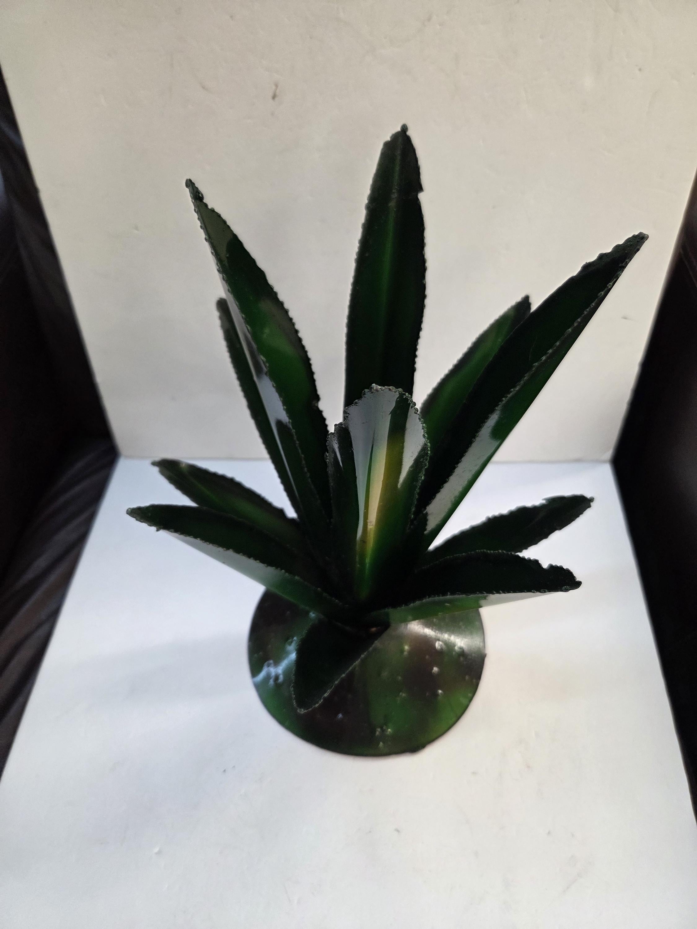 THIS ITEM. Awesome Handmade, Hand-Painted, Agave Metal Art Made by Mexico Artisans, for yard, patio, or shelf. I was impressed. I've seen a lot of metal agaves by different people, but these are some of the best I've seen done. Each one is handmade and hand-painted, rather than machine made, so sometimes there can be minor flaws, but the overall look is always very beautiful and impressive. Size is roughly 15.5" tall by 12" wide. Don't wait too long as our other ones sold out pretty quickly last time. The round metal bases are normally roughly 6" to 7" wide. This is actually handmade, not one of those put it together Chinese agaves that you might see elsewhere. This would also make a lovely present for a friend or a loved one. I am not the world's greatest photographer so I may not have the best pictures out there, but my prices certainly are the greatest so WHY PAY MORE?