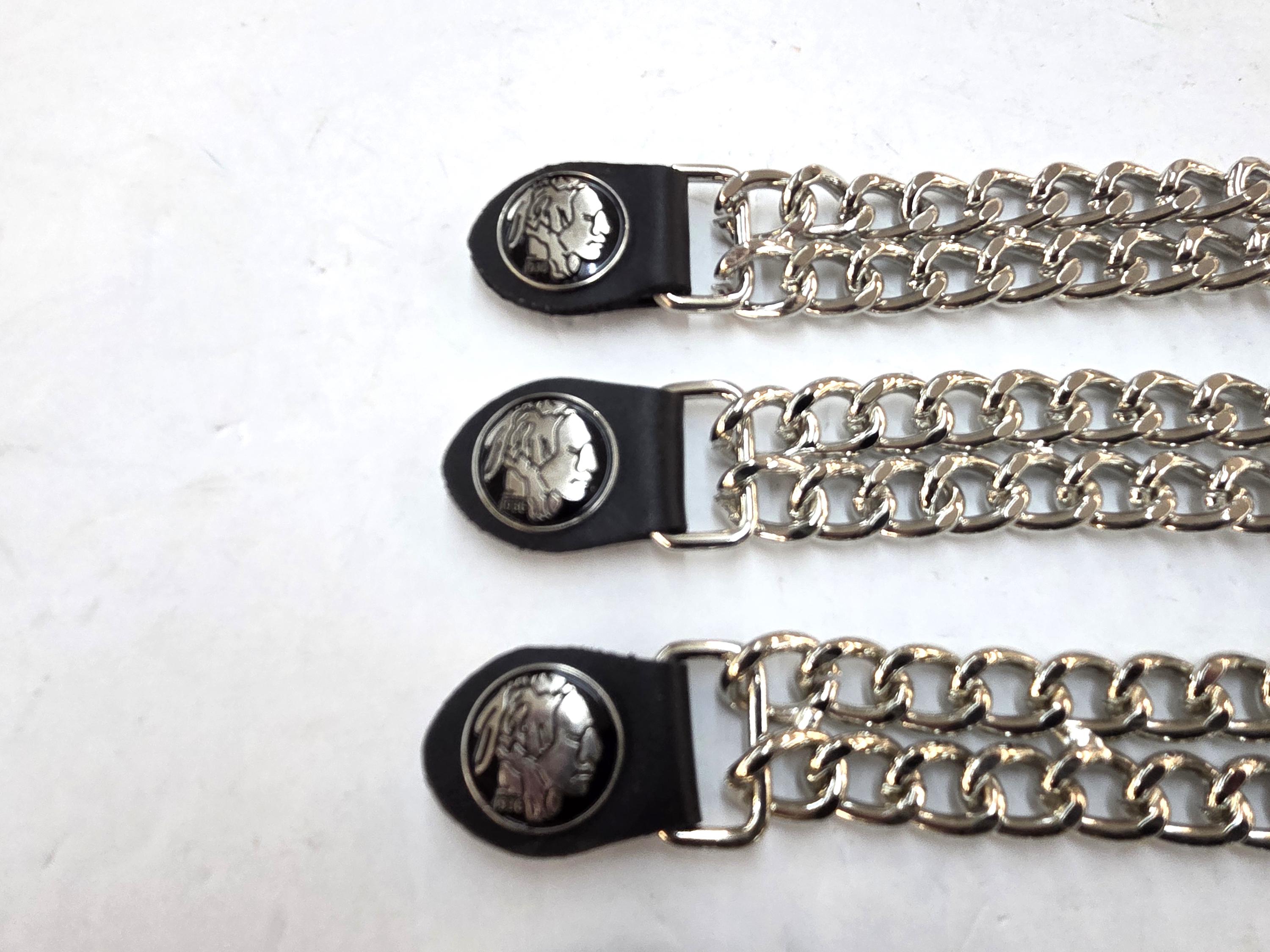 Set of 4 Indian Head Biker Vest Extenders – Snap-On Style, Free Shipping. Almost 7" long. Check our shop for other styles if desired.