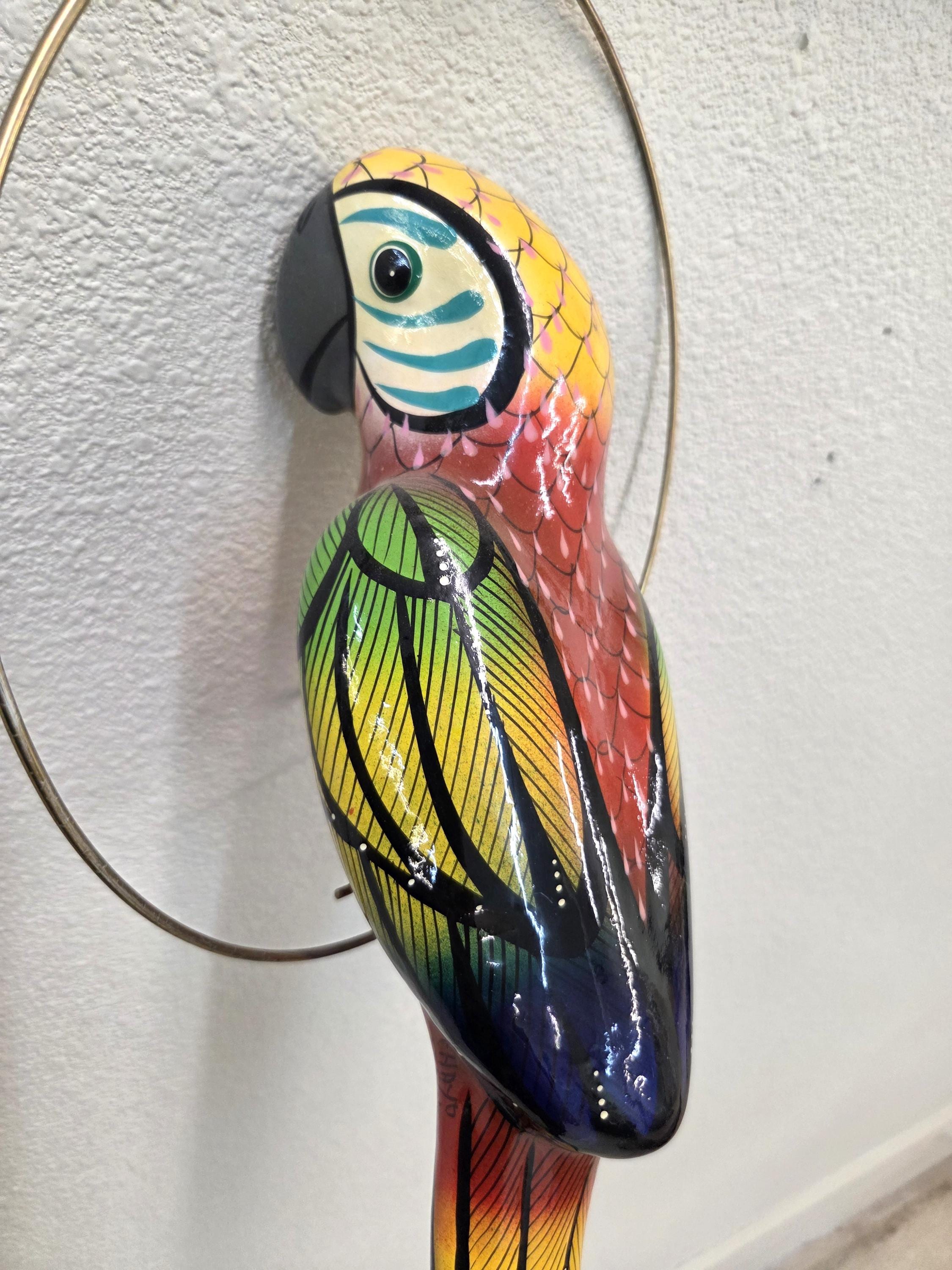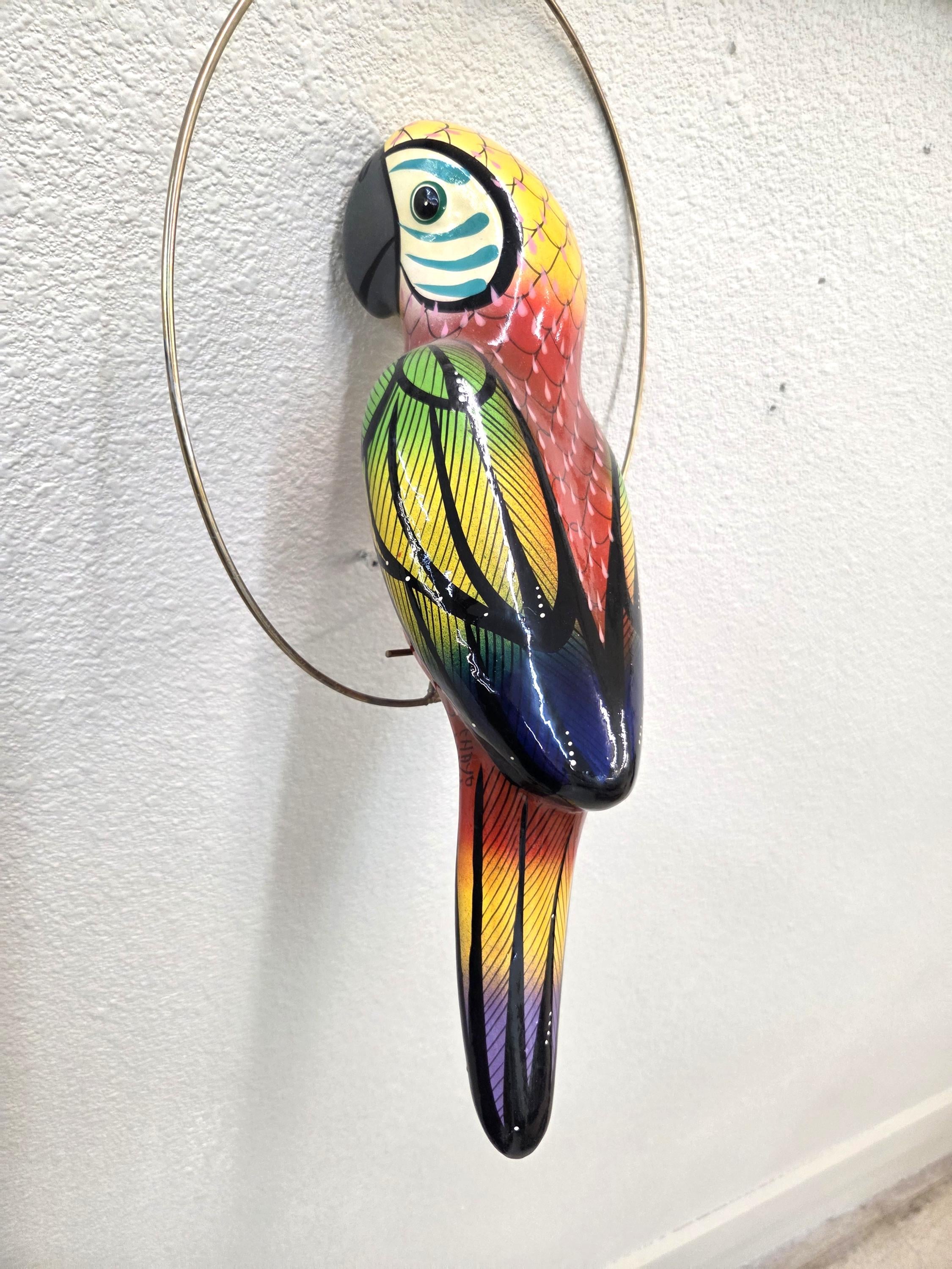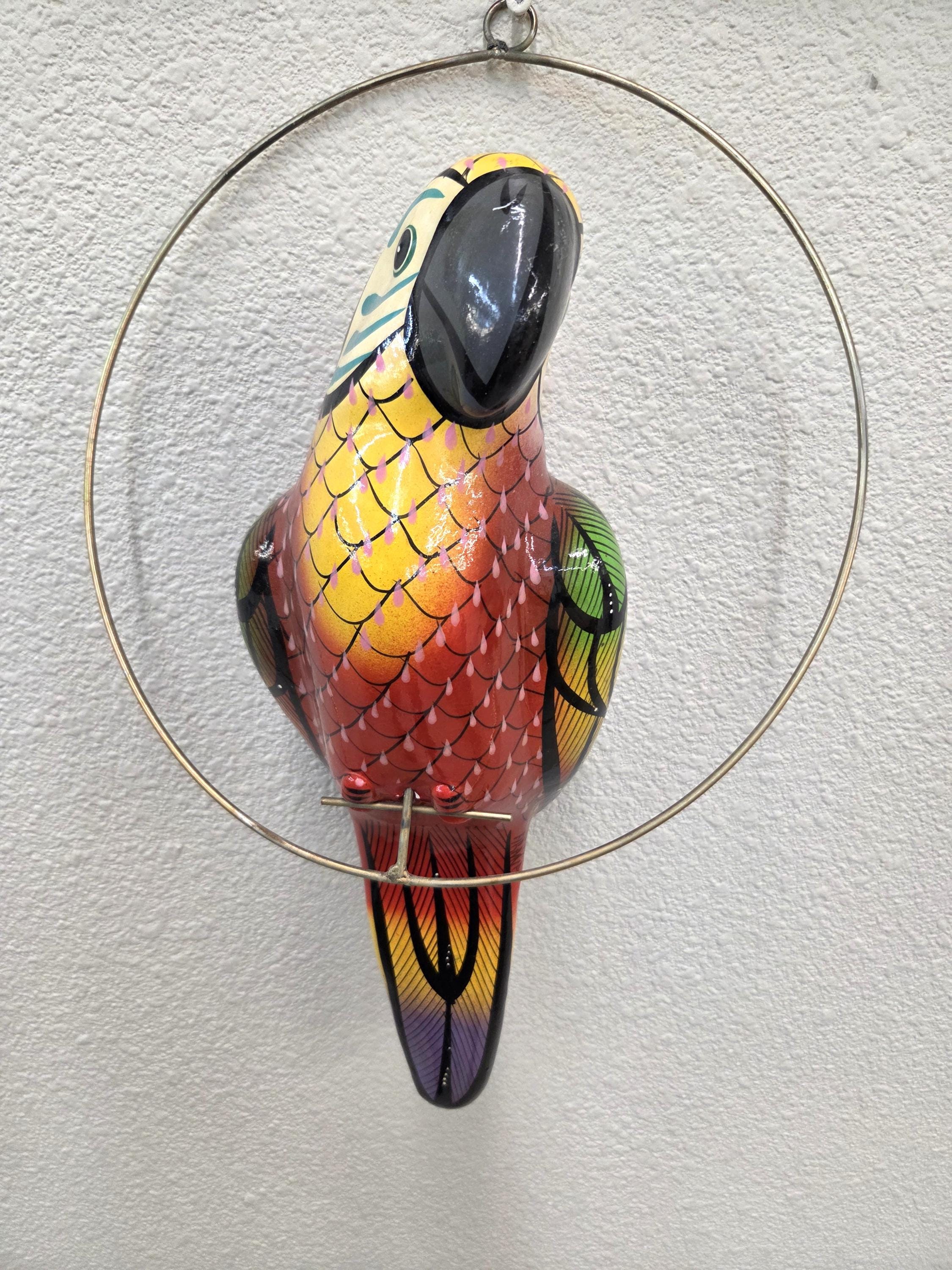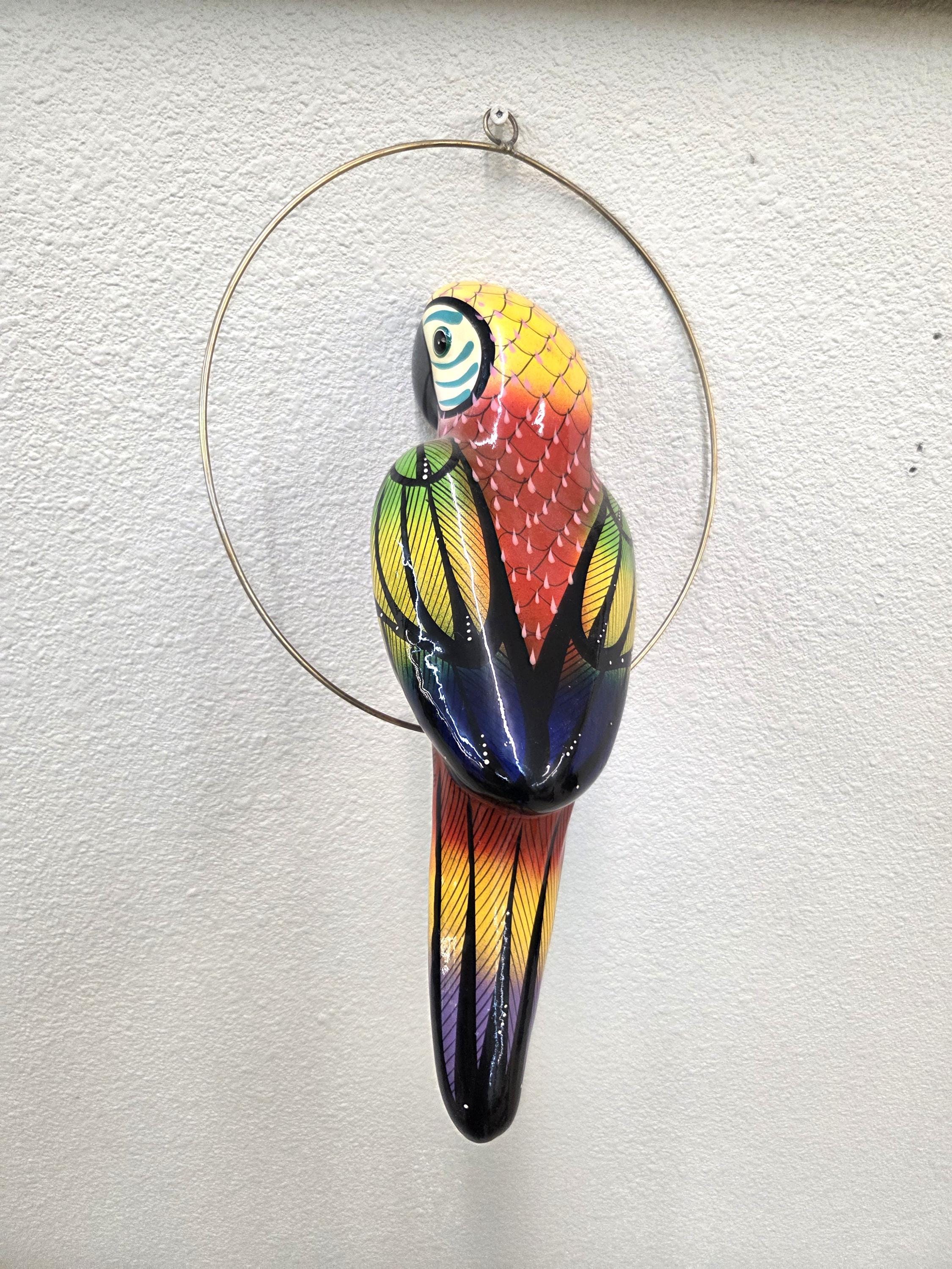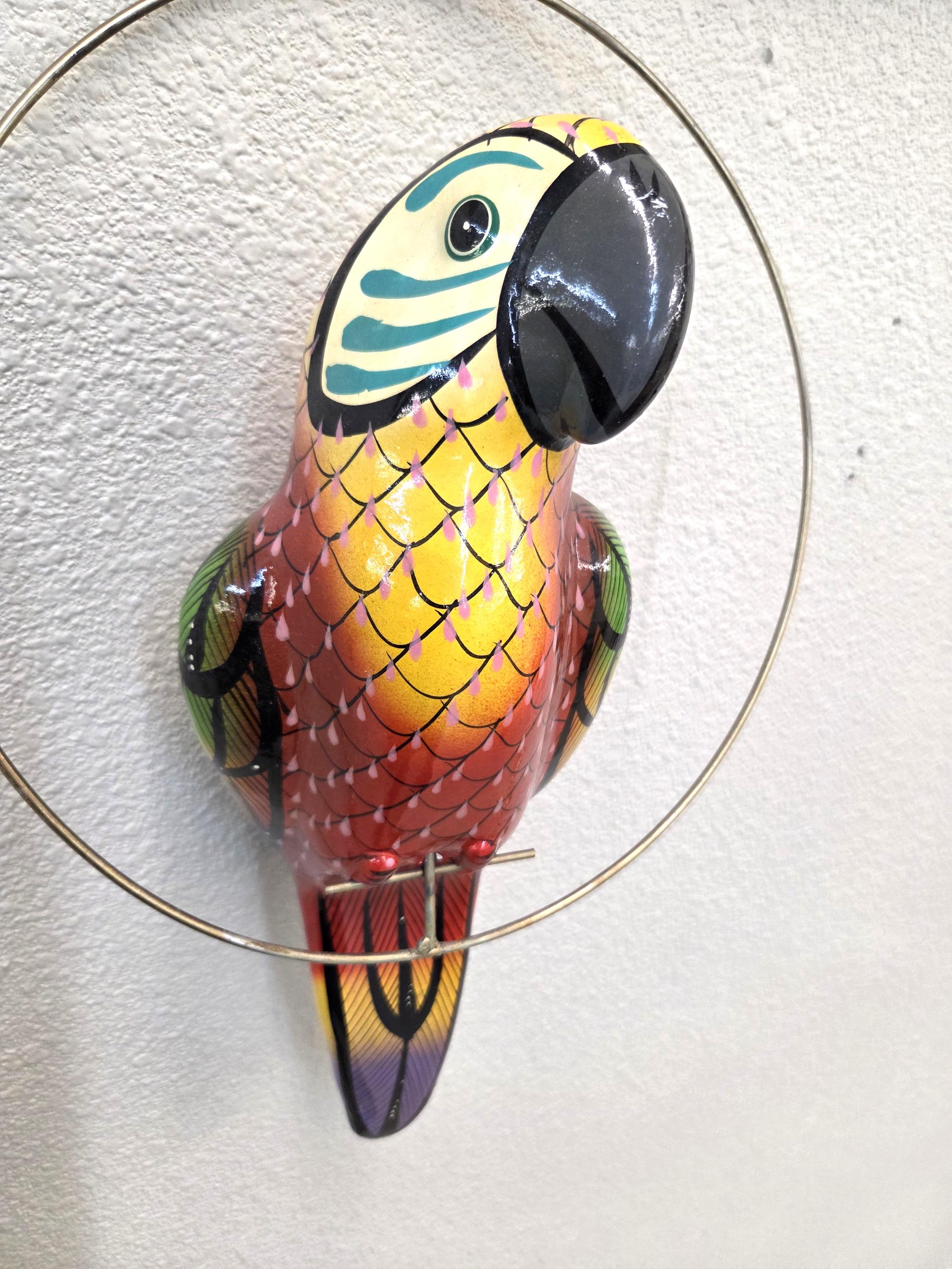Bring a burst of color and personality into your space with this handmade 14-inch ceramic hanging parrot, perched gracefully on a sturdy metal swing. Crafted in the vibrant tradition of Mexican folk art, each bird is shaped and painted by hand, giving it a lively expression and one-of-a-kind charm. Its bold colors and detailed brushwork make it a standout accent for patios, sunrooms, nurseries, or any spot that could use a joyful touch. Whether you’re a collector of folk art or simply love unique décor, this cheerful parrot adds a bright, artistic spirit to your home.