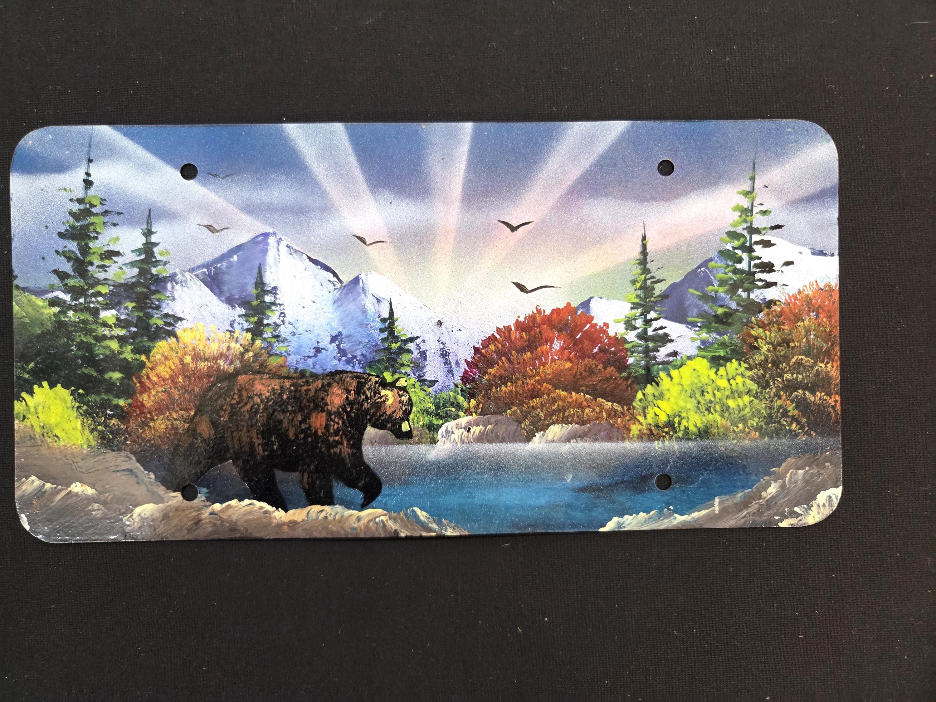 License Plate Up North Original Hand Painted with Bear, Lake & Mountain. You will be getting the one-sided painted license plate that is shown in the pictures above. You are an original so why shouldn't your license plate also reflect that with an original art piece? This license plate measures roughly 12" by 6" irregular. Anything handmade may be a little imperfect but these items always look quite beautiful. This would make a great gift for a friend or a loved one. So why ever just gift something ordinary? Shop where so many home and business decorators come to find unique often one-of-a-kind items. We will soon have many different types and styles of saws and other beautiful hand painted art items to choose from.
