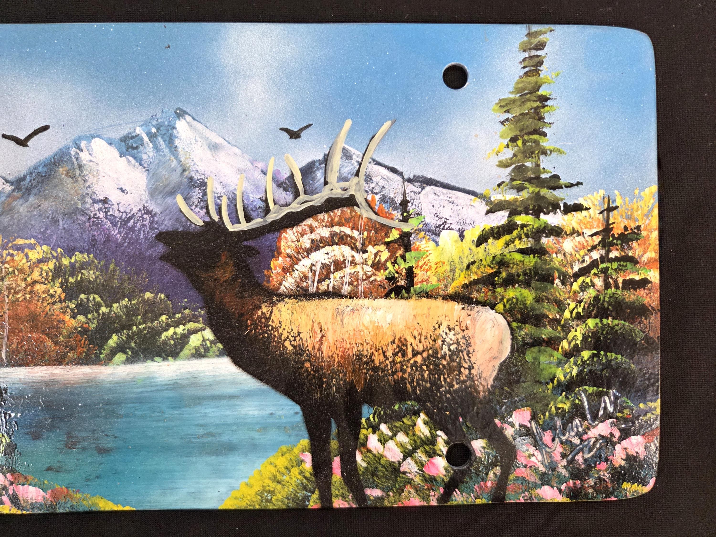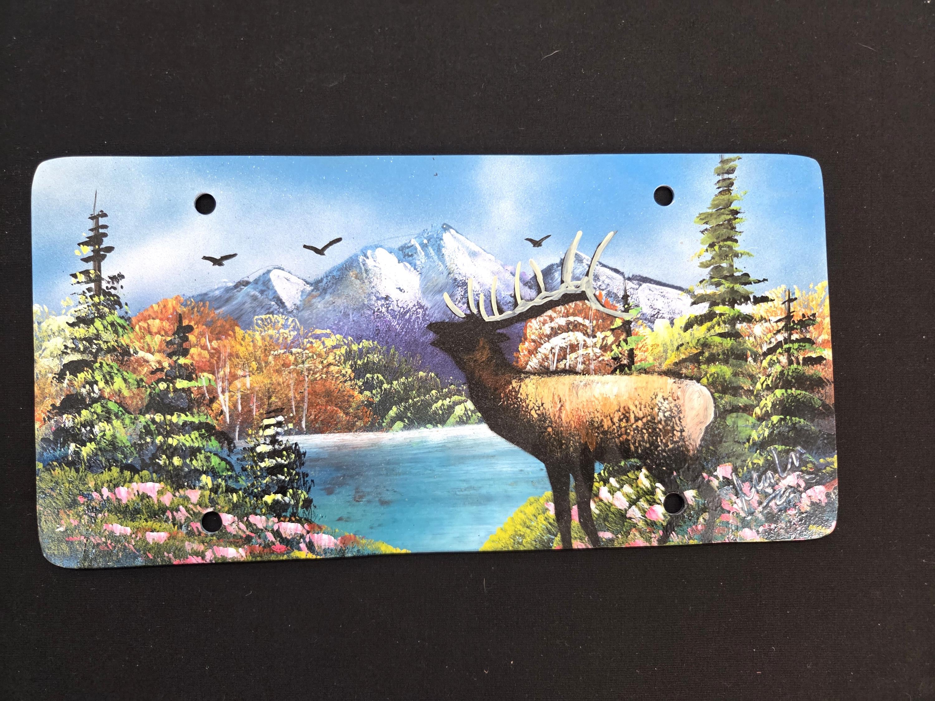 License Plate Up North Original Hand Painted with Elk, Lake & Mountains. You will be getting the one-sided painted license plate that is shown in the pictures above. You are an original so why shouldn't your license plate also reflect that with an original art piece? This license plate measures roughly 12" by 6" irregular. Anything handmade may be a little imperfect but these items always look quite beautiful. This would make a great gift for a friend or a loved one. So why ever just gift something ordinary? Shop where so many home and business decorators come to find unique often one-of-a-kind items. We will soon have many different types and styles of saws and other beautiful hand painted art items to choose from.