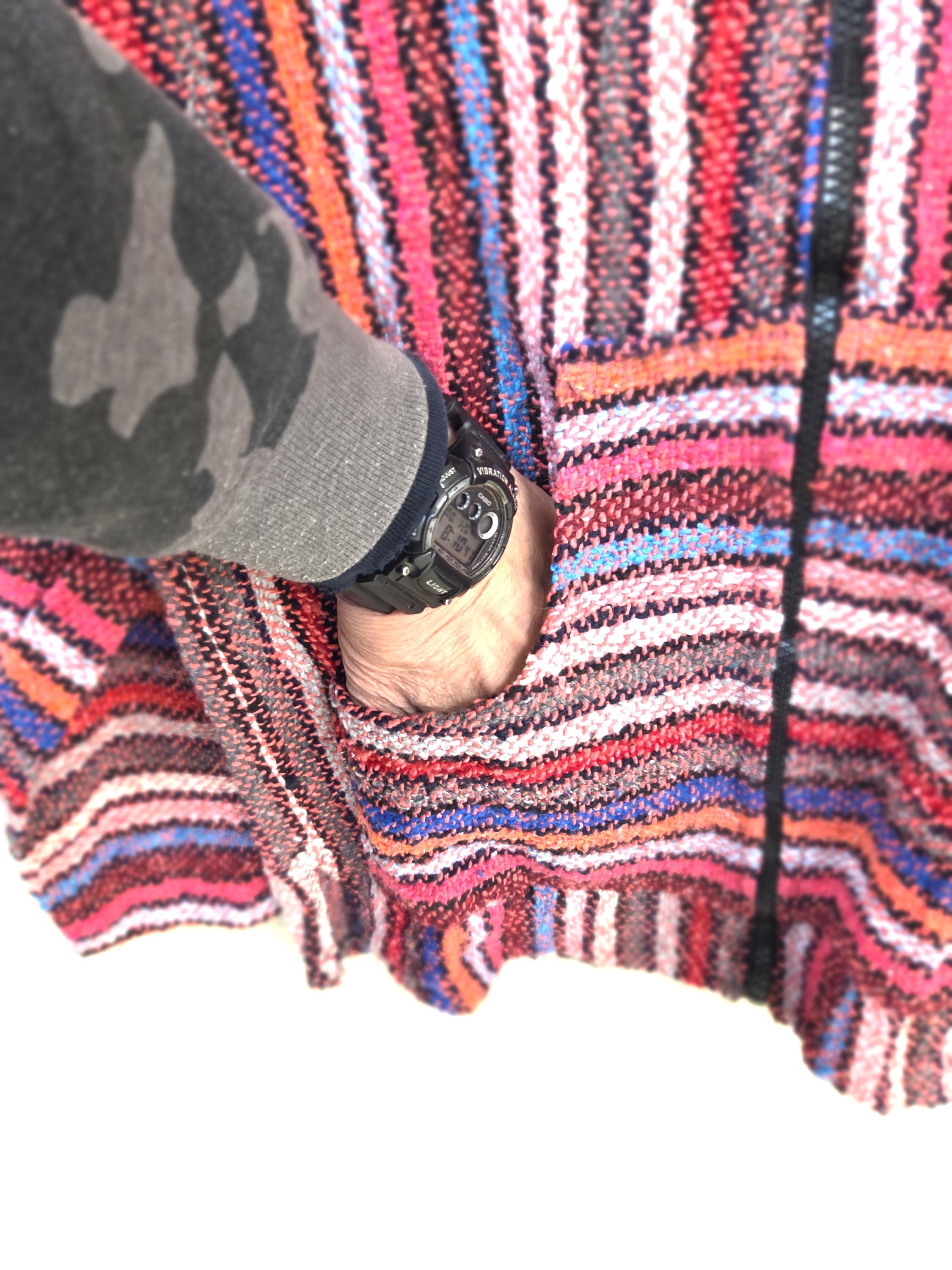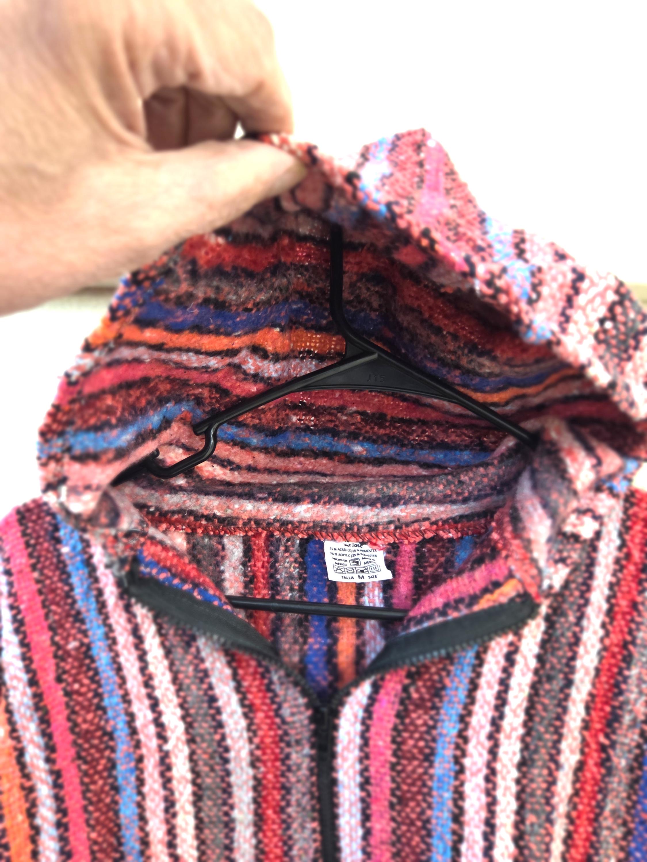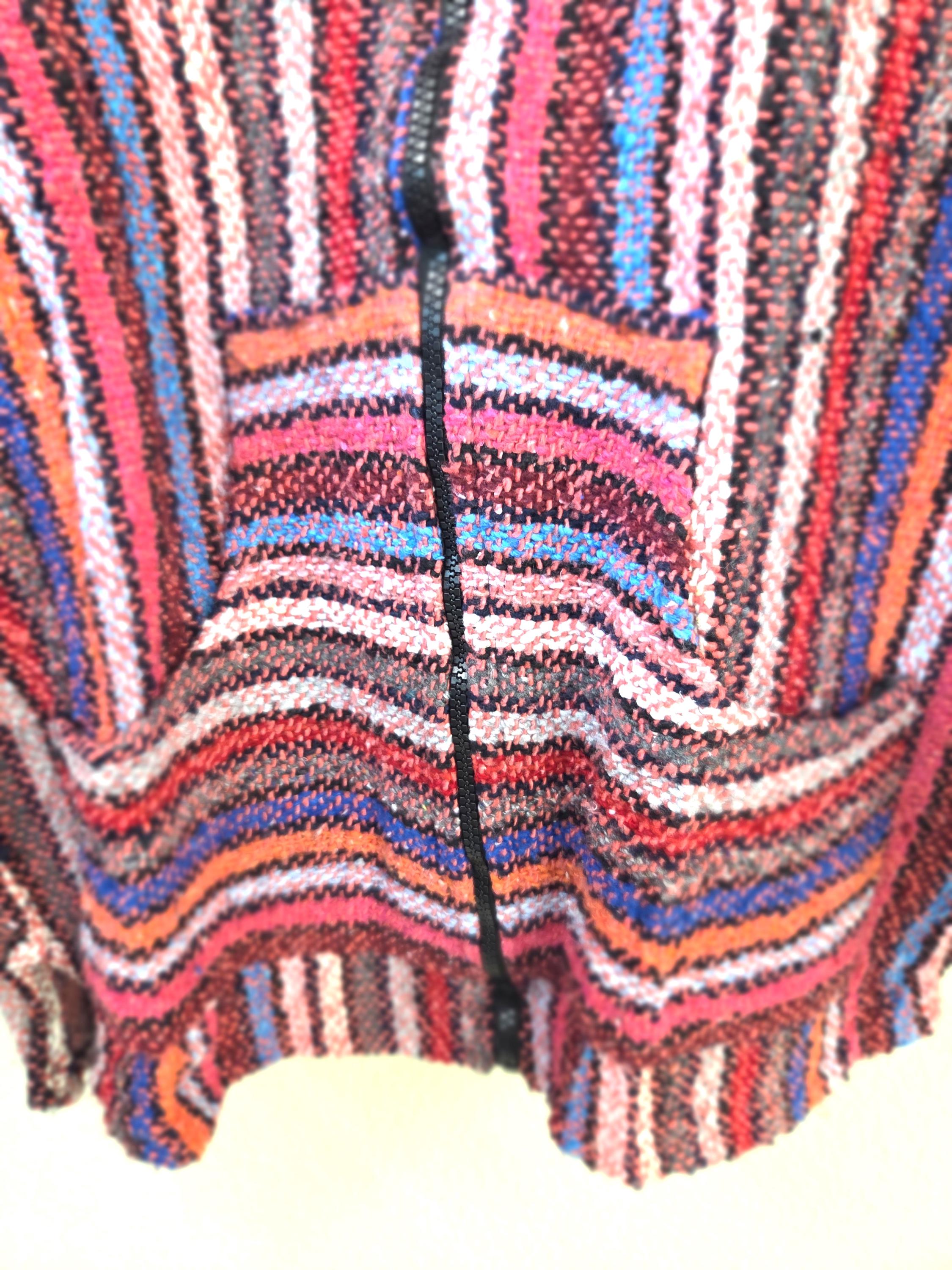 Much Preferred Zipper Unisex Baja Hooded Baja Poncho, Drug Rug, Beach Jacket, Serape from Mexico. As Pictured Here, Awesome!! This poncho would look great on the guys and even much better on our lovely lady friends. Has a nice hand warmer pocket in front. You will be getting the poncho that is actually shown above in the pictures above, not some poncho that looks kinda looks like it or is kinda the same color as you might sometimes see elsewhere. We will soon have many different styles & colors of ponchos to pick from in many different sizes. You may also want to check out our awesome pullover ponchos. This would also make a great gift for a friend or a loved one. So, why ever gift something just ordinary? Favorite us now and then keep on checking back with us to see all the new items that we'll be adding. I am not the world's greatest photographer so I may not have the best pictures out there, but my prices certainly are the greatest so WHY PAY MORE?