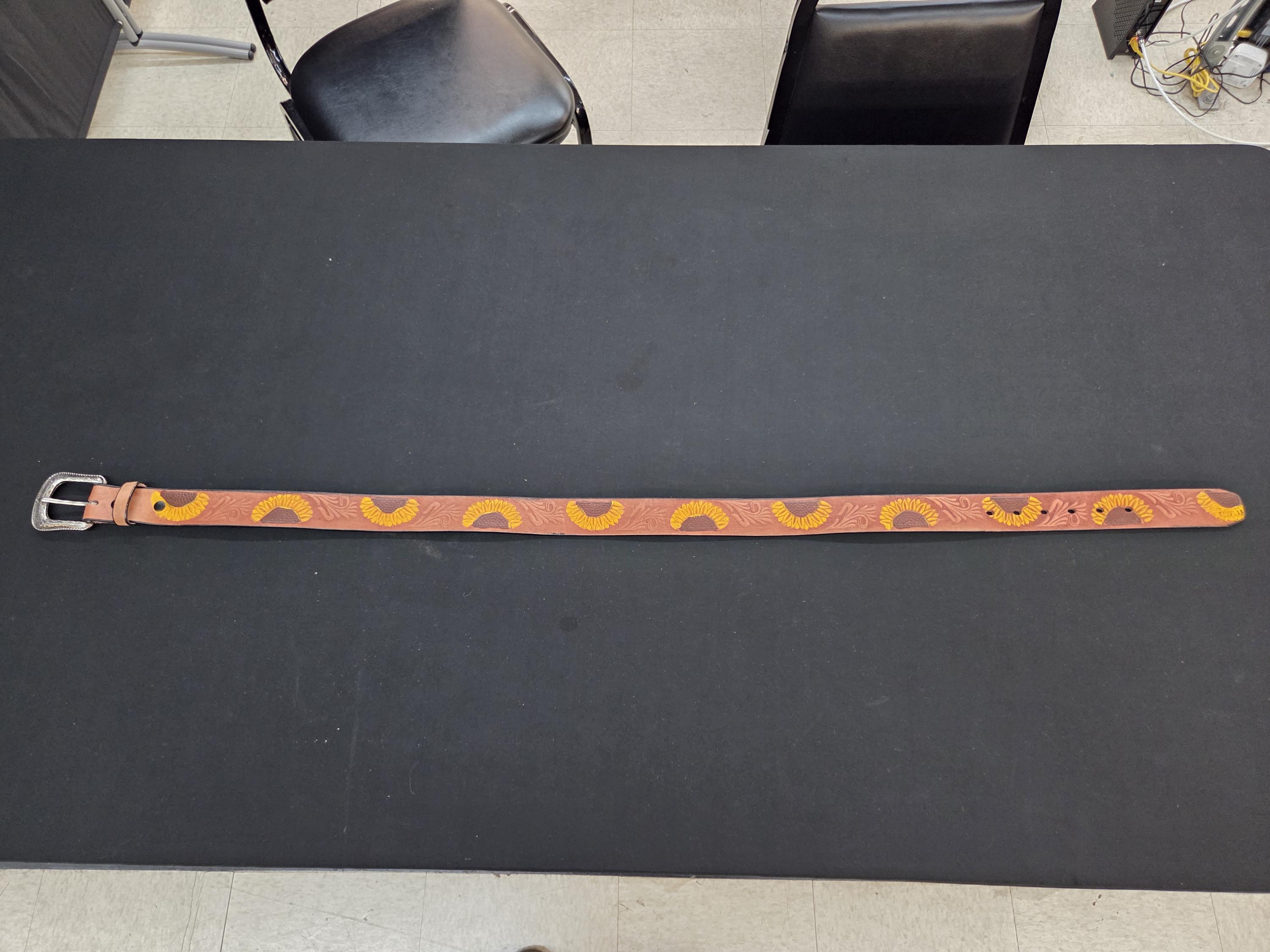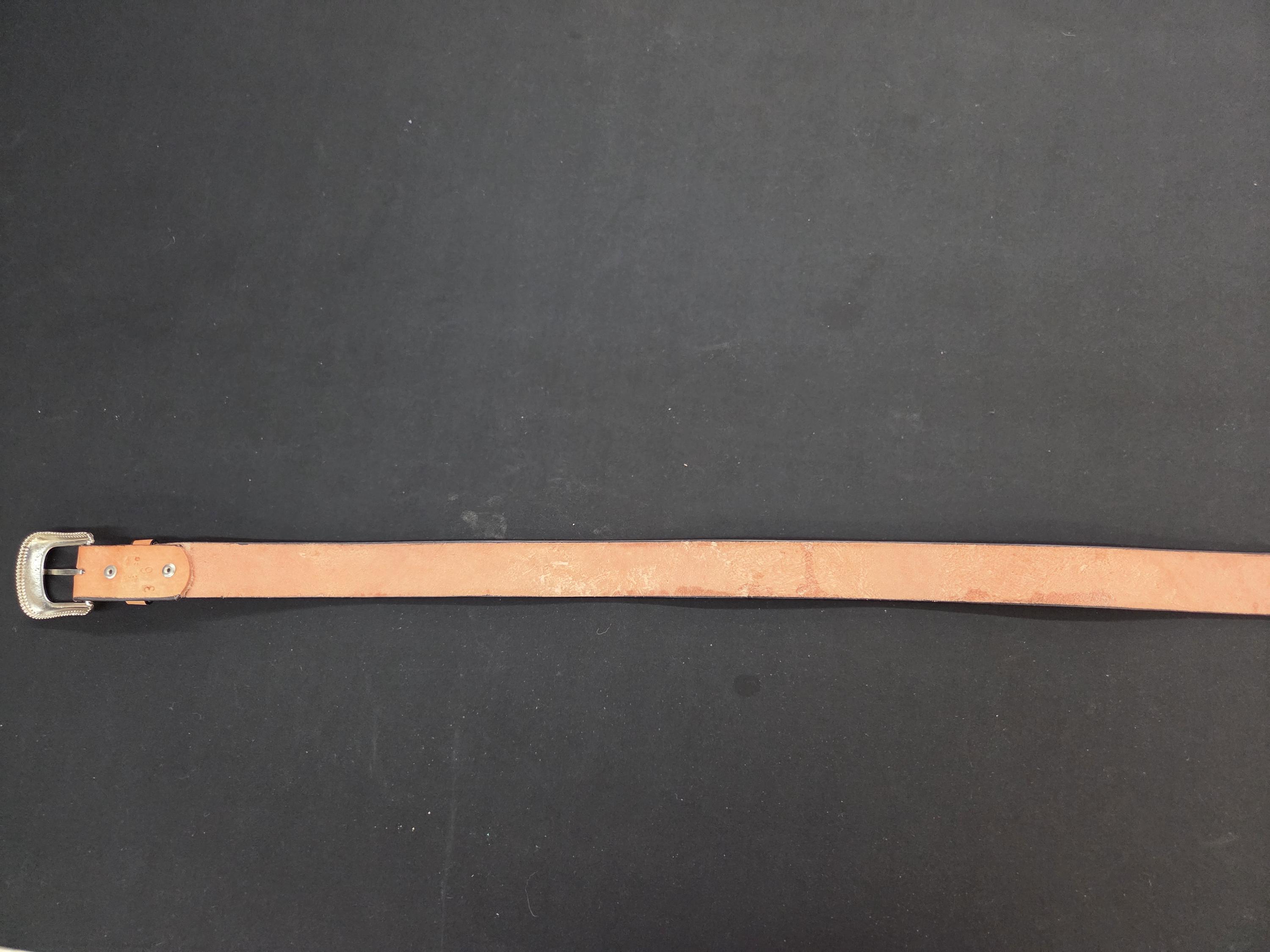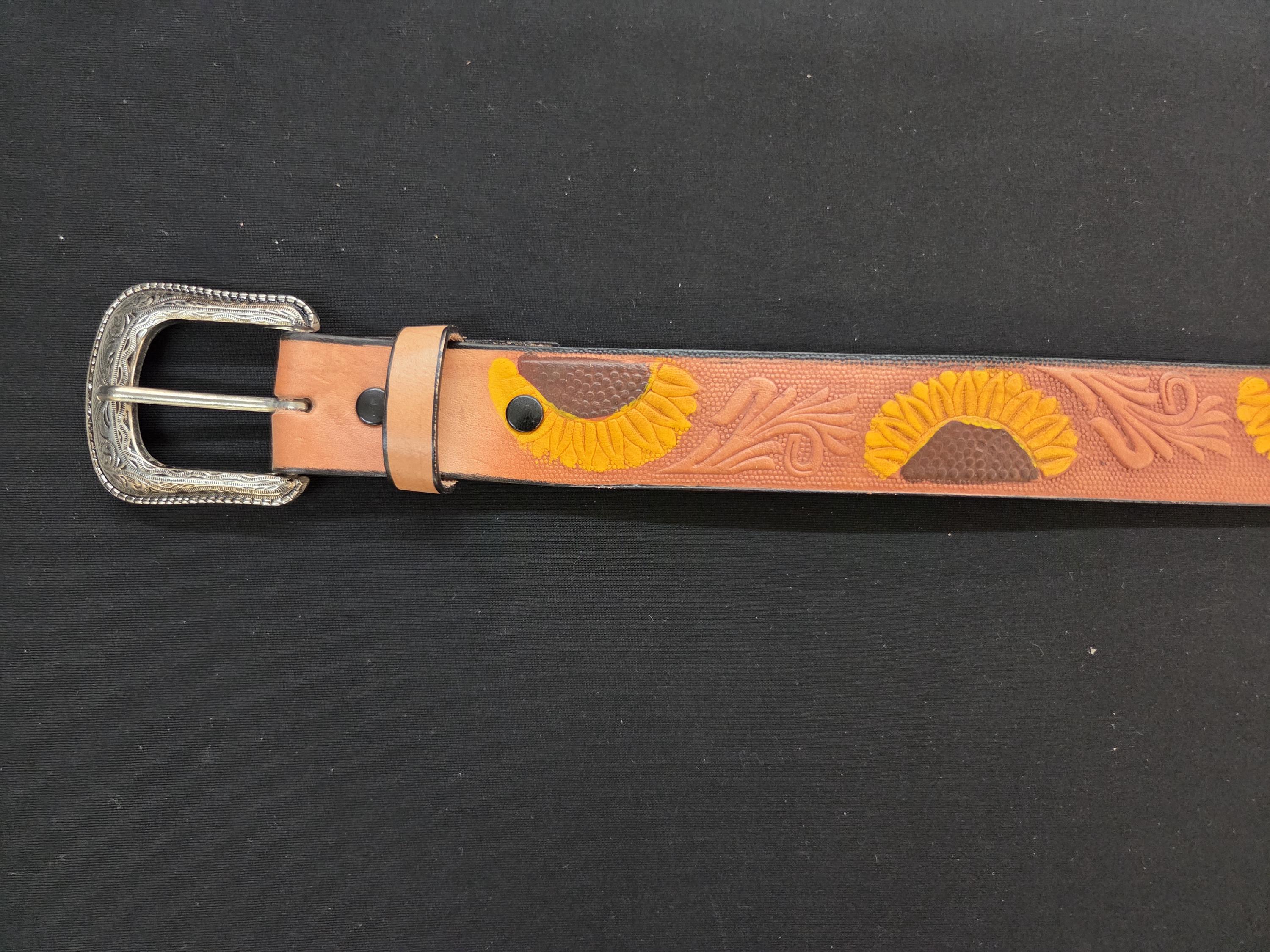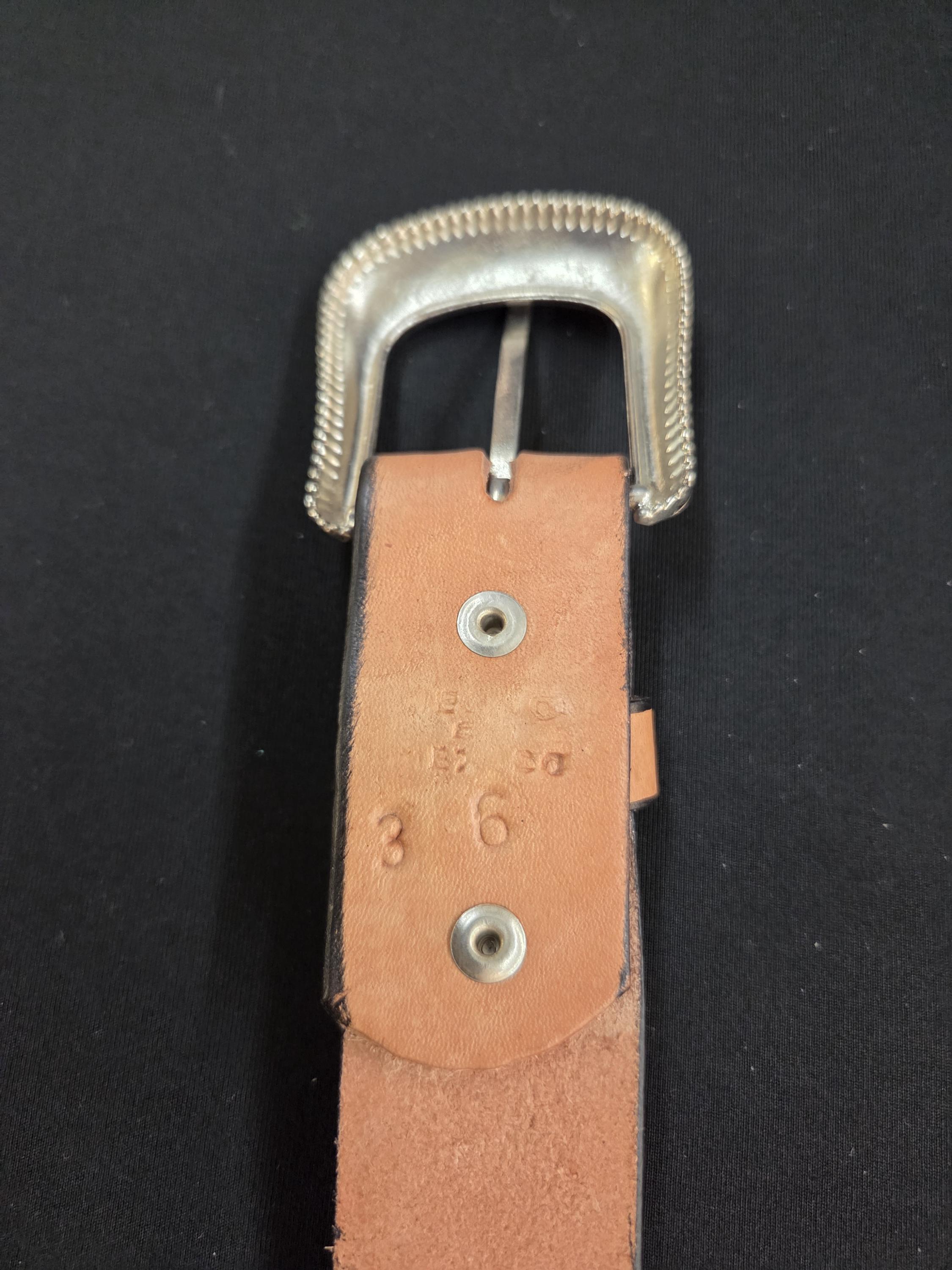 🌵 Size 36 Awesome Tooled Mexican Leather Belt – Detachable Buckle – Western Style Belt. Add a bold touch of Western craftsmanship to your wardrobe with this authentic Mexican leather belt. We also have other styles available. Made from top‑quality genuine leather, this belt is built to last and designed to stand out. All belts are hand worked so there may be very minor flaws, but overall look is always quite awesome. To see more styles that fit you in my shop just put your size desired in the search box. ⭐ Key Features * Size 36 – as marked by the maker on the backside. * Detachable buckle so you can easily swap in your own favorite buckle if desired. * Authentic tooled leather with excellent durability and feel. * Exact belt shown in photos — you receive the actual item pictured. * Measures approximately 1.5" wide and 44.45" long including the buckle.