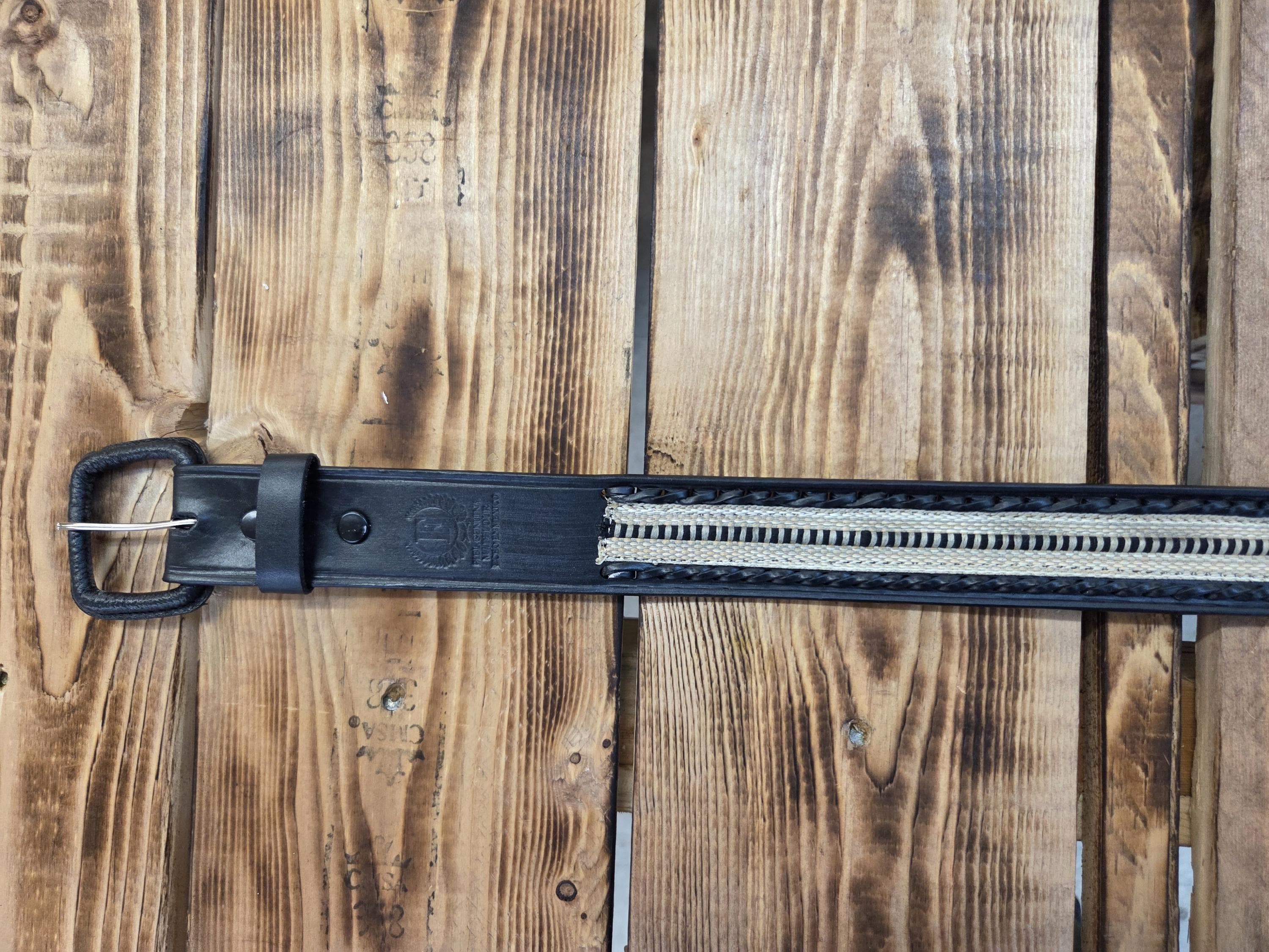 đ”Size 36 Awesome Mexican Leather Belt with Cloth Decorationâ Detachable Buckle. Add a bold touch of Western craftsmanship to your wardrobe with this authentic Mexican leather belt. We also have other styles available. Made from topâquality genuine leather, this belt is built to last and designed to stand out. All belts are hand worked so there may be very minor flaws, but overall look is always quite awesome. To see more styles that fit you in my shop just put your size desired in the search box. â Key Features * Size 36 â as marked by the maker on the backside. * Detachable buckle so you can easily swap in your own favorite buckle if desired. * Authentic leather with excellent durability and feel. * Exact belt shown in photos â you receive the actual item pictured. * Measures approximately 1.5" wide and 44" long including the buckle.