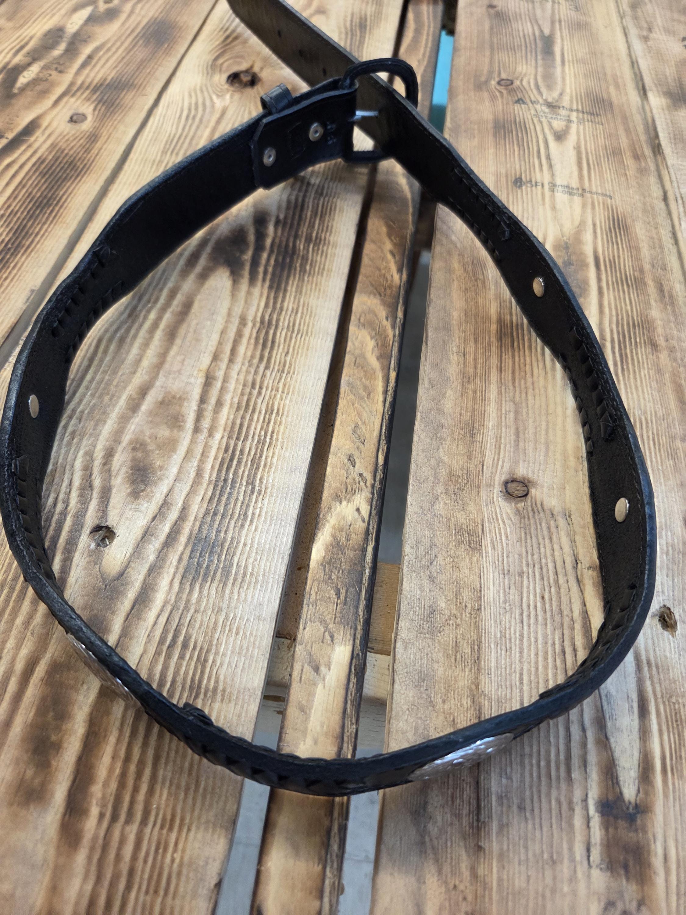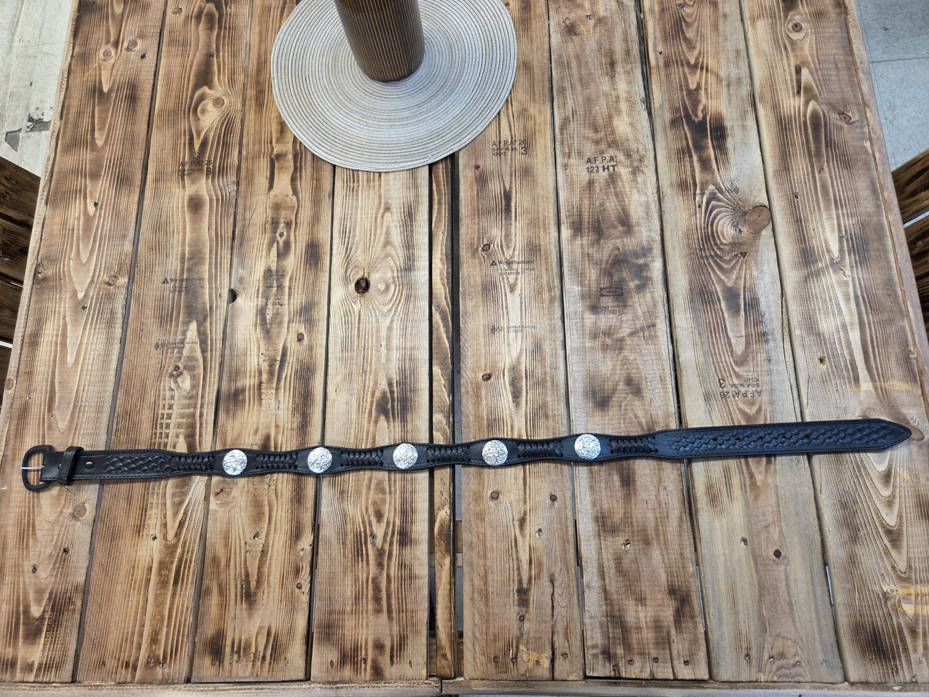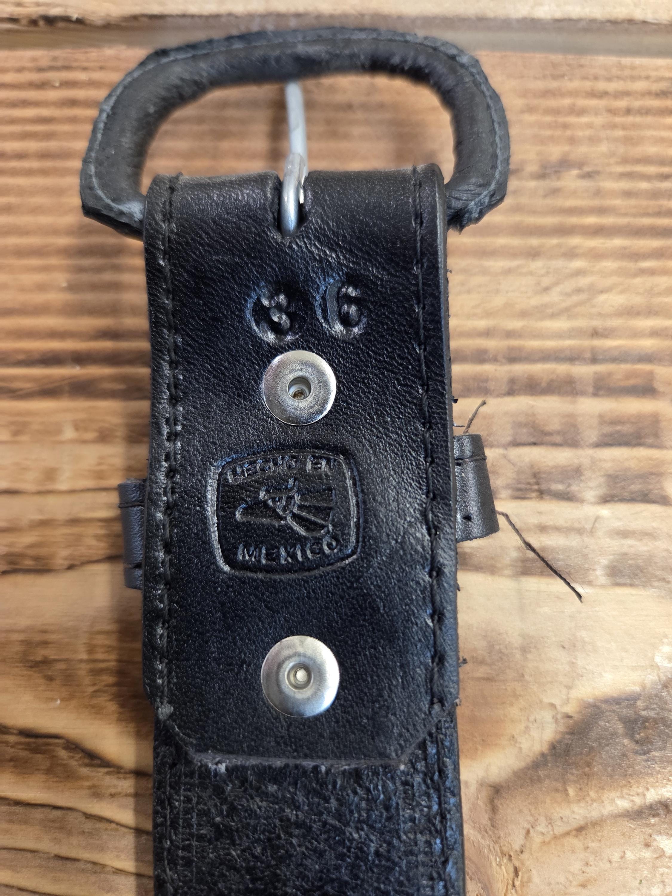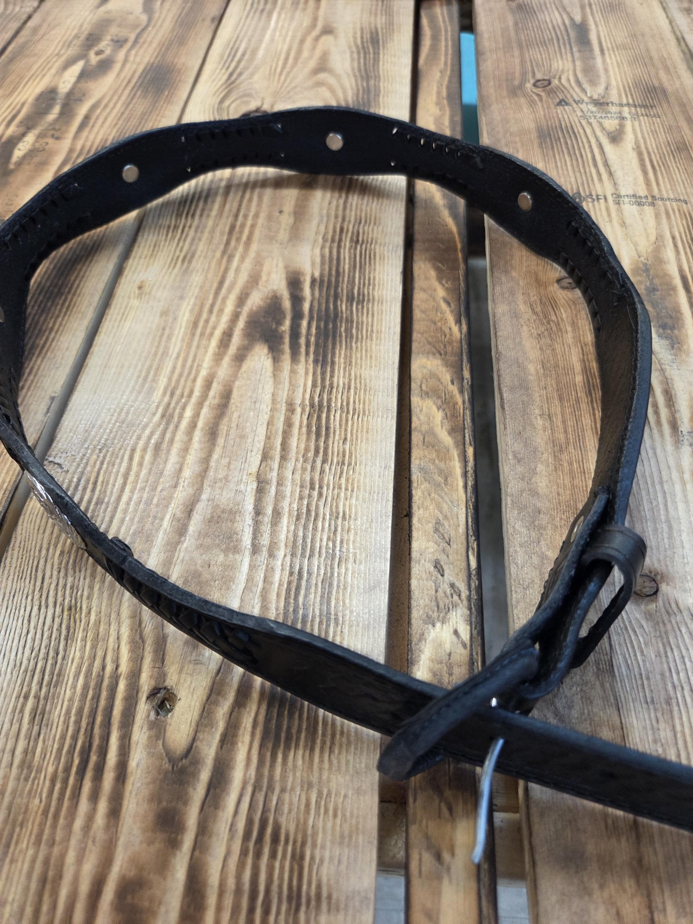 🌵 Mexican Size 36 Tooled Leather Belt with Detachable Buckle – Handmade Western Style Belt Add a bold touch of Western craftsmanship to your wardrobe with this authentic Mexican leather belt. We also have other styles available. Made from top‑quality genuine leather, this belt is built to last and designed to stand out. All belts are hand worked so there may be very minor flaws, but overall look is always quite awesome. To see more styles that fit you in my shop just put your size desired in the search box. ⭐ Key Features * Size 36 – as marked by the maker on the backside. * Detachable buckle so you can easily swap in your own favorite buckle if desired. * Authentic leather with excellent durability and feel with metal decorations added. * Exact belt shown in photos — you receive the actual item pictured. * Measures up to 1.5" wide and 43" long including the buckle.