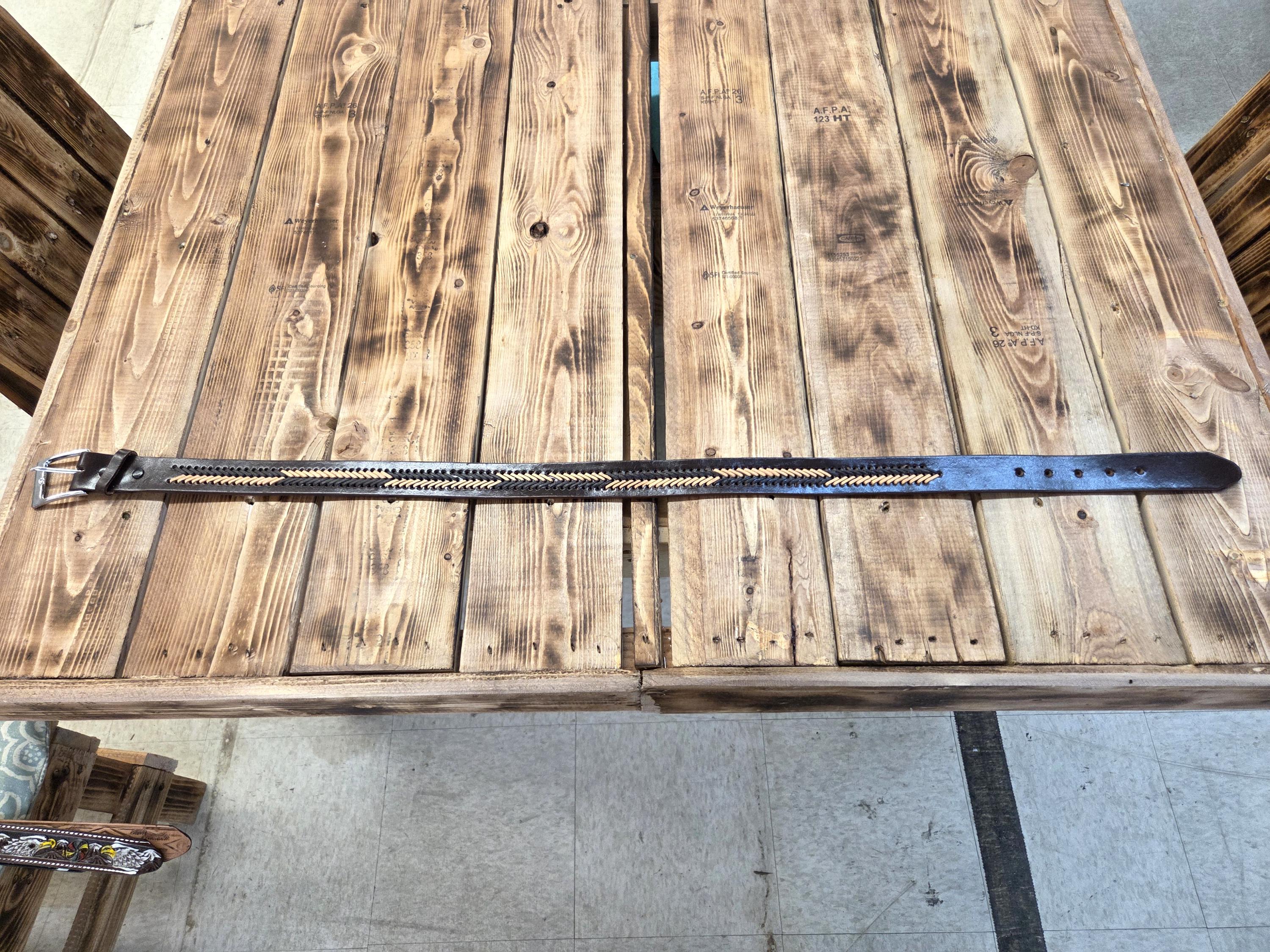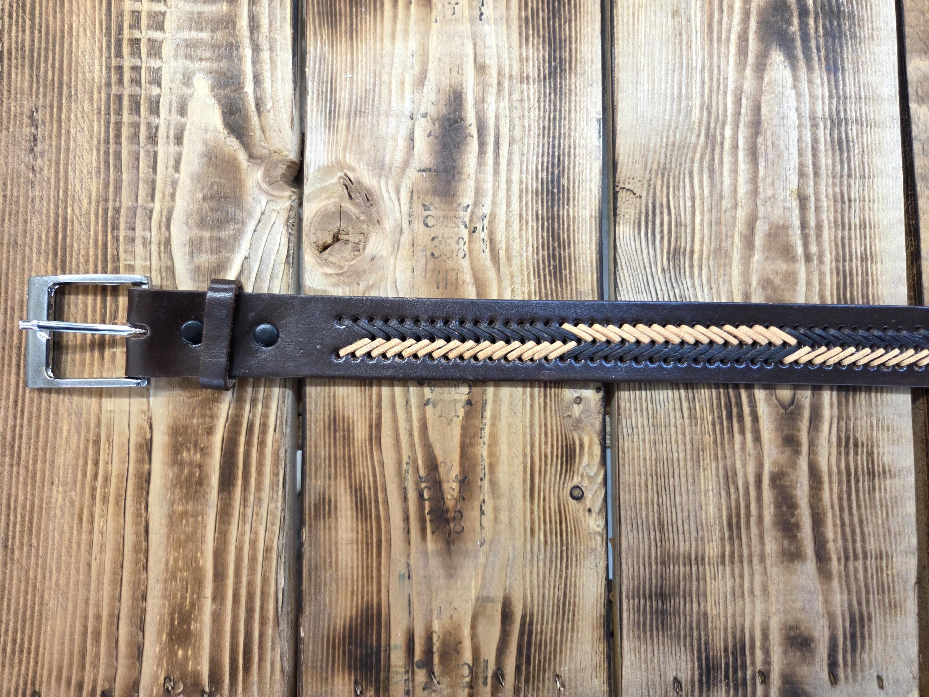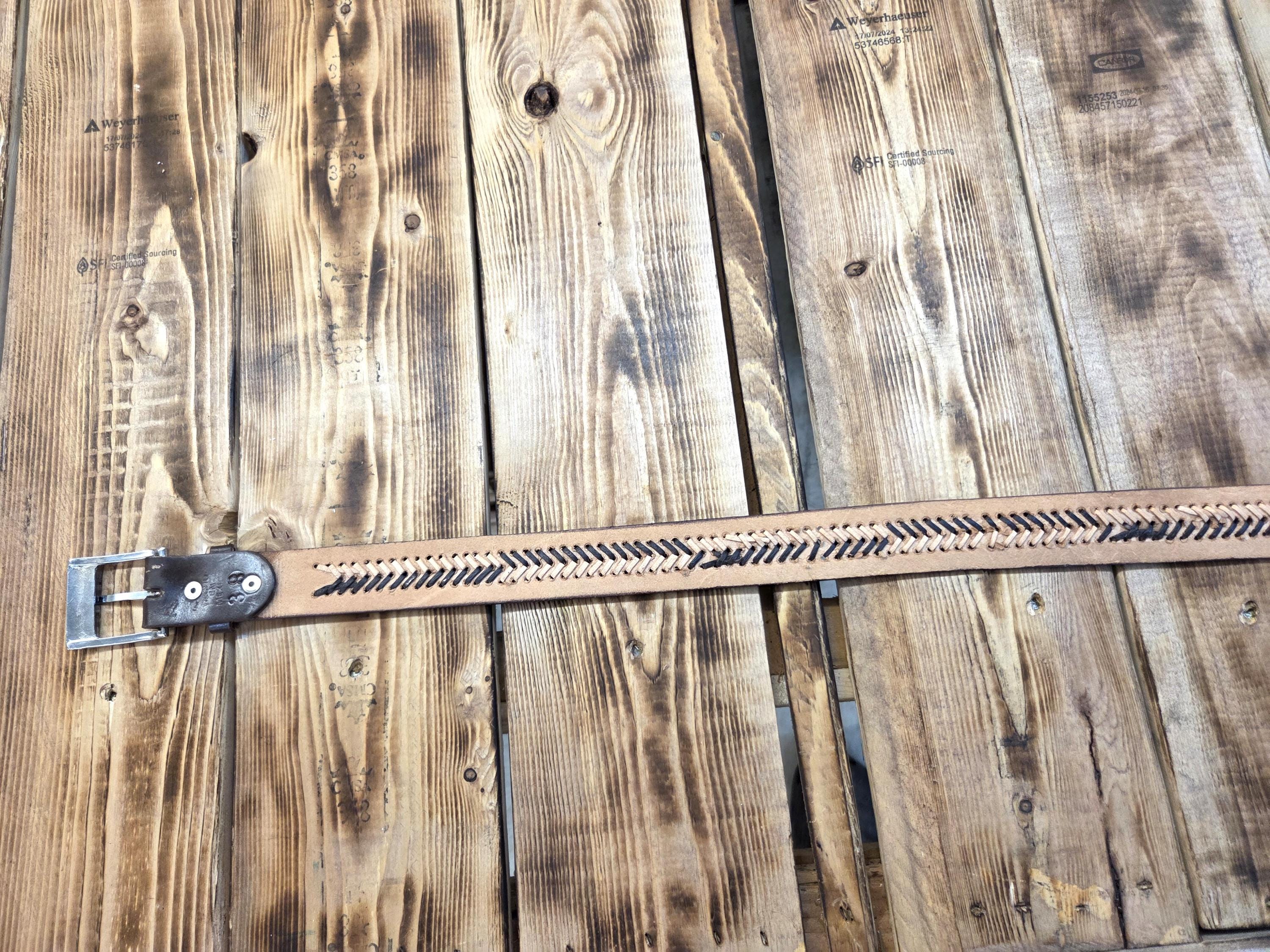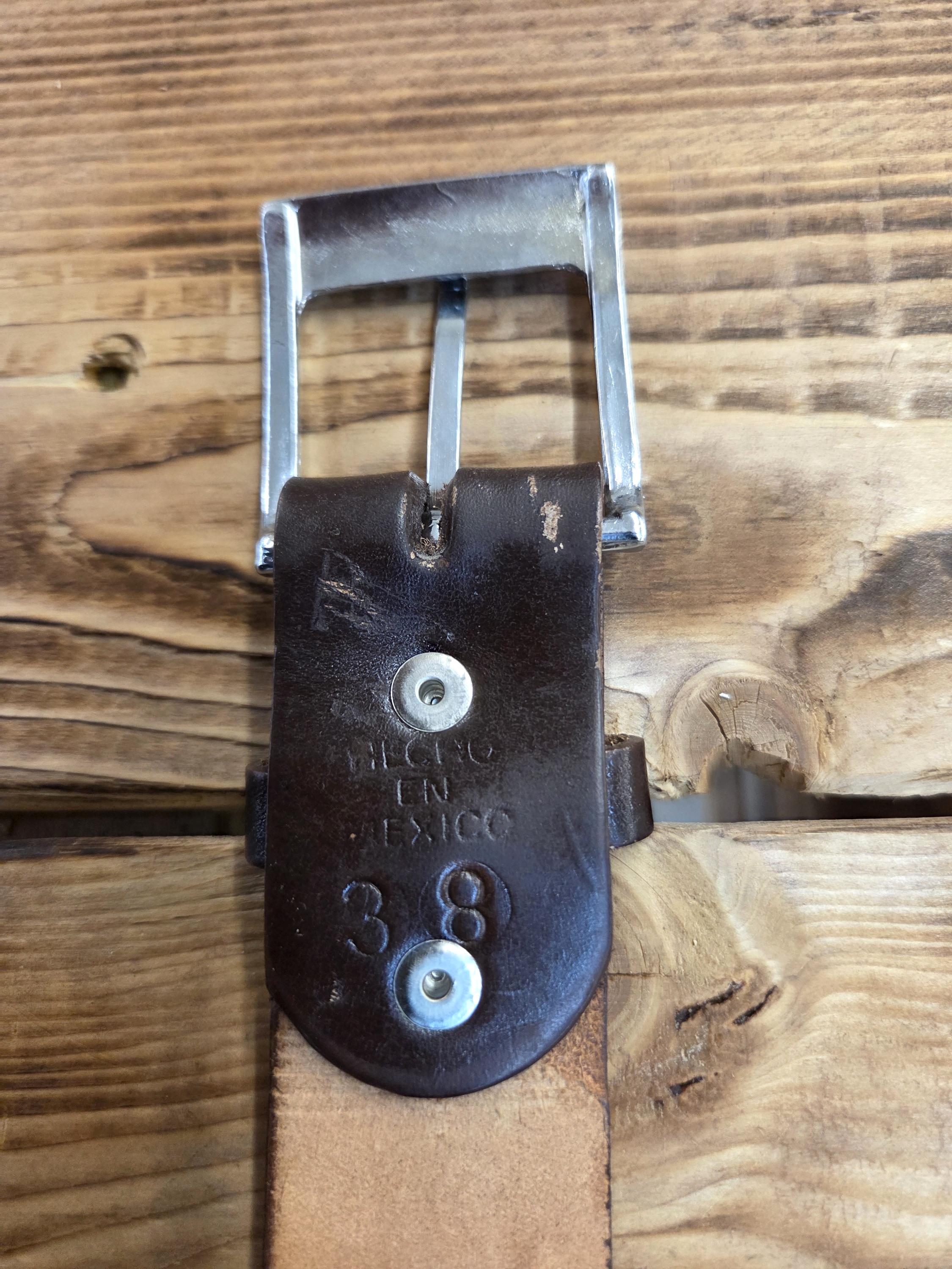 🌵 Size 38 Mexican Leather Belt – Western Style, Detachable Buckle Add a bold touch of Western craftsmanship to your wardrobe with this authentic Mexican leather belt. We also have other styles available. Made from top‑quality genuine leather, this belt is built to last and designed to stand out. All belts are hand worked so there may be very minor flaws, but overall look is always quite awesome. To see more styles that fit you in my shop just put your size desired in the search box. ⭐ Key Features * Size 38 – as marked by the maker on the backside. * Detachable buckle so you can easily swap in your own favorite buckle if desired. * Authentic leather with excellent durability and feel. * Exact belt shown in photos — you receive the actual item pictured. * Measures approximately 1.5" wide and 43" long including the buckle.