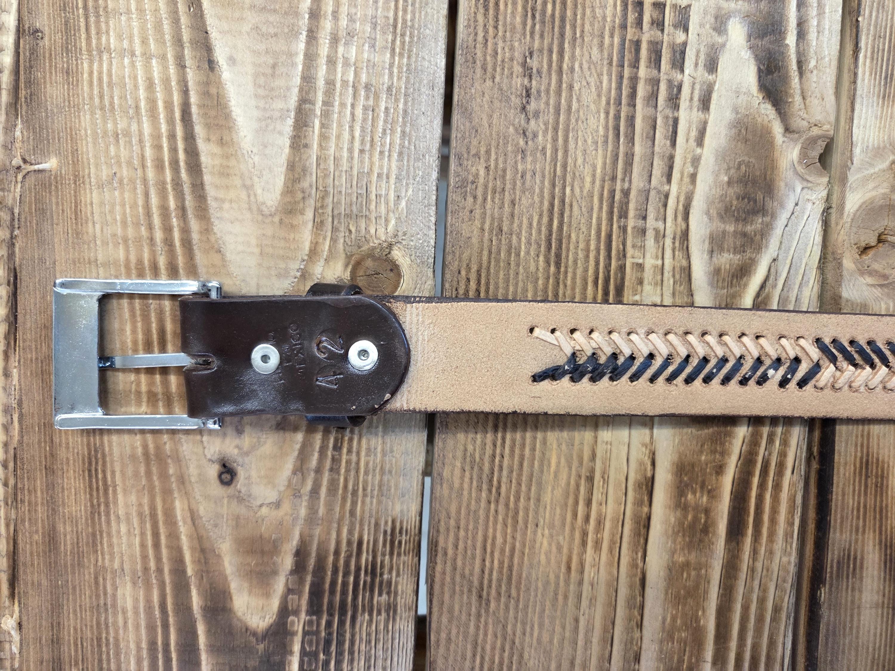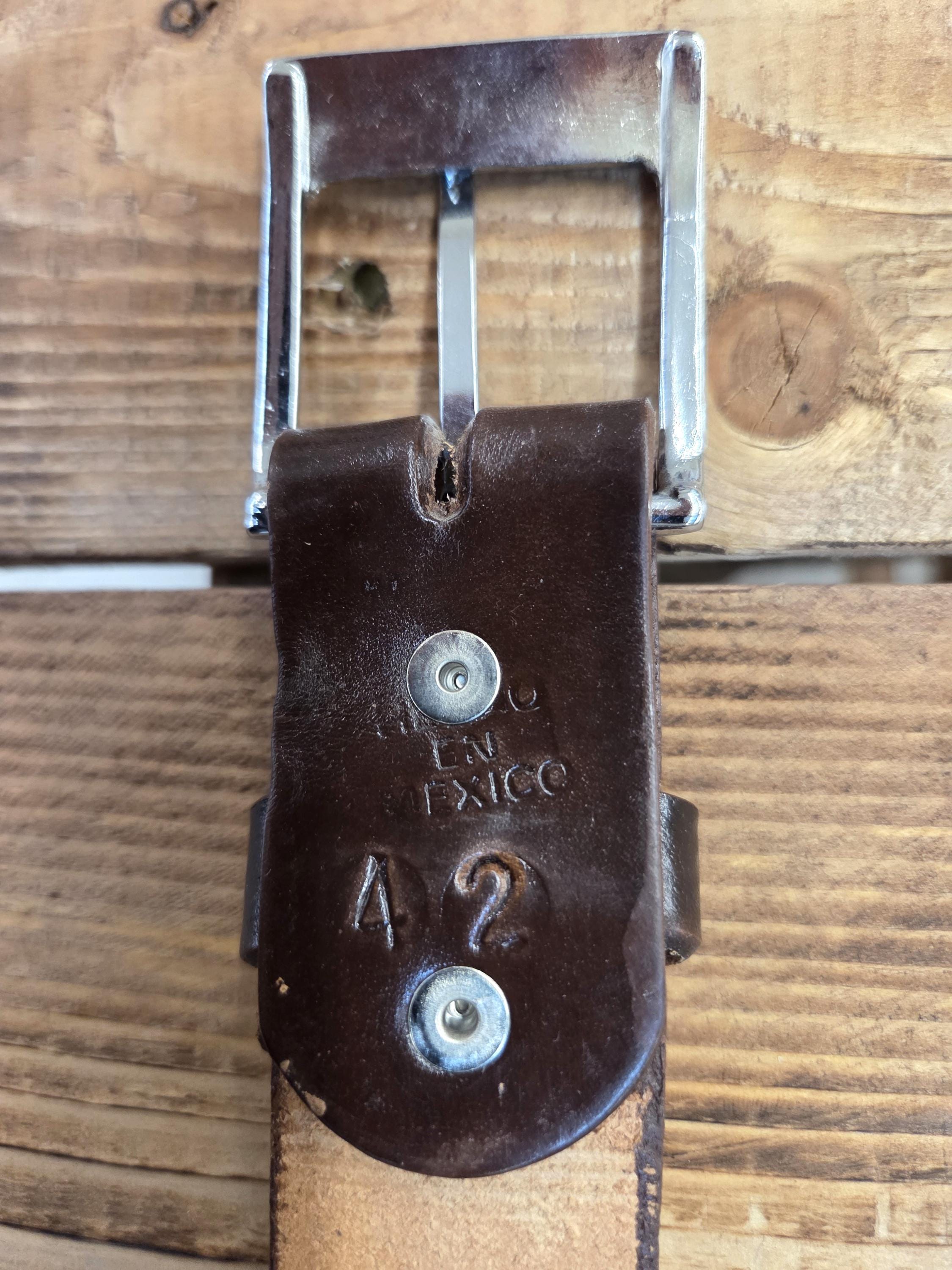 🌵 Size 42 Mexican Leather Belt – Western Style, Detachable Buckle Add a bold touch of Western craftsmanship to your wardrobe with this authentic Mexican leather belt. We also have other styles available. Made from top‑quality genuine leather, this belt is built to last and designed to stand out. All belts are hand worked so there may be very minor flaws, but overall look is always quite awesome. To see more styles that fit you in my shop just put your size desired in the search box. ⭐ Key Features * Size 42 – as marked by the maker on the backside. * Detachable buckle so you can easily swap in your own favorite buckle if desired. * Authentic leather with excellent durability and feel. * Exact belt shown in photos — you receive the actual item pictured. * Measures approximately 1.5" wide and 49" long including the buckle.