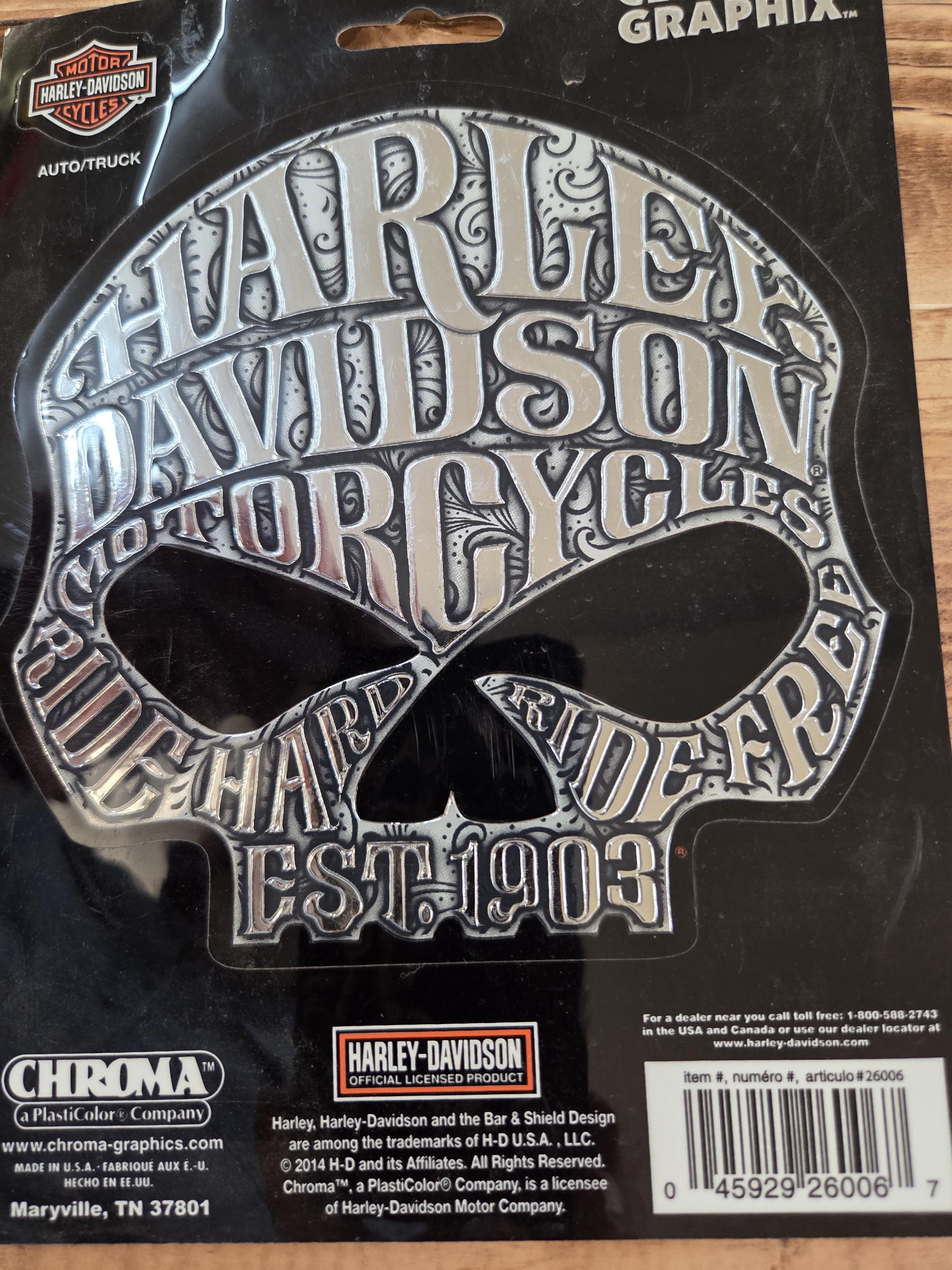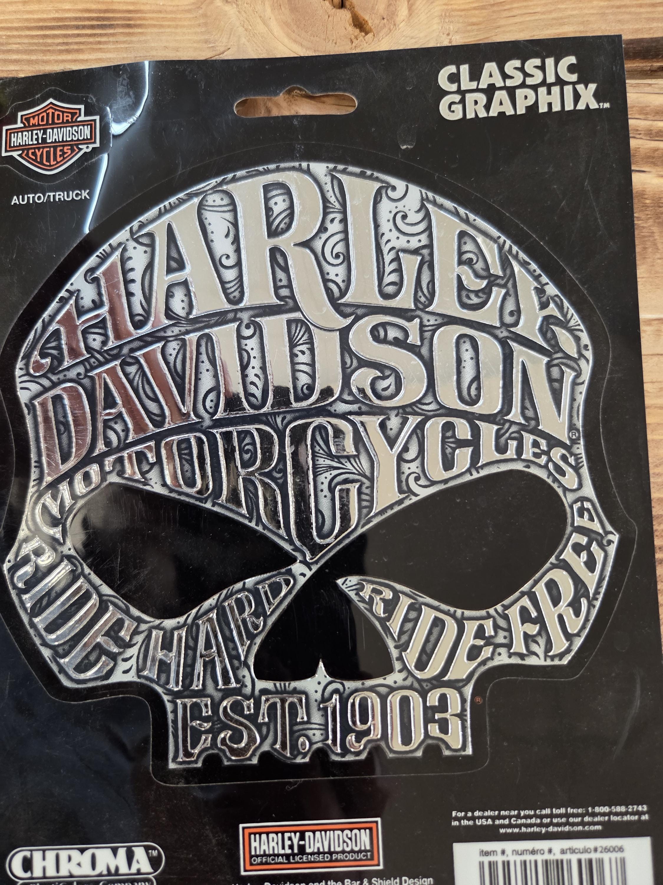 Harley Davidson Licensed 5.6" Decal • Motorcycle Auto Truck Trailer Sticker. Show off your Harley pride with this bold, officially licensed Harley-Davidson decal — the perfect way to add attitude, authenticity, and classic biker style to your ride or gear. Whether you're customizing your motorcycle, truck, toolbox, trailer, or garage, this premium decal delivers unmistakable Harley energy wherever it goes. May still have some other styles of Harley stickers in my shop yet.